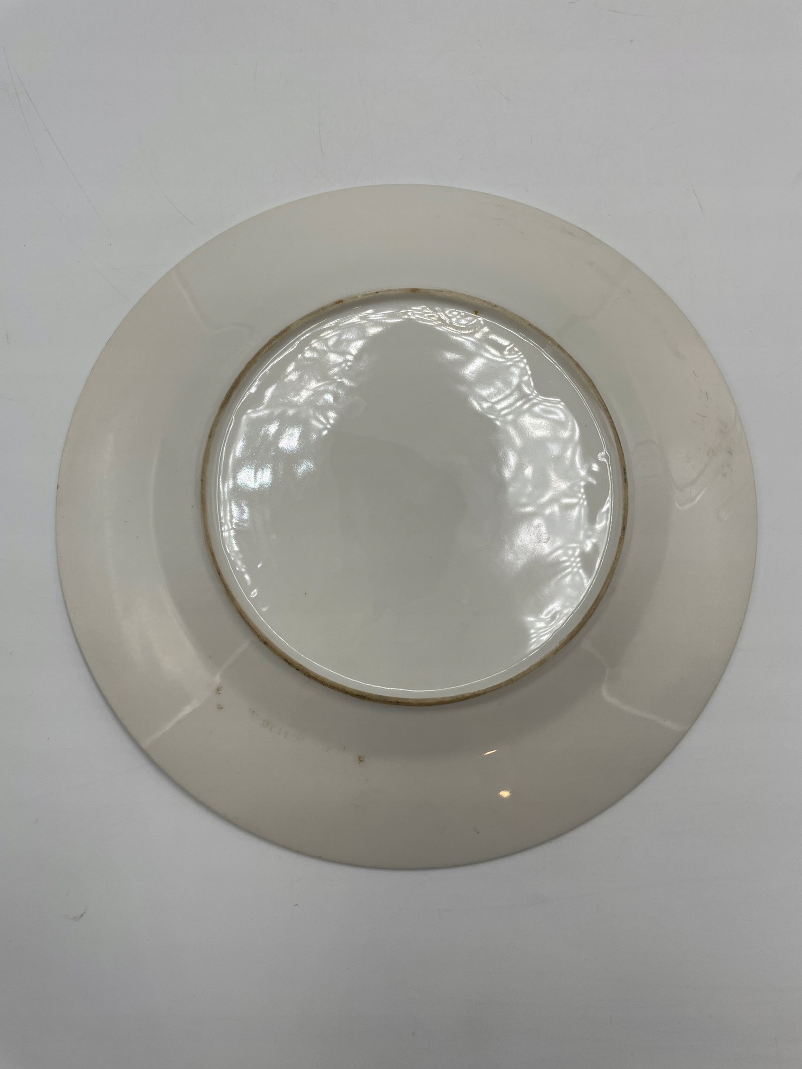 Talerz w dobrym stanie, z drobnymi śladami użytkowania i przetarciami na krawędziach zgodnymi z wiekiem.