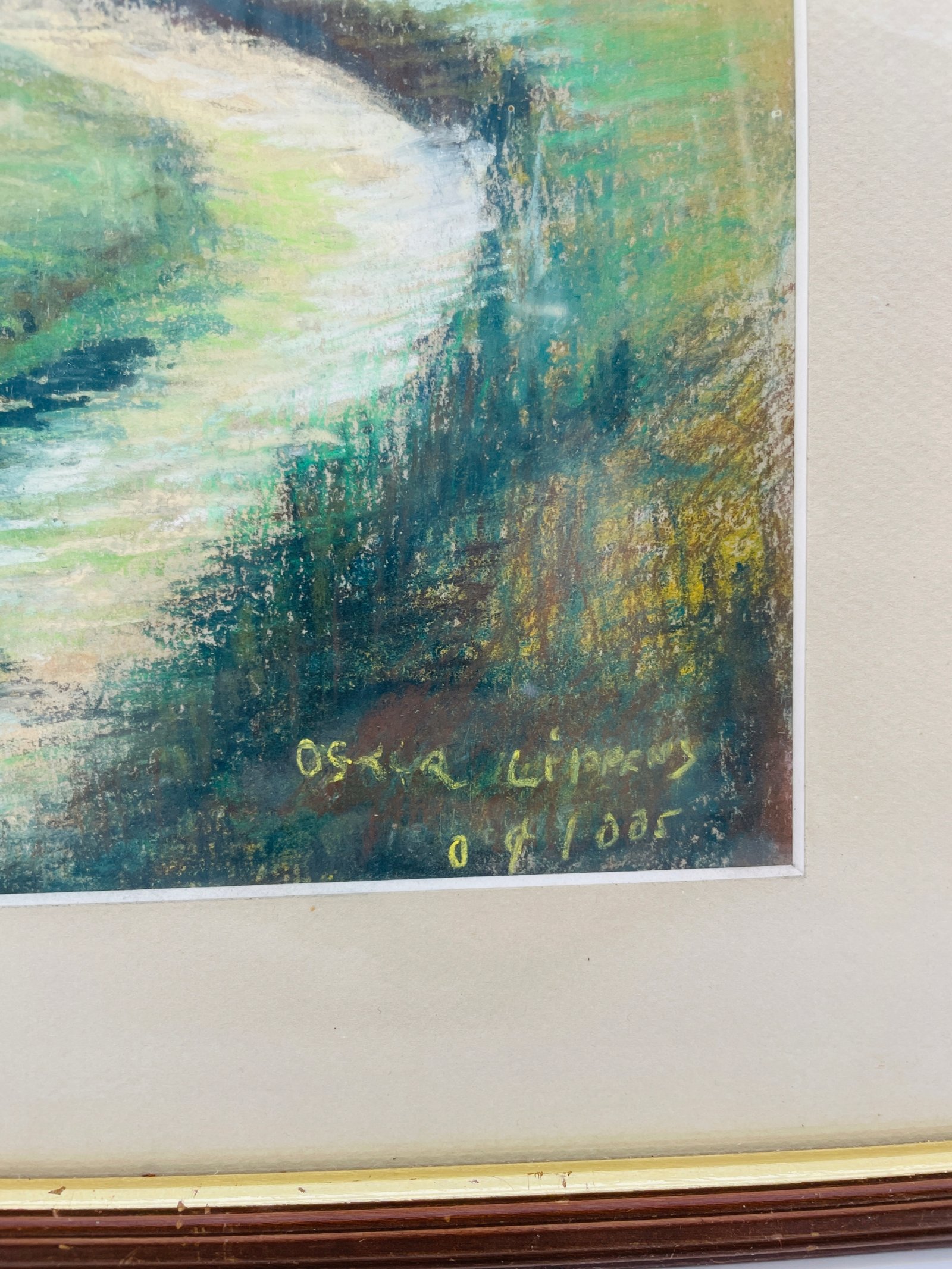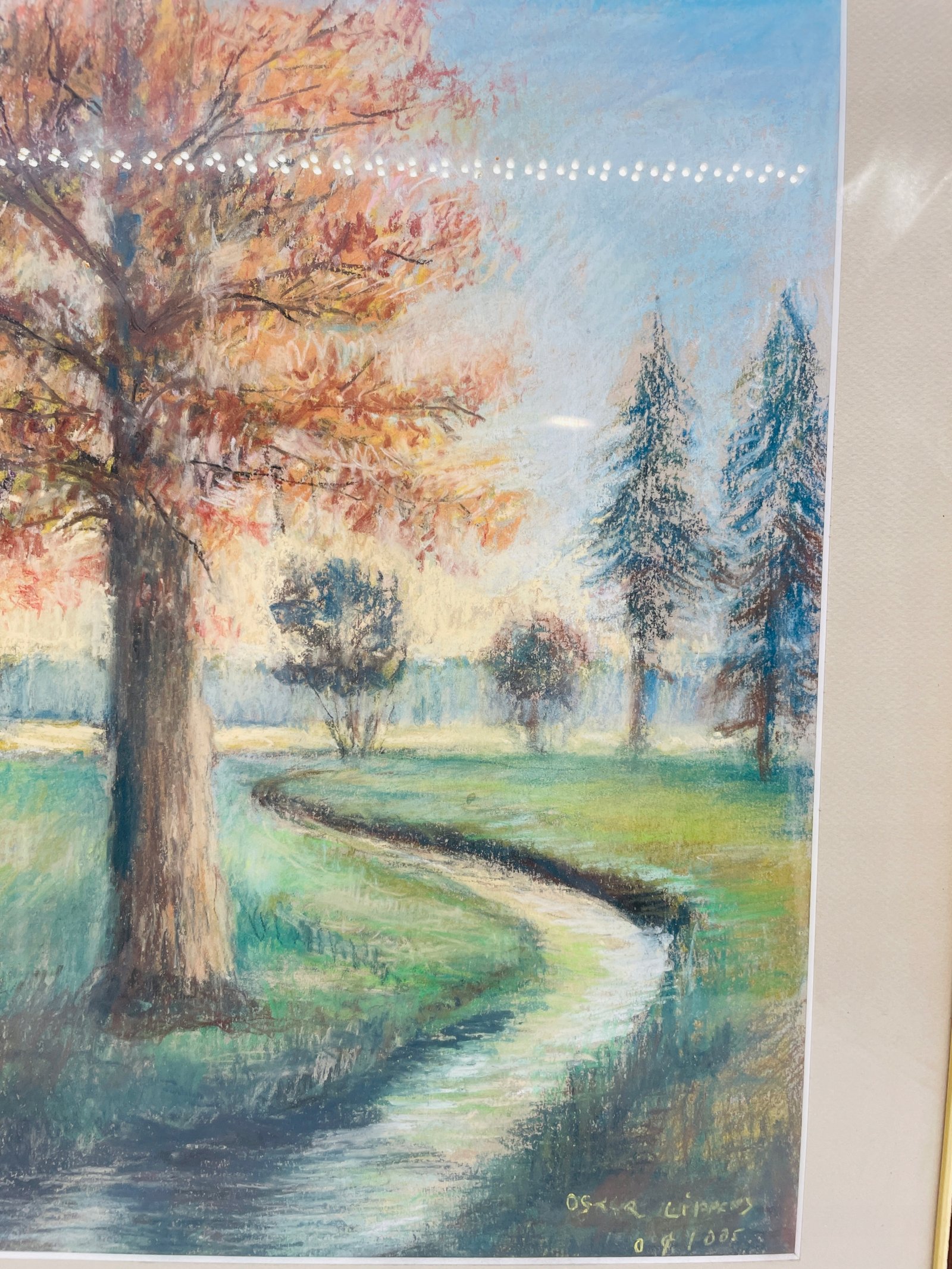 Pejzaż z drzewem akwarela w ramie