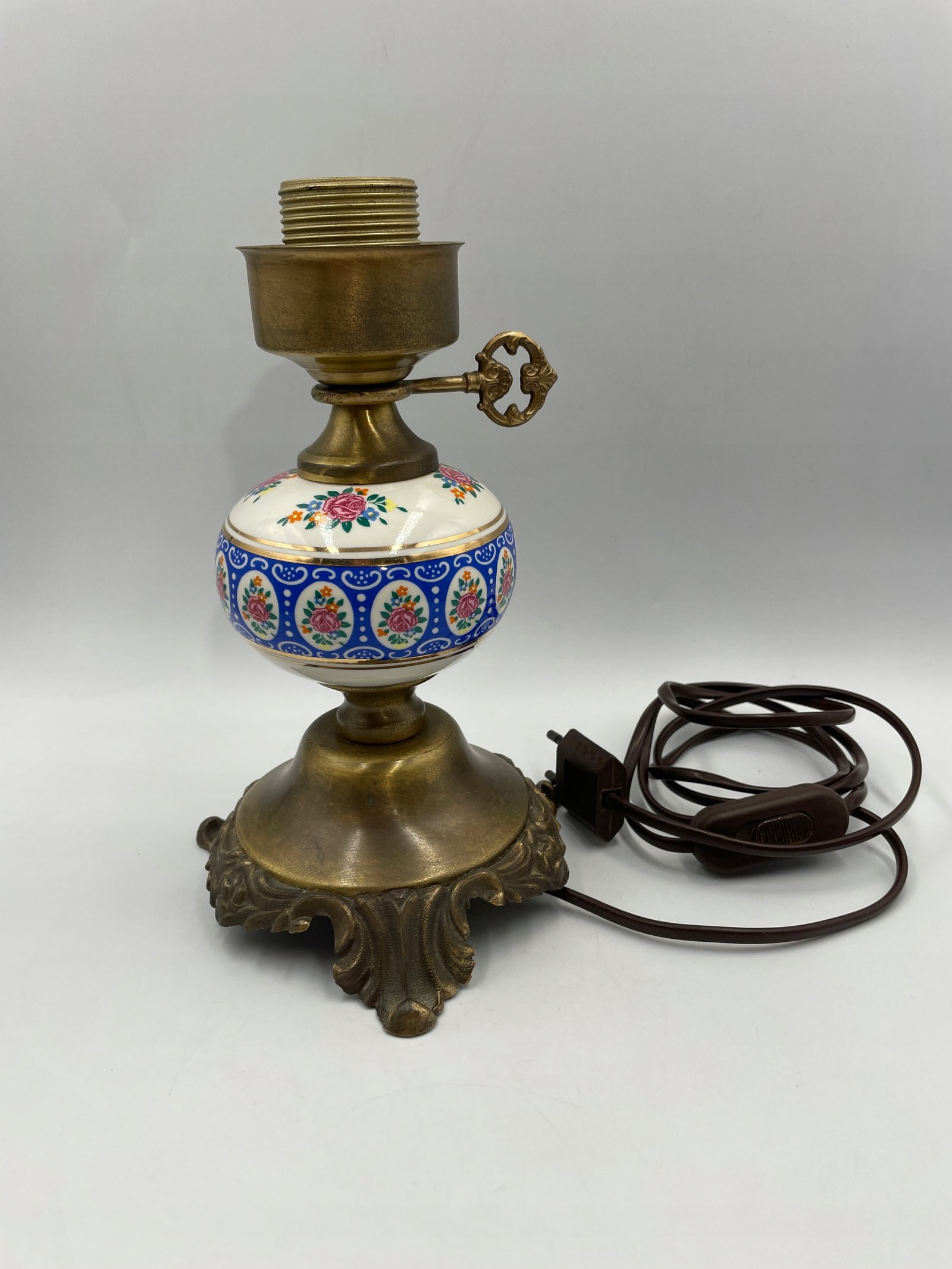 Piękna lampa stołowa MOSIĄDZ I PORCELANA