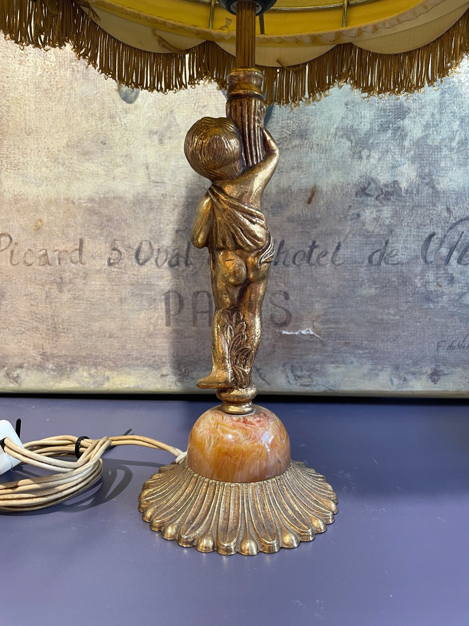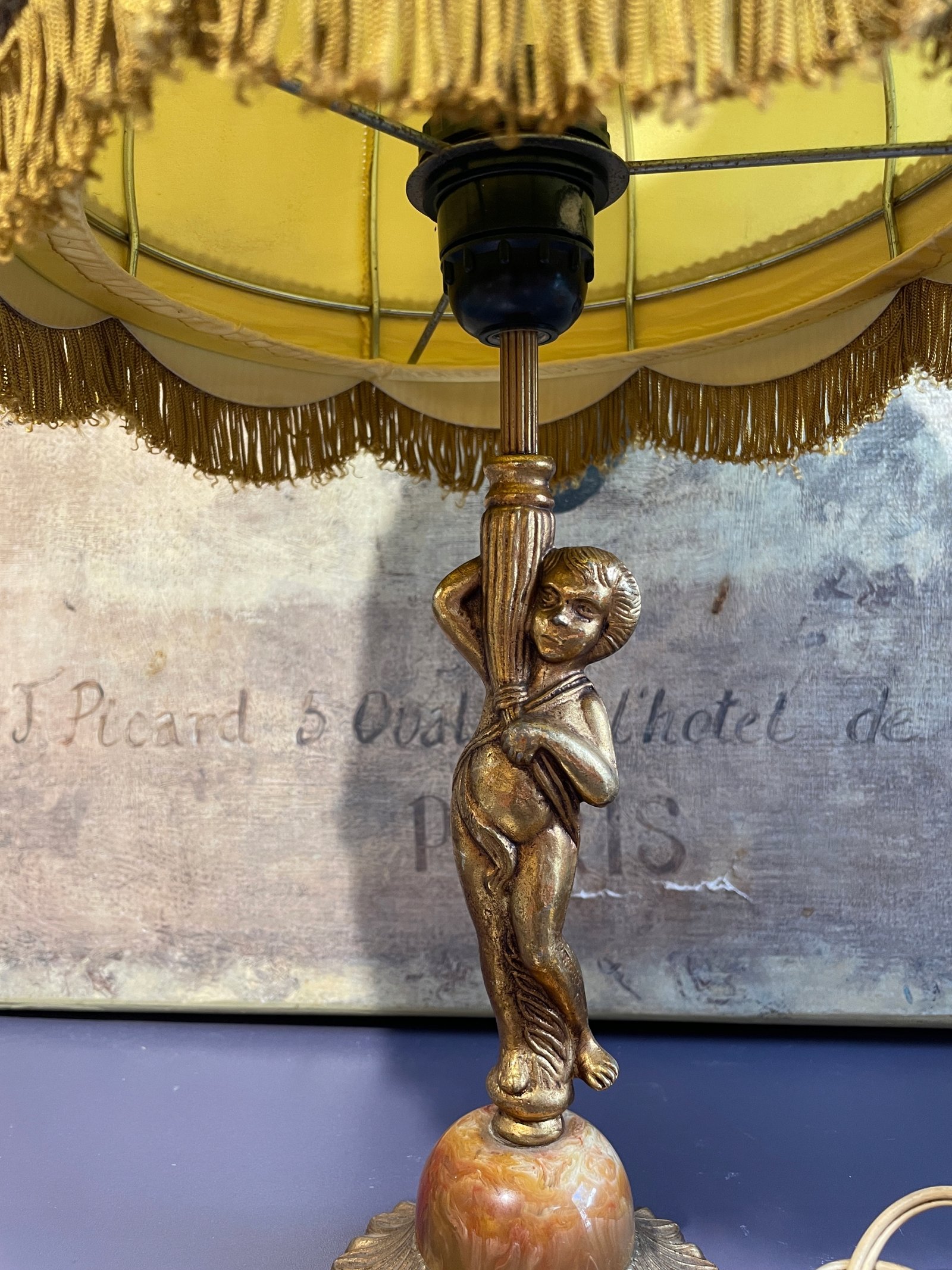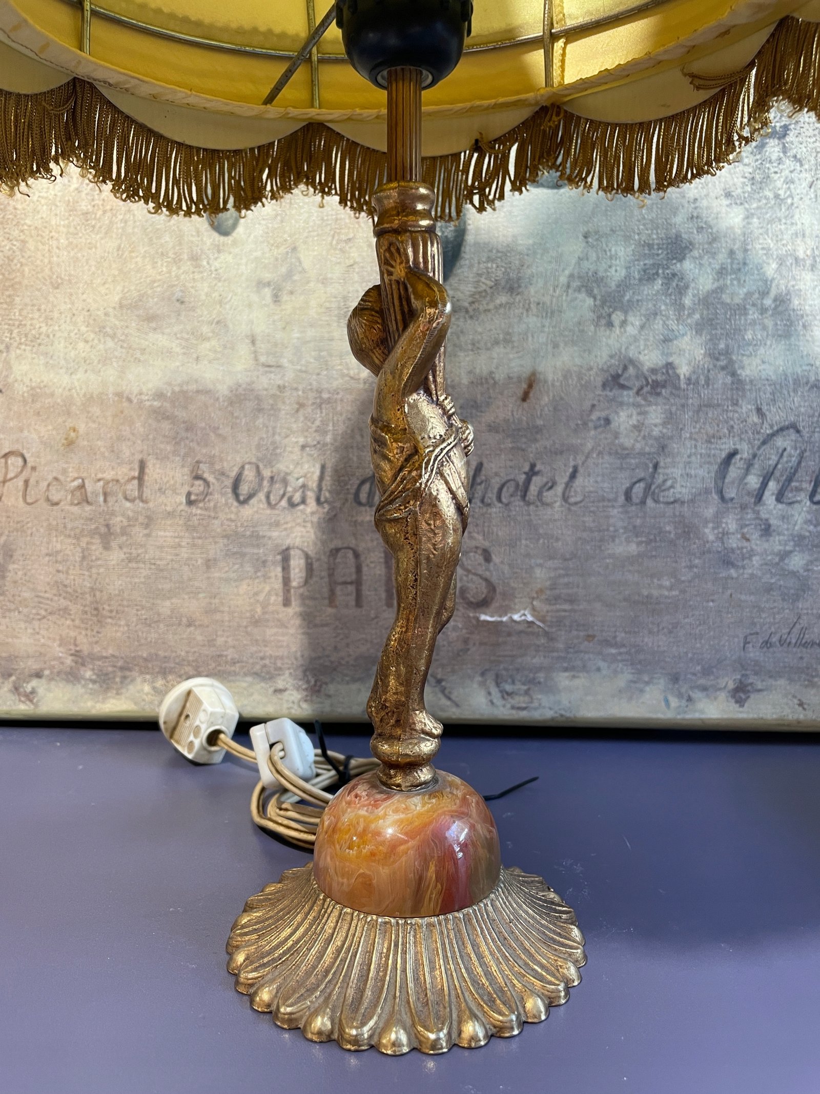 Piękna mosiężna lampa z marmurem