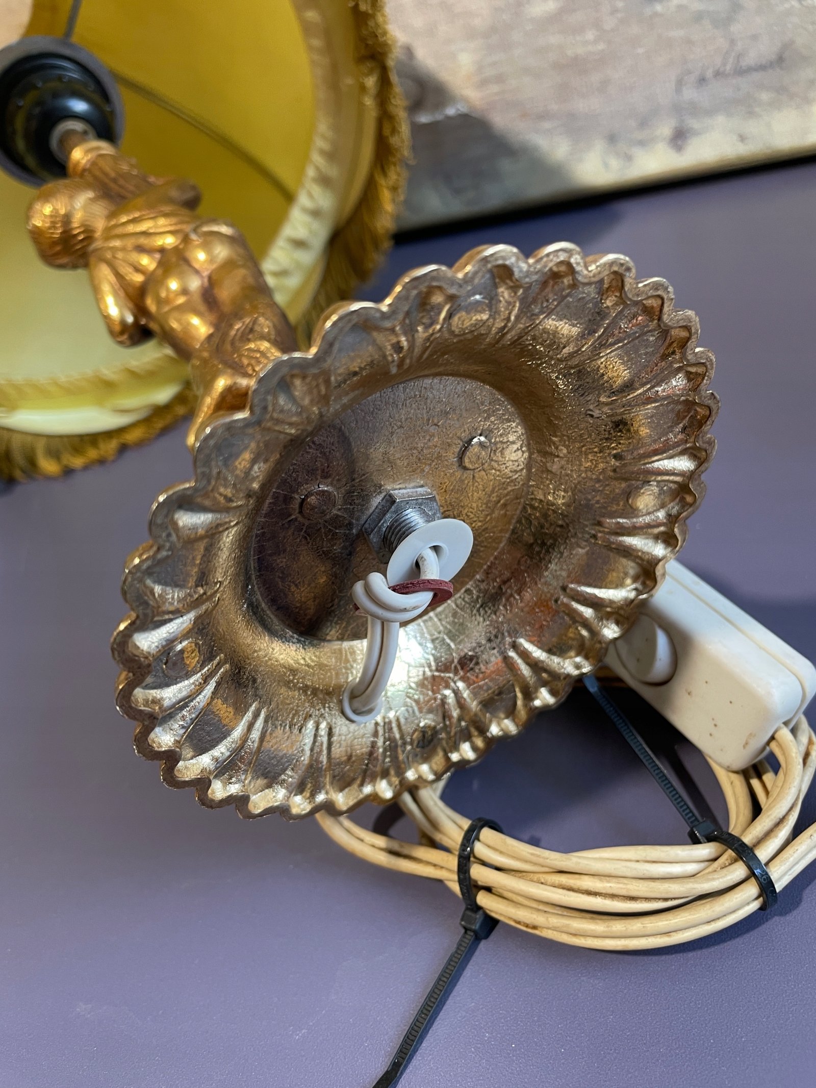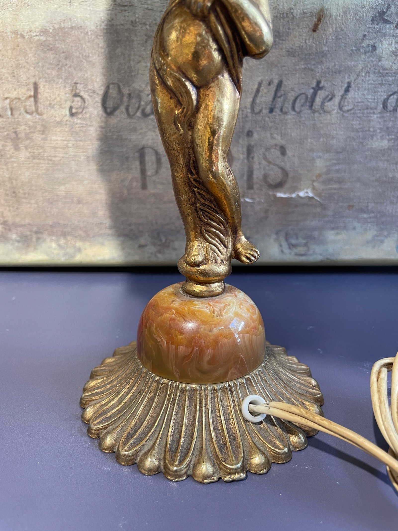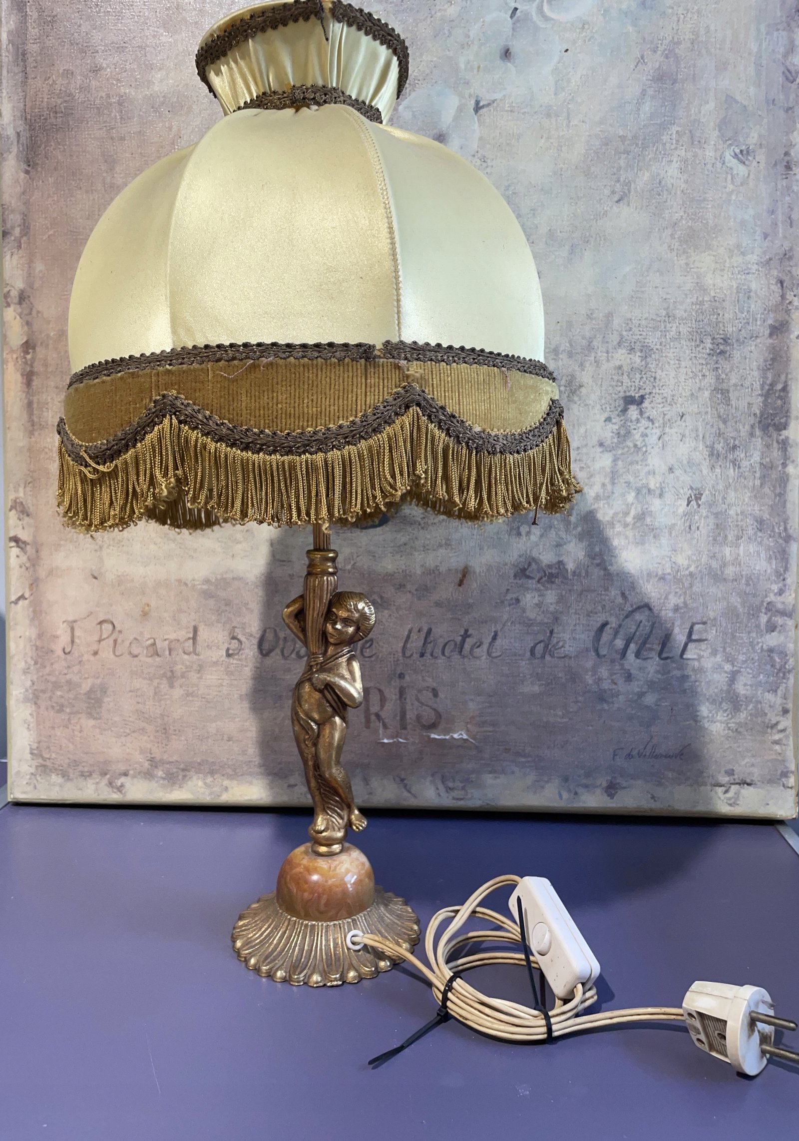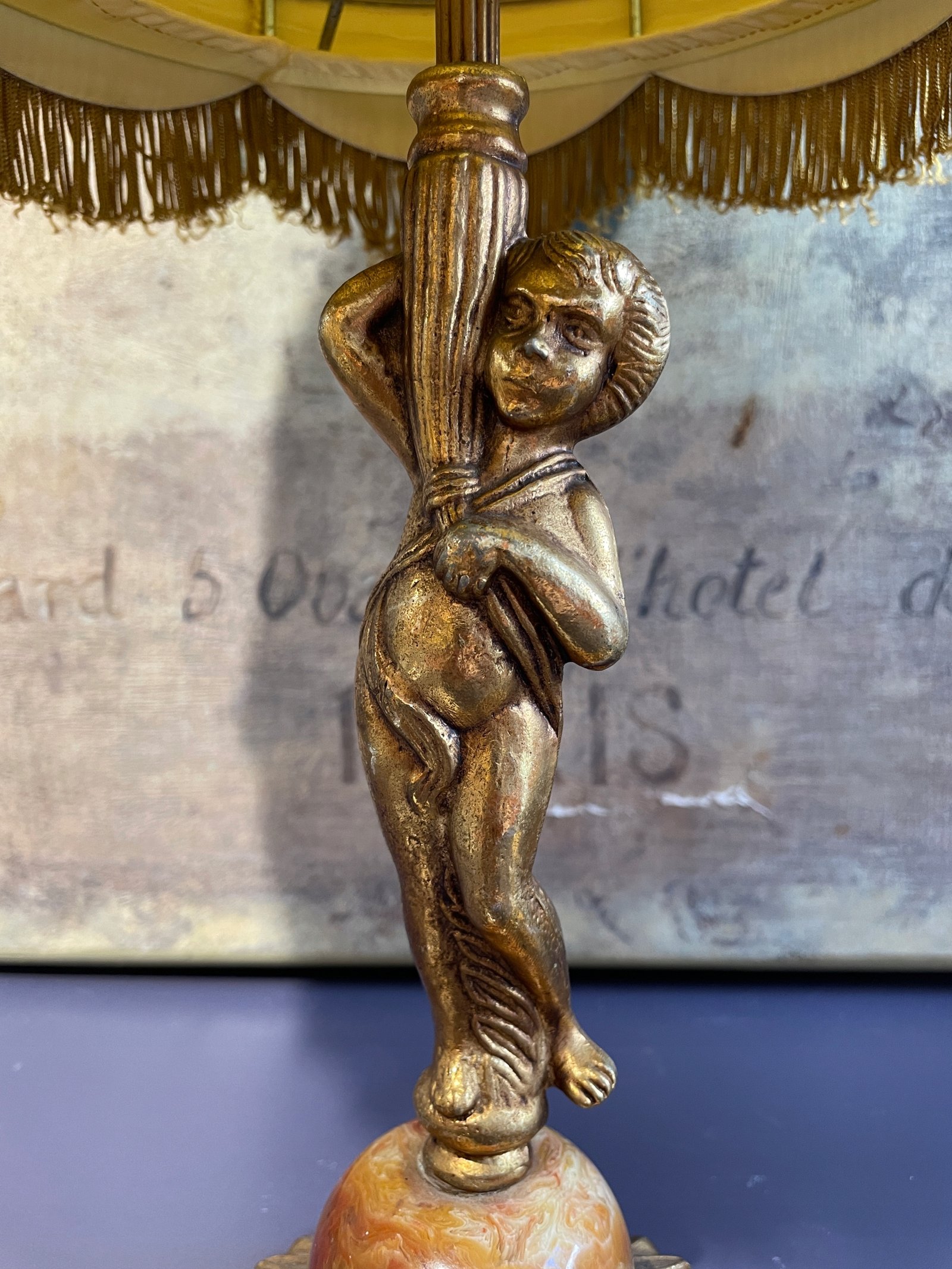 Piękna mosiężna lampa z marmurem