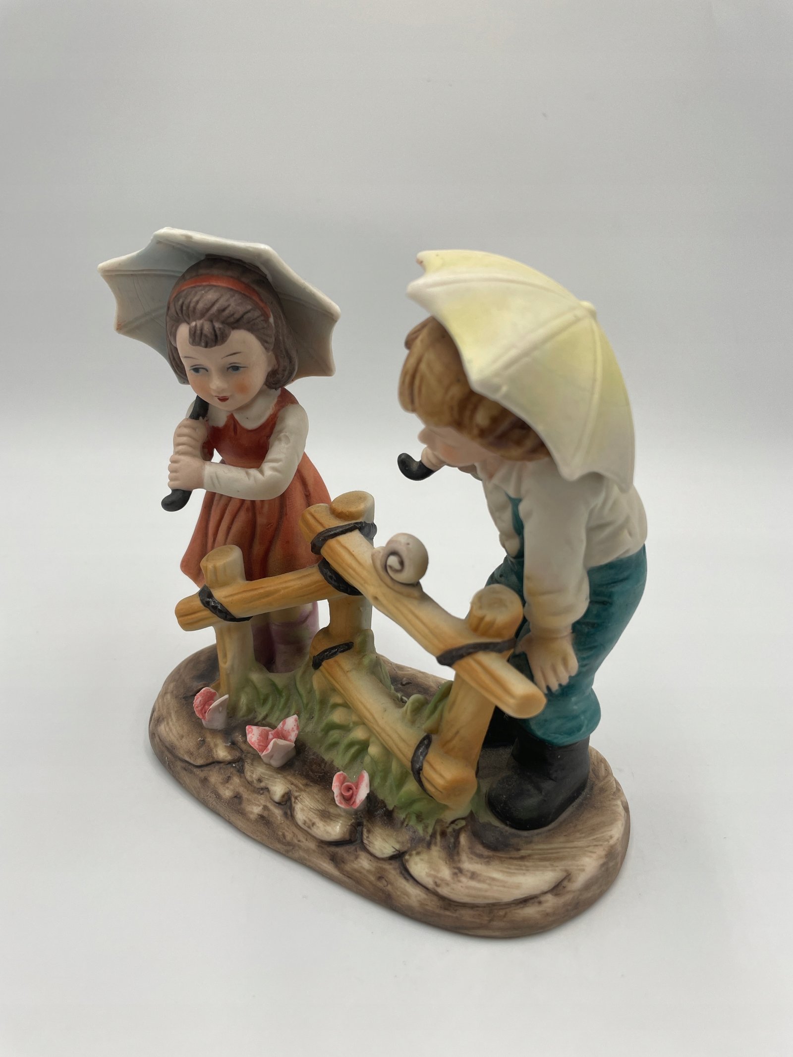 Piękna porcelanowa figurka Dzieci pod parasolami