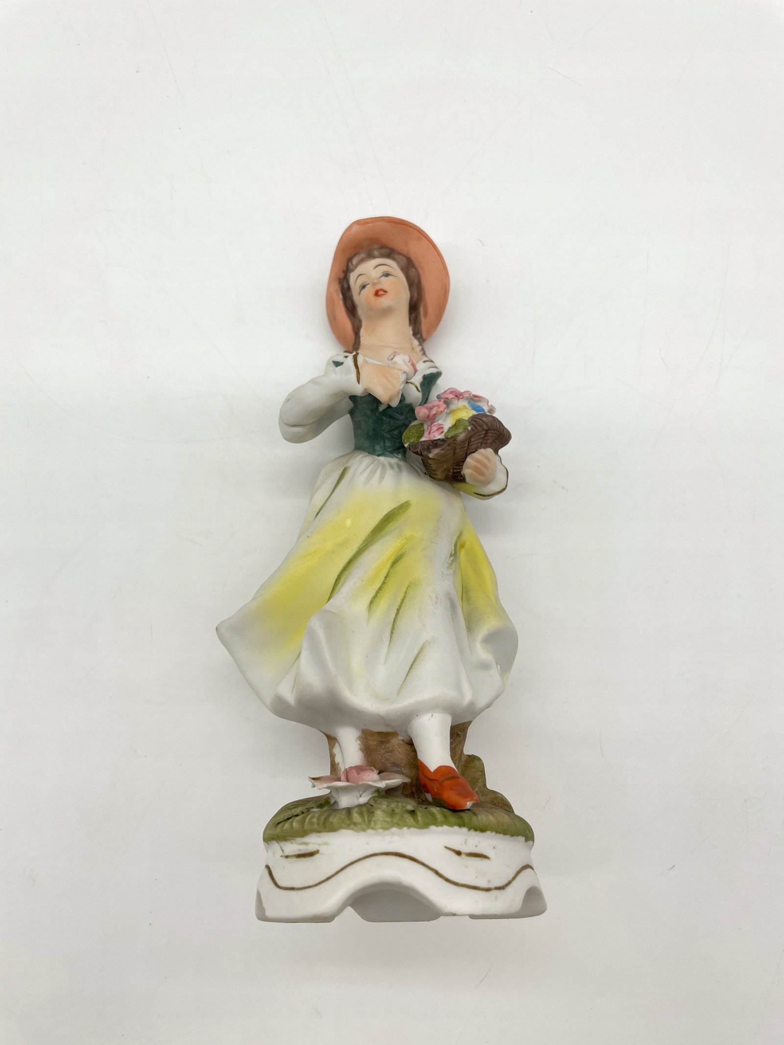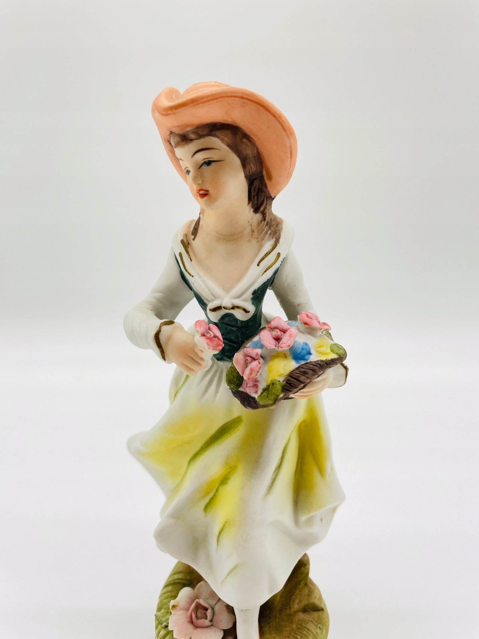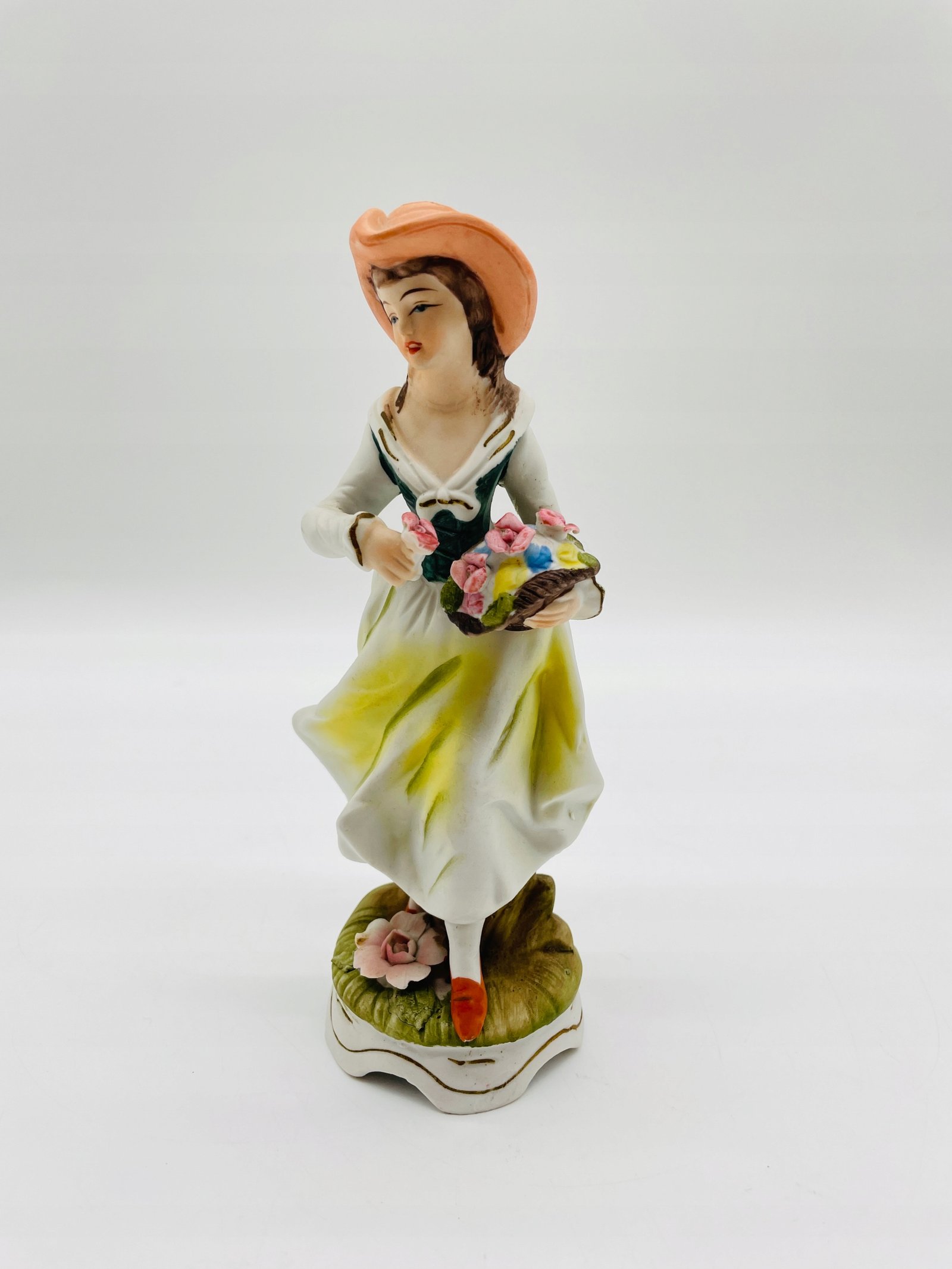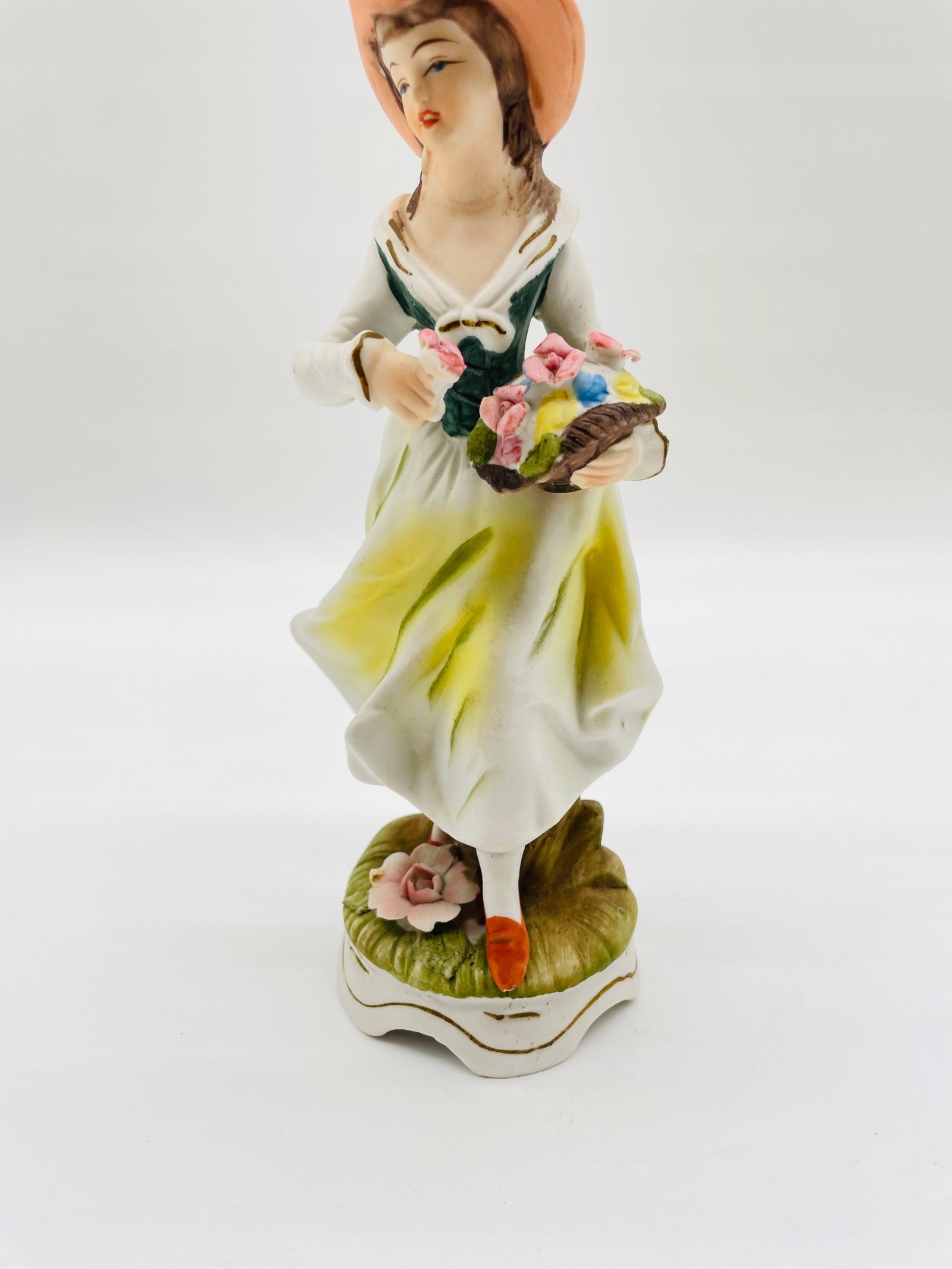 Piękna porcelanowa figurka Dziewczyna z koszem kwiatów