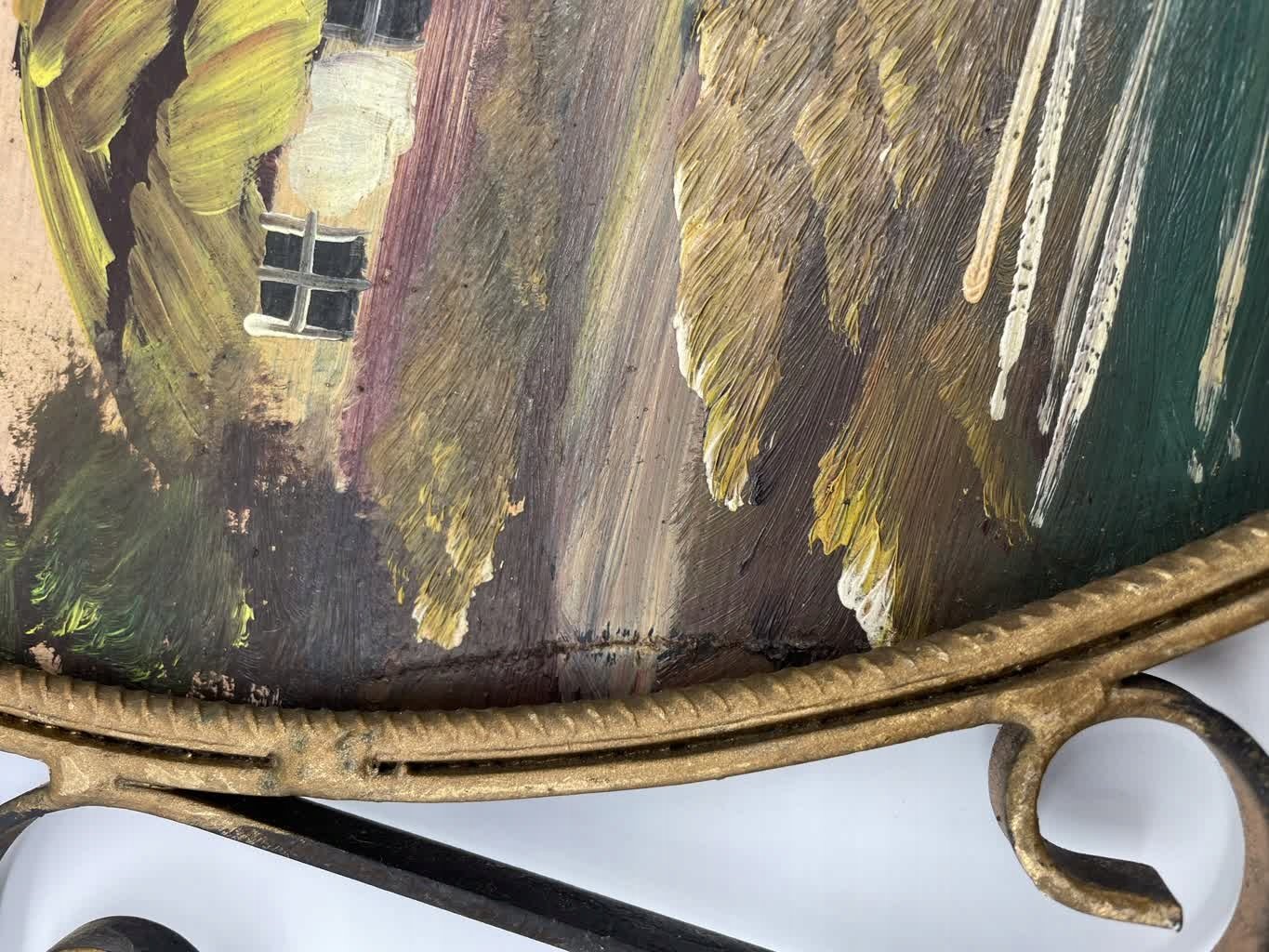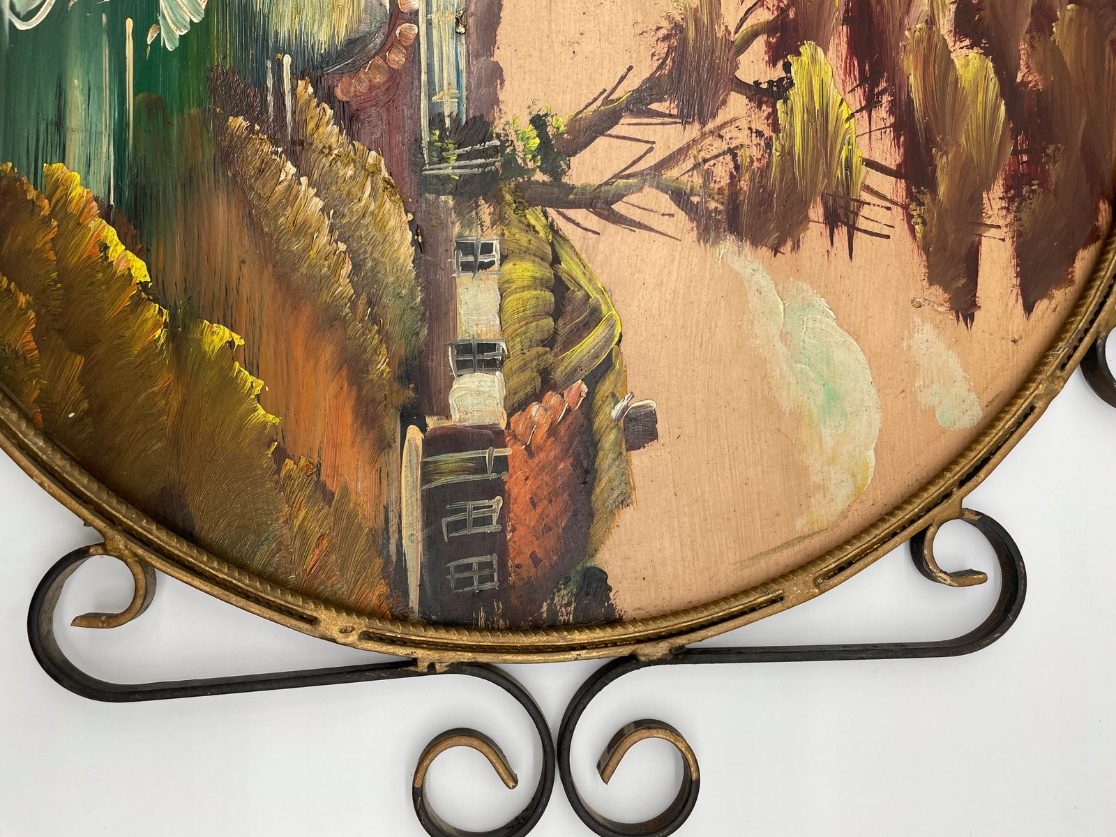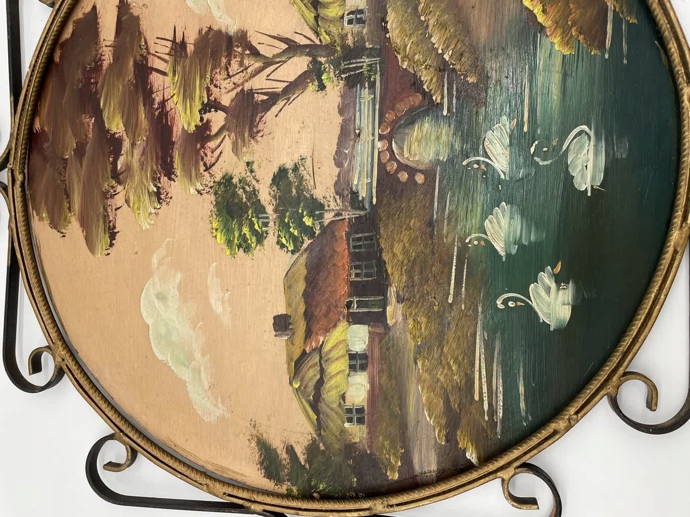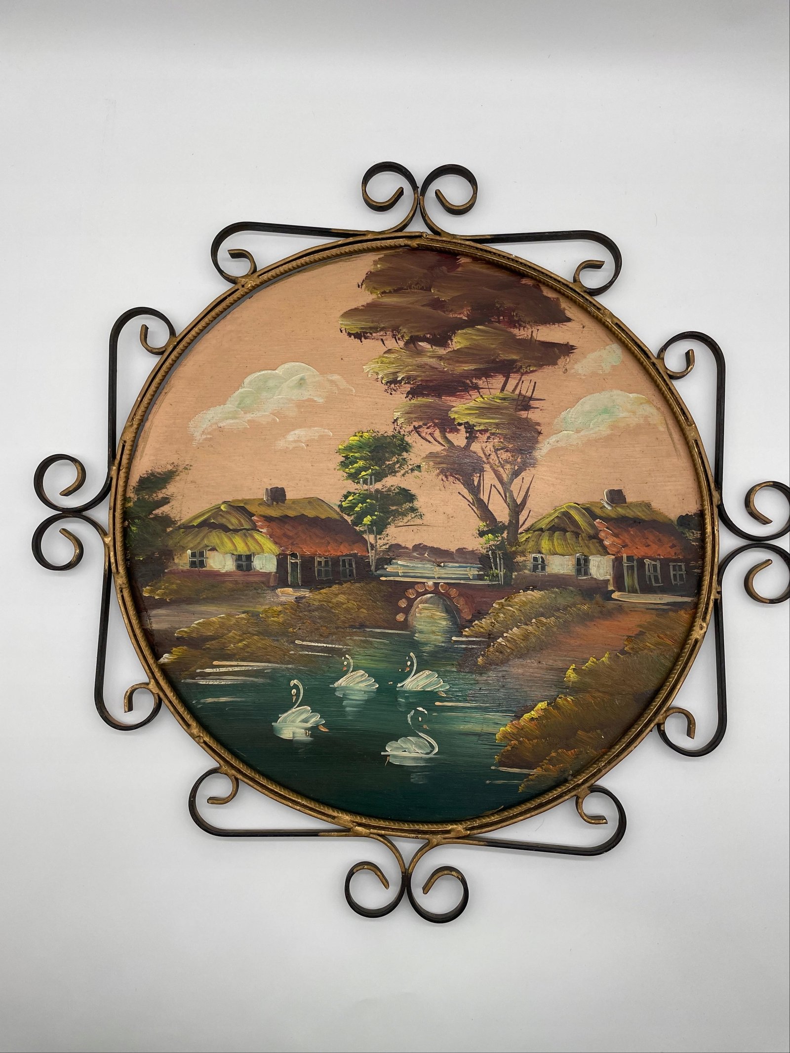 Piękny obraz w okrągłej ramie z podpisem Belgia