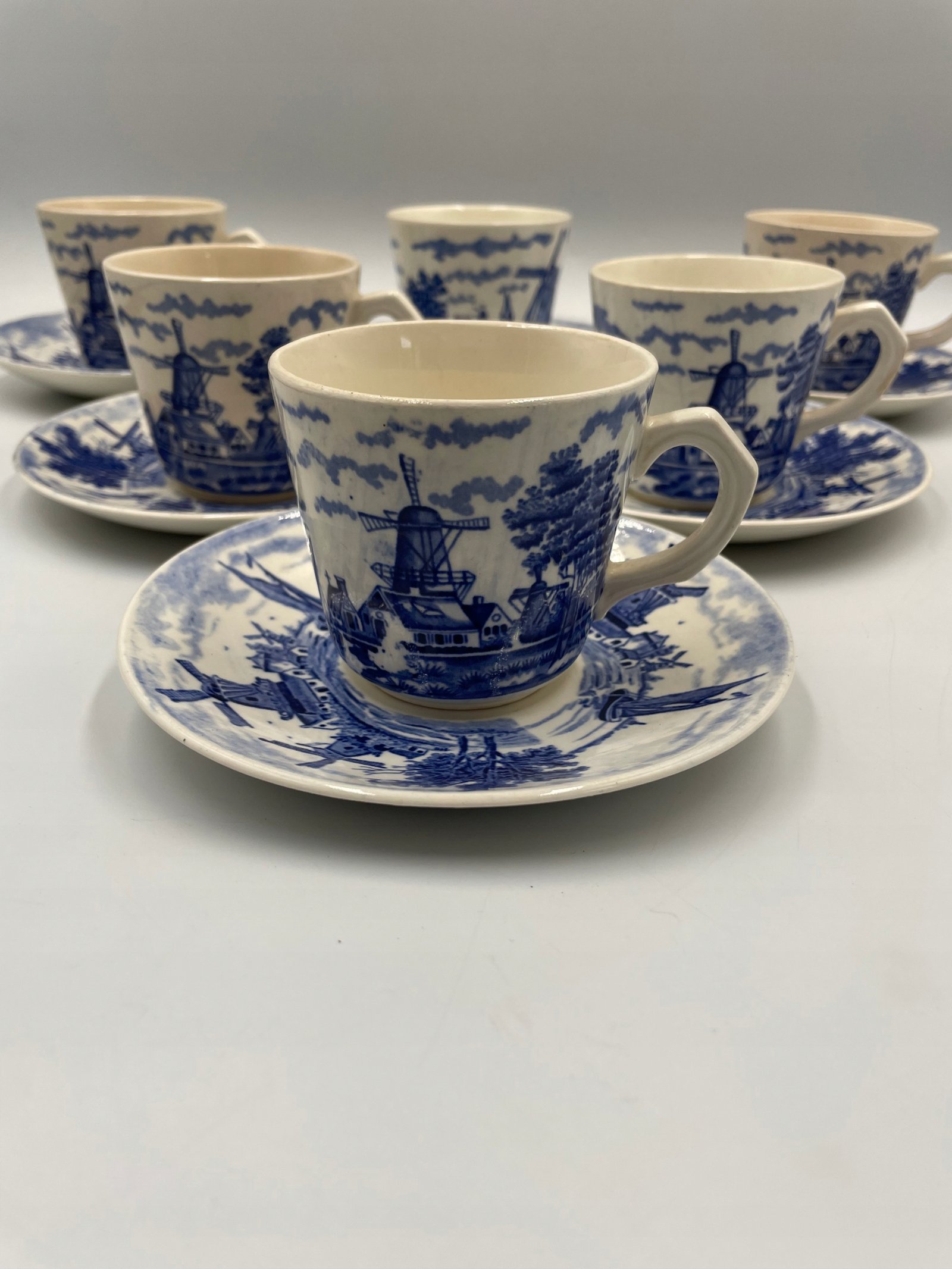 Duży piękny serwis Delft Blue Windmill 1920r.
