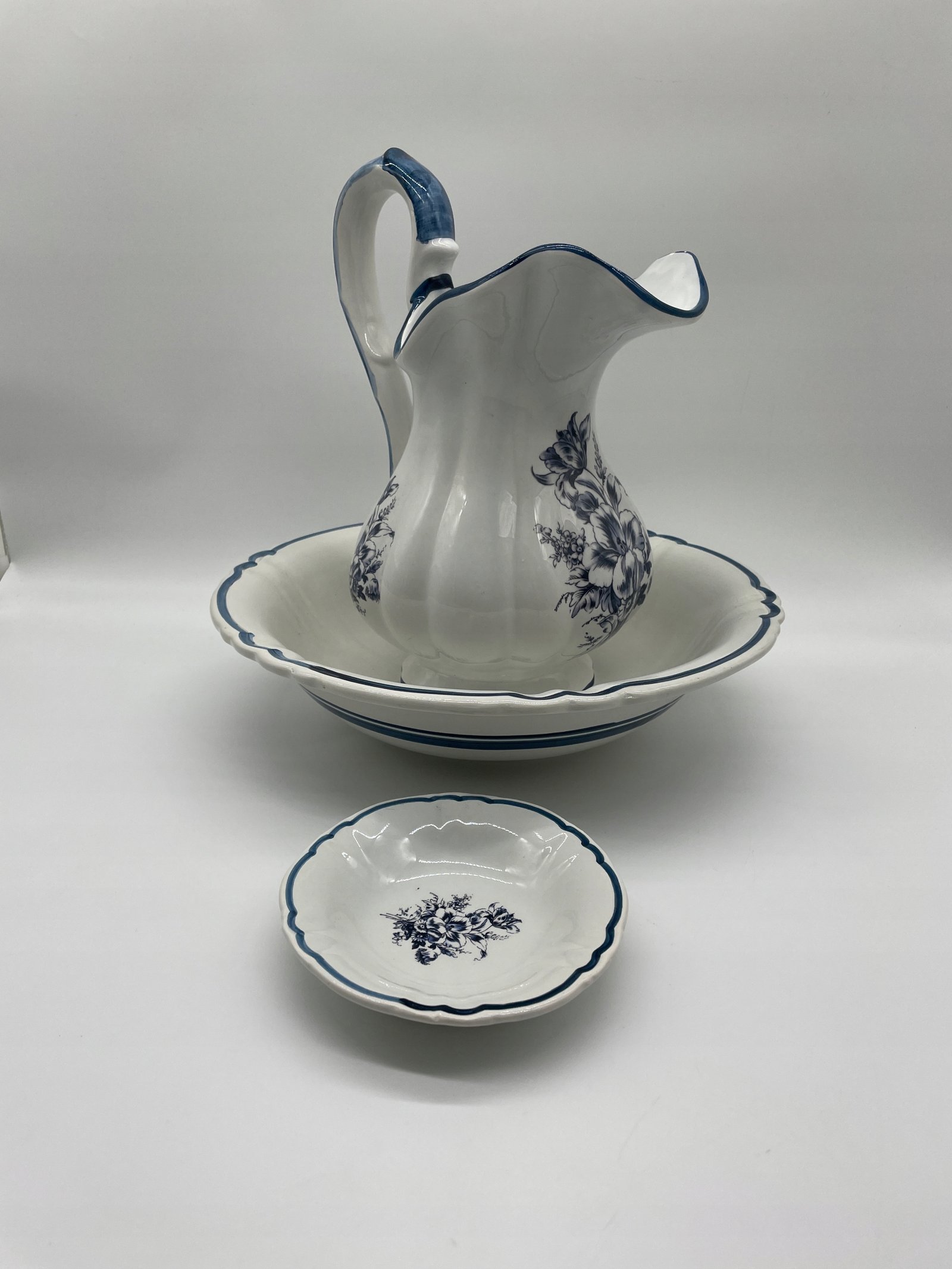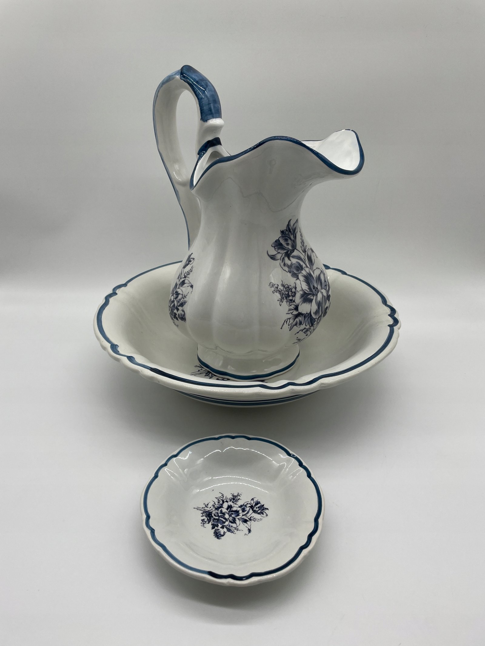 Wymiary: dzban 33×19×24 cm; misa 34×8,5 cm; mydelniczka 14,5×3 cm