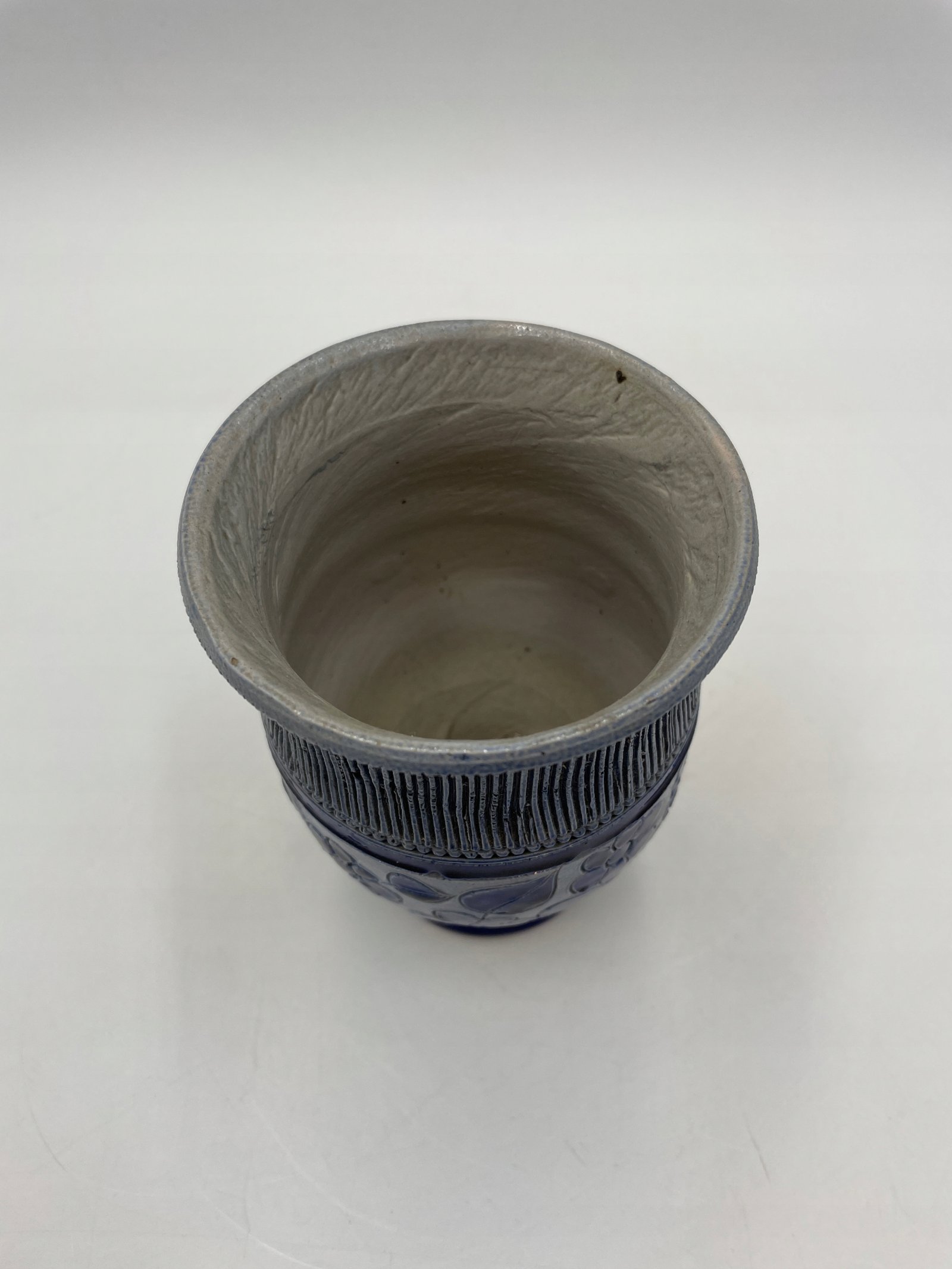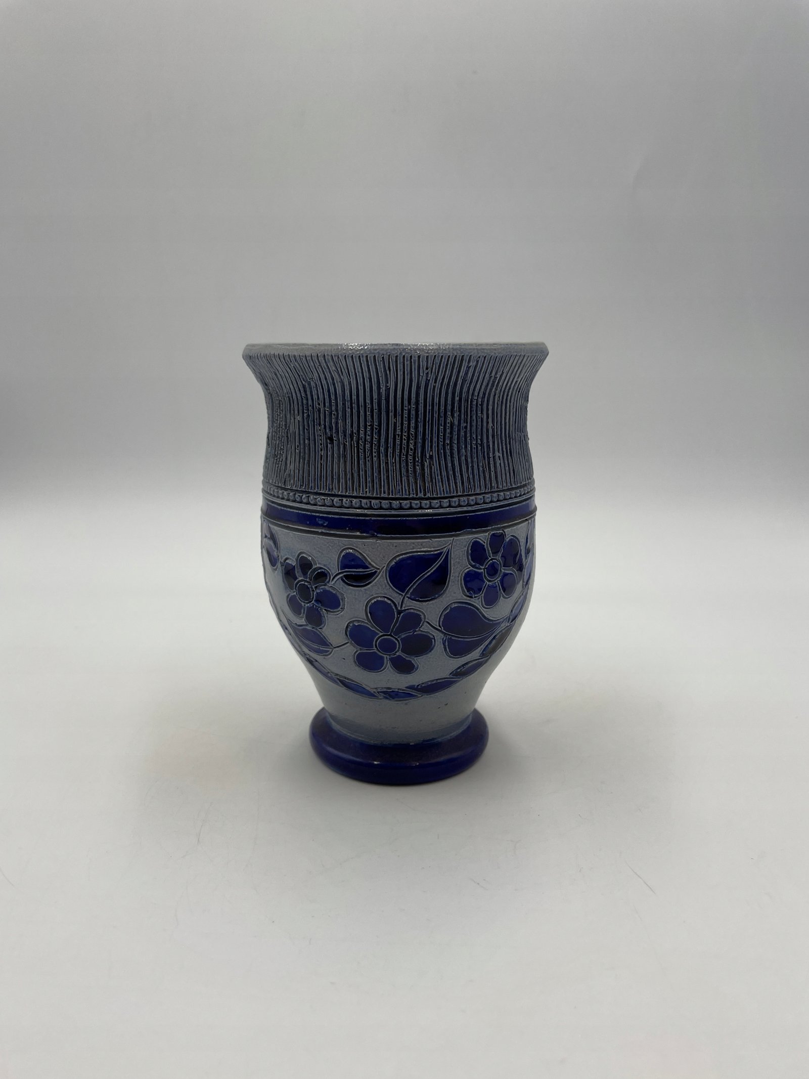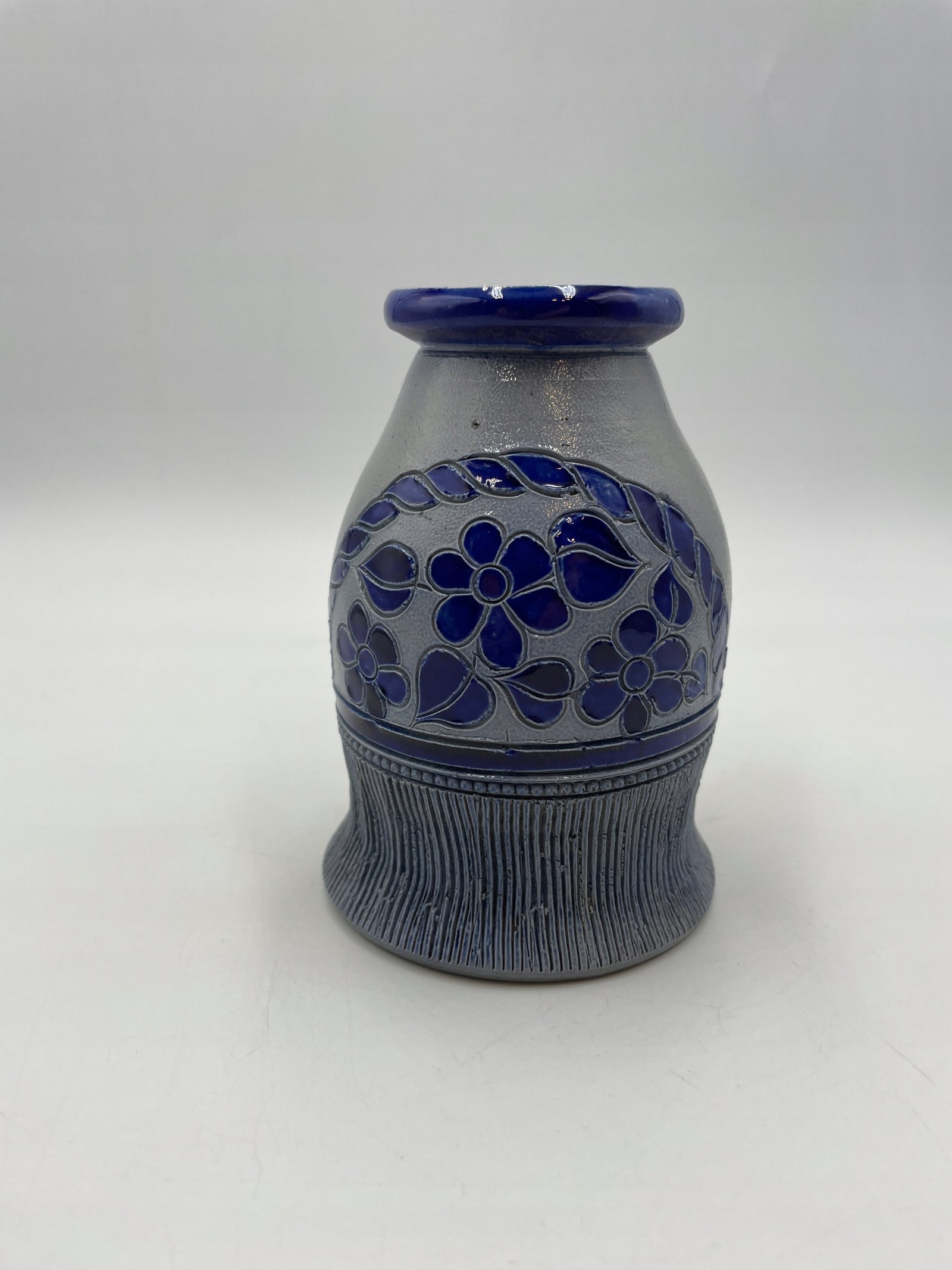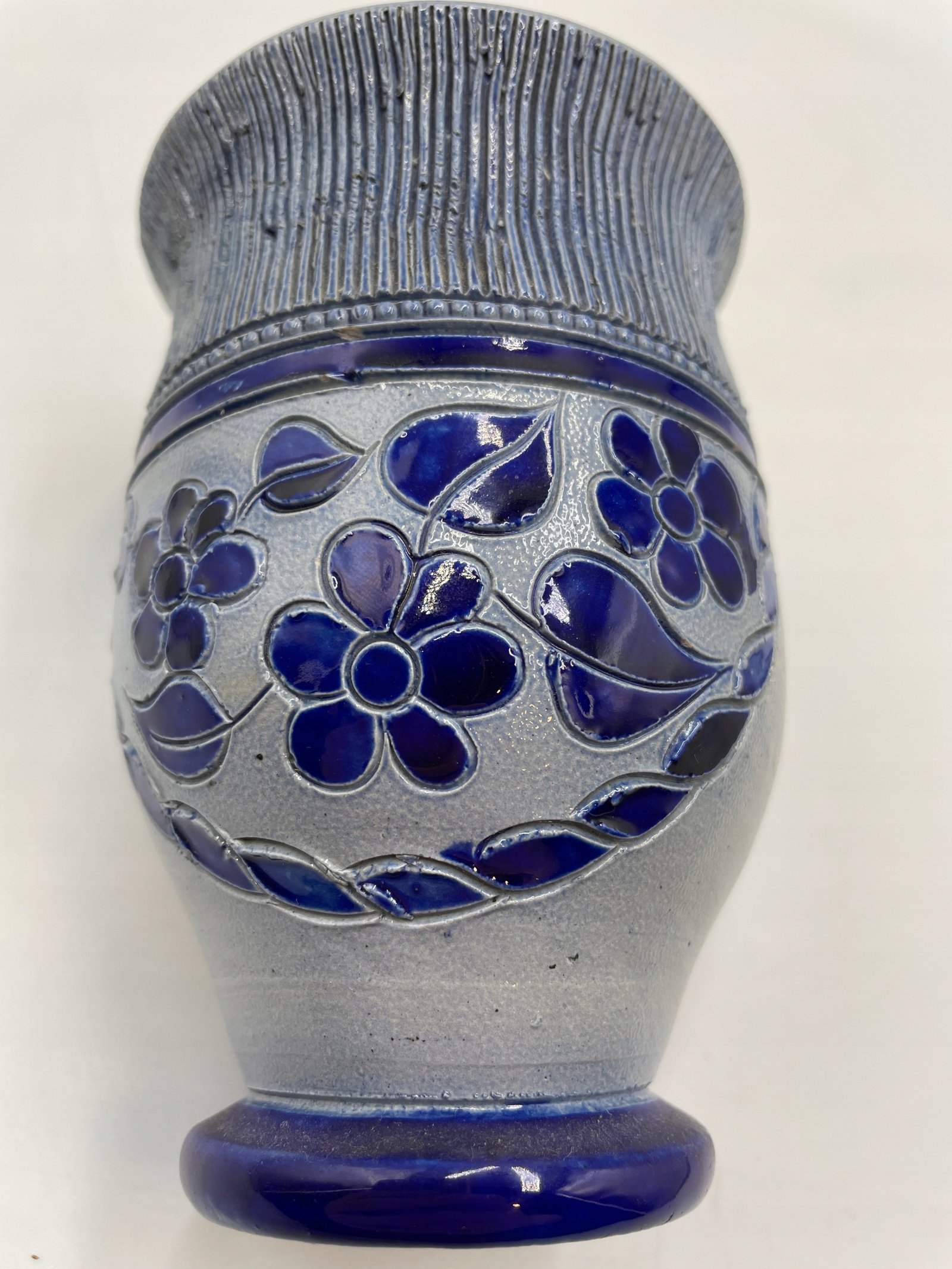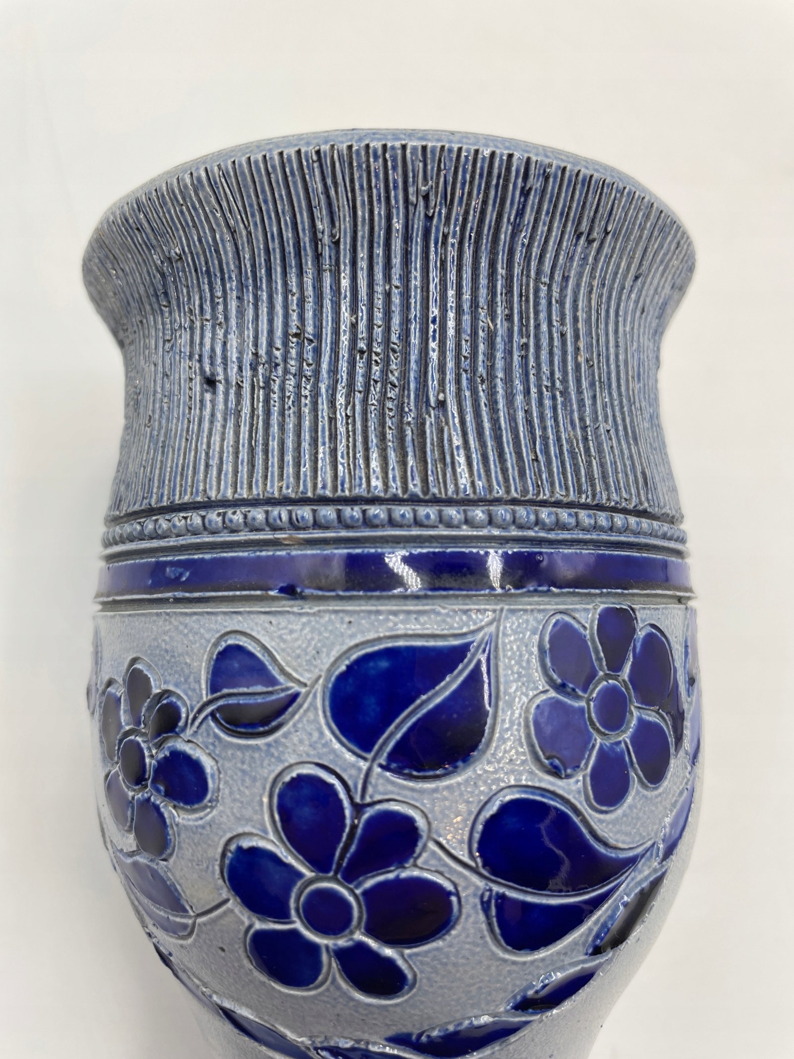 - Antyczny dekoracyjny wazon z serii GRES DE LA ROCHE, wykonany z ceramiki w charakterystycznym niebieskim kolorze.