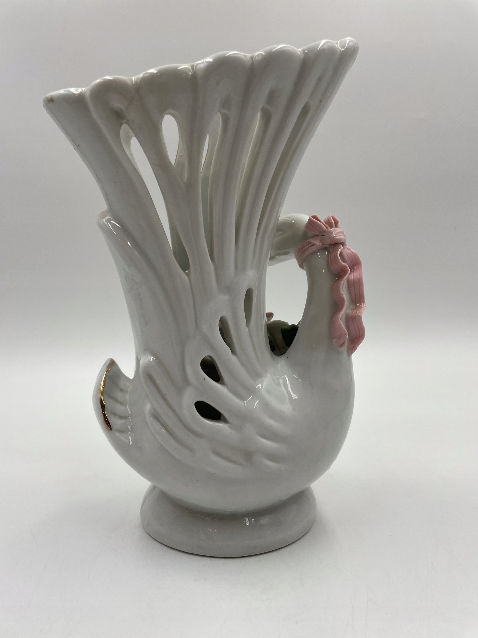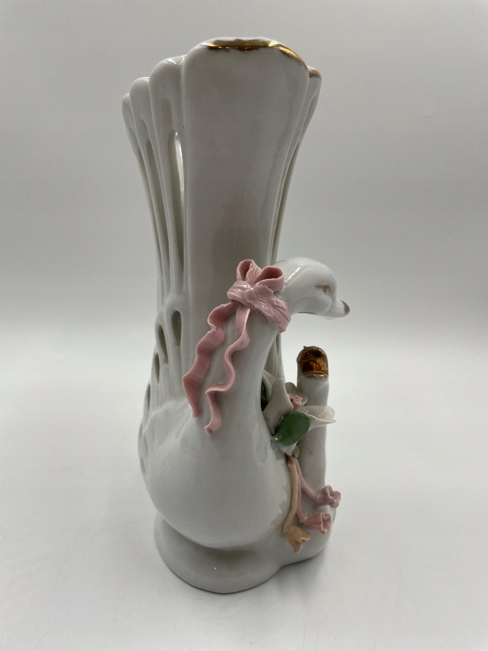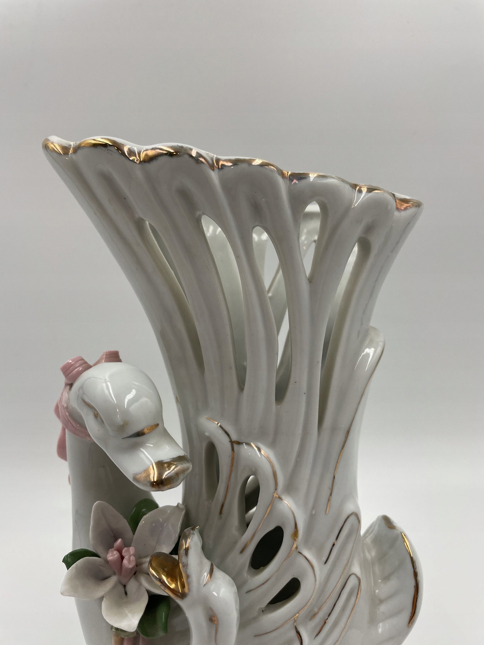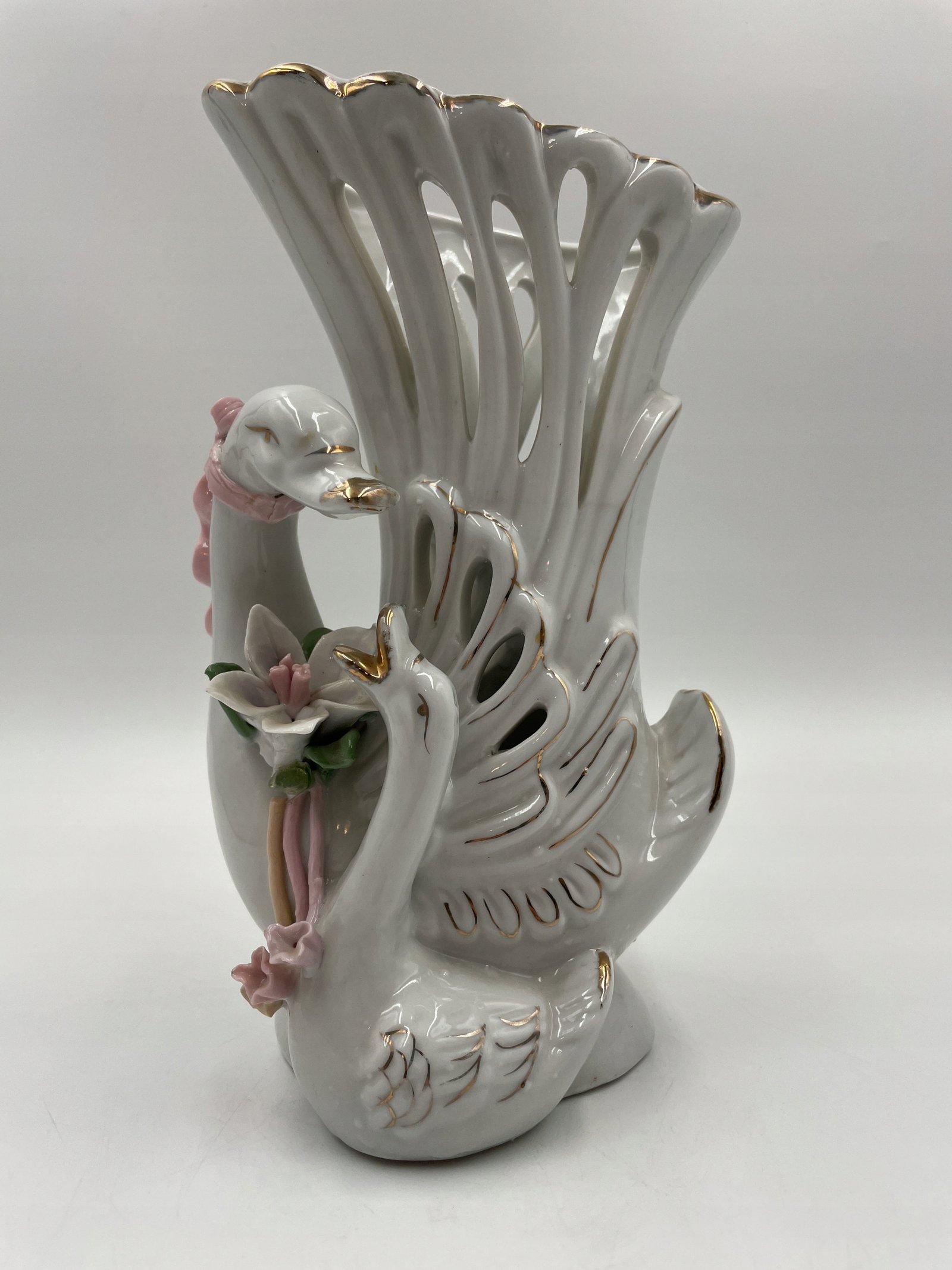 Piękny wazon z łabędziami i kwiatami 23x9cm