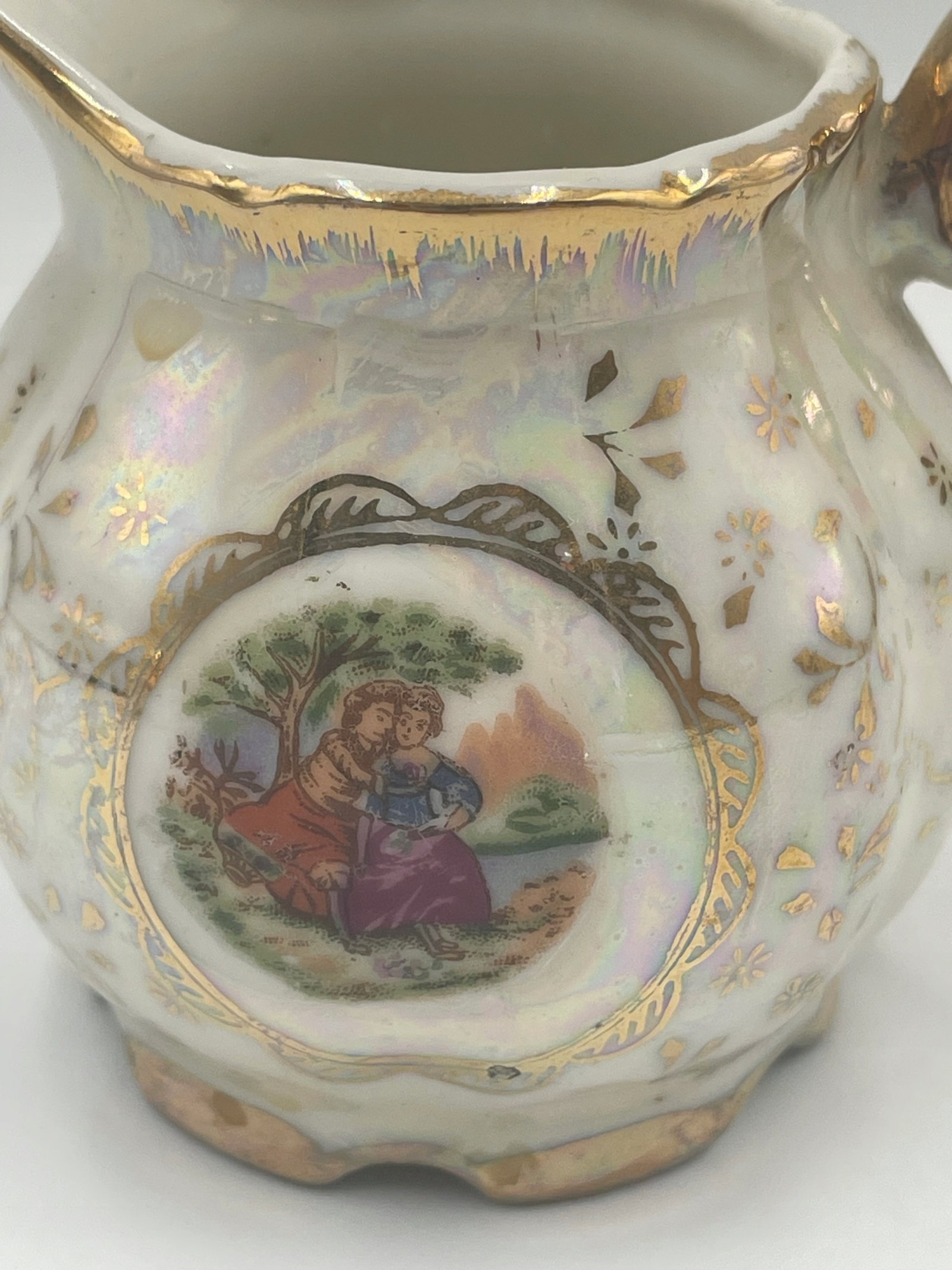 Przedmioty mogą mieć drobne rysy, odpryski, niektóre zabrudzenia, ślady użytkowania i zmiany tekstury spowodowane starzeniem się. Ponieważ stopień zużycia może różnić się w zależności od indywidualnego postrzegania, prosimy o zrozumienie i akceptację cech starych przedmiotów. Będziemy zadowoleni, jeśli będziesz mógł/mogła cieszyć się niepowtarzalnym urokiem starych, dobrych przedmiotów.