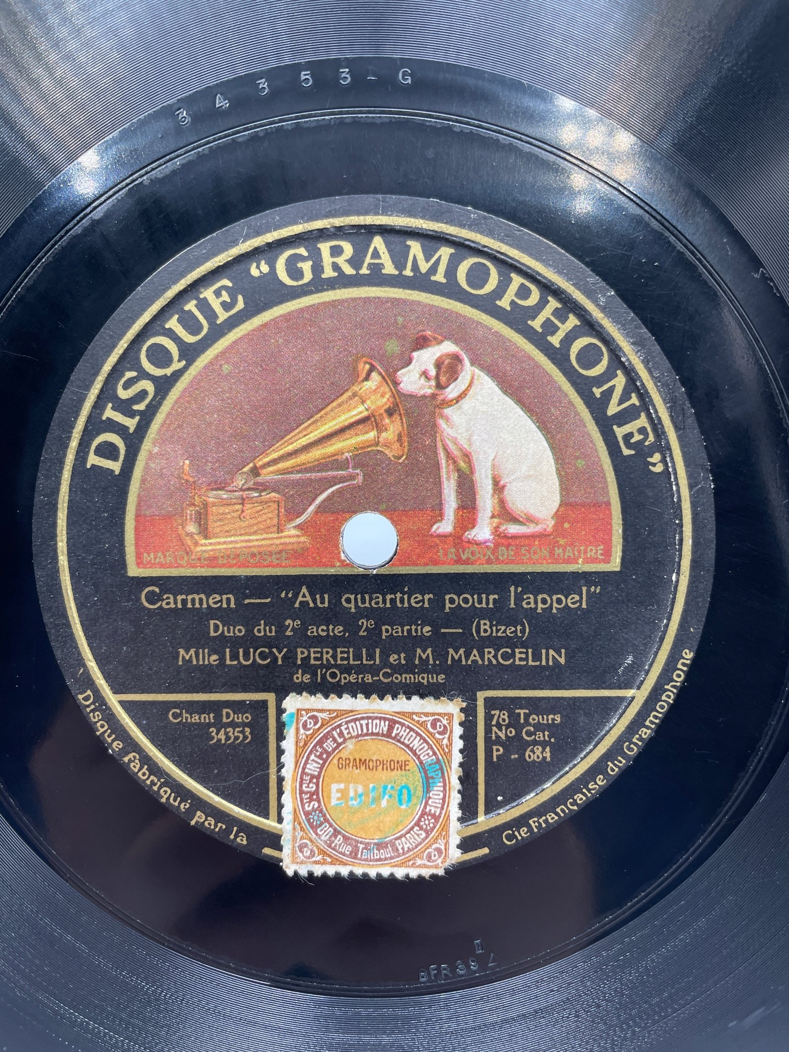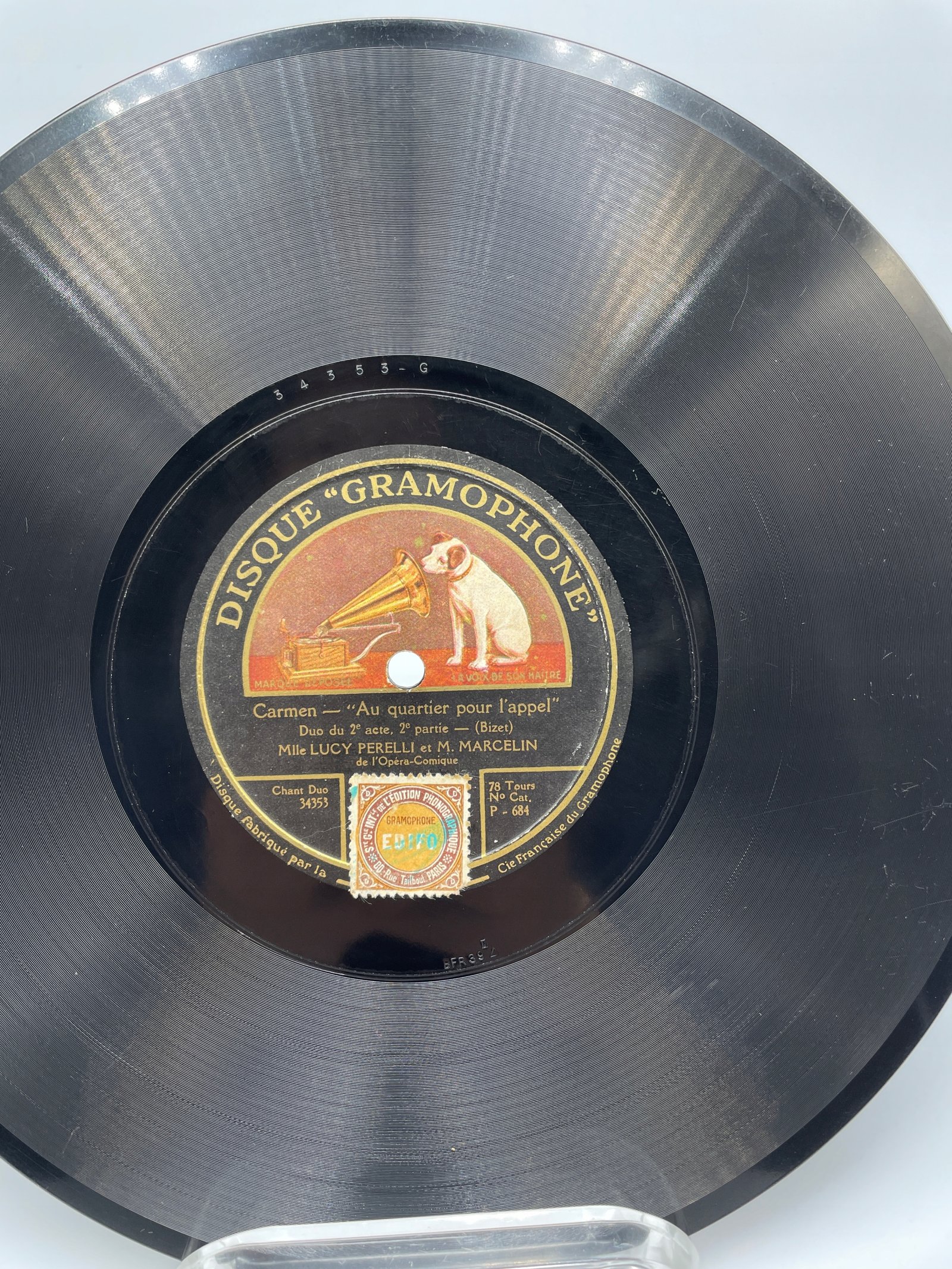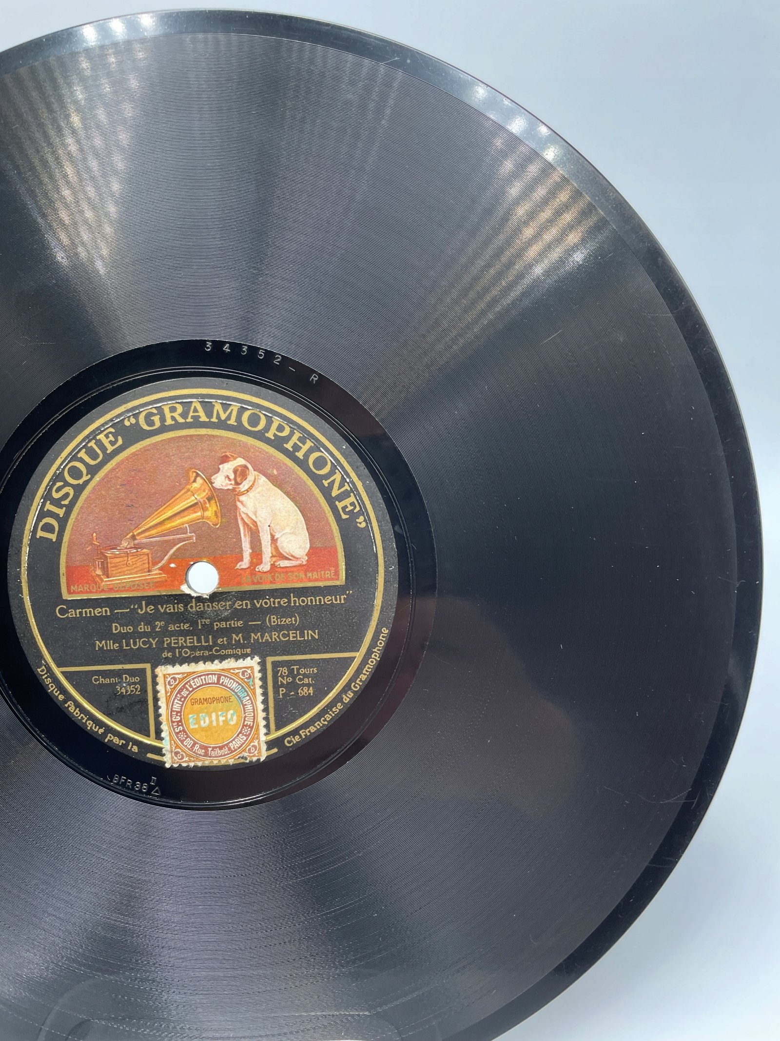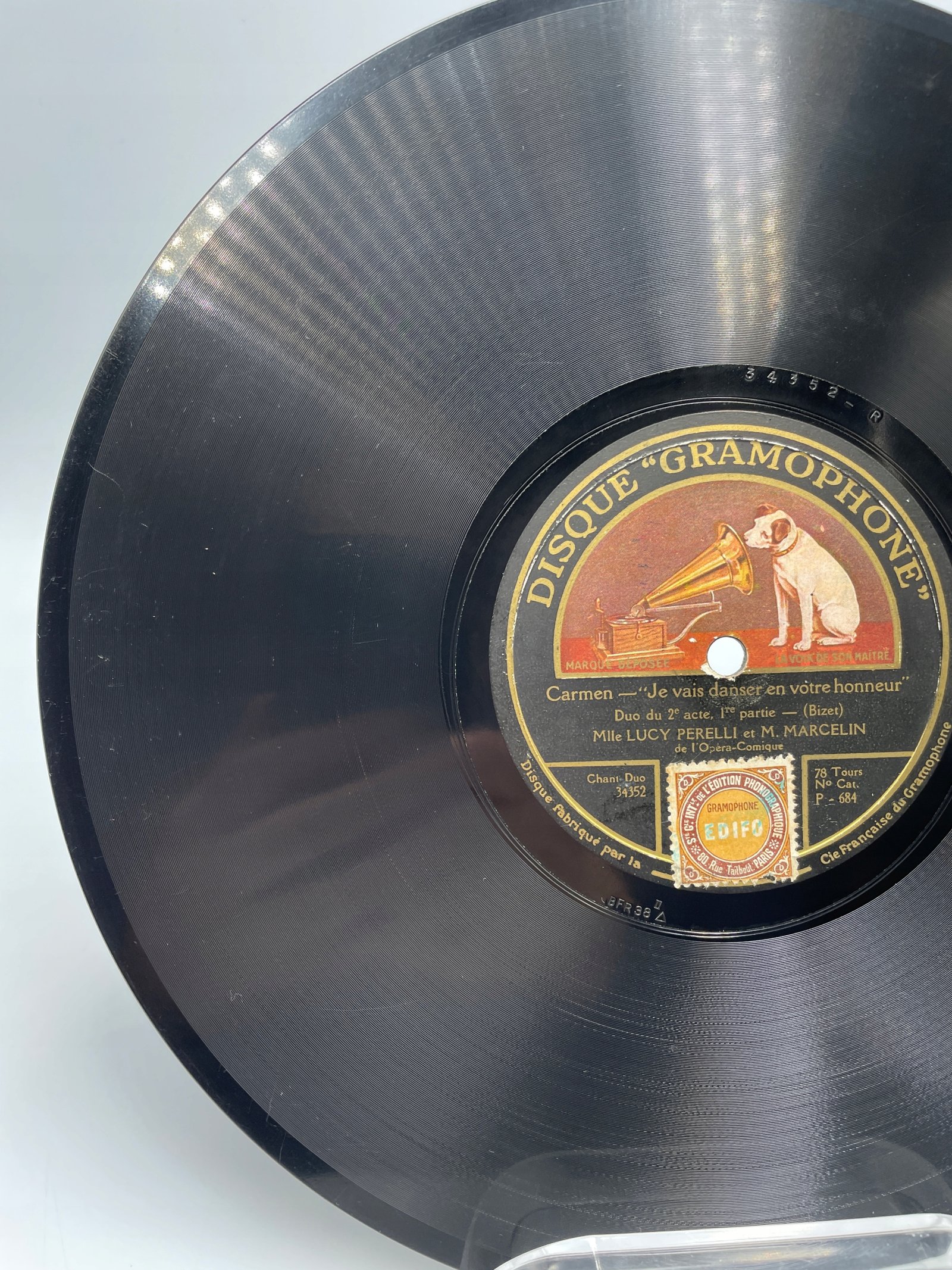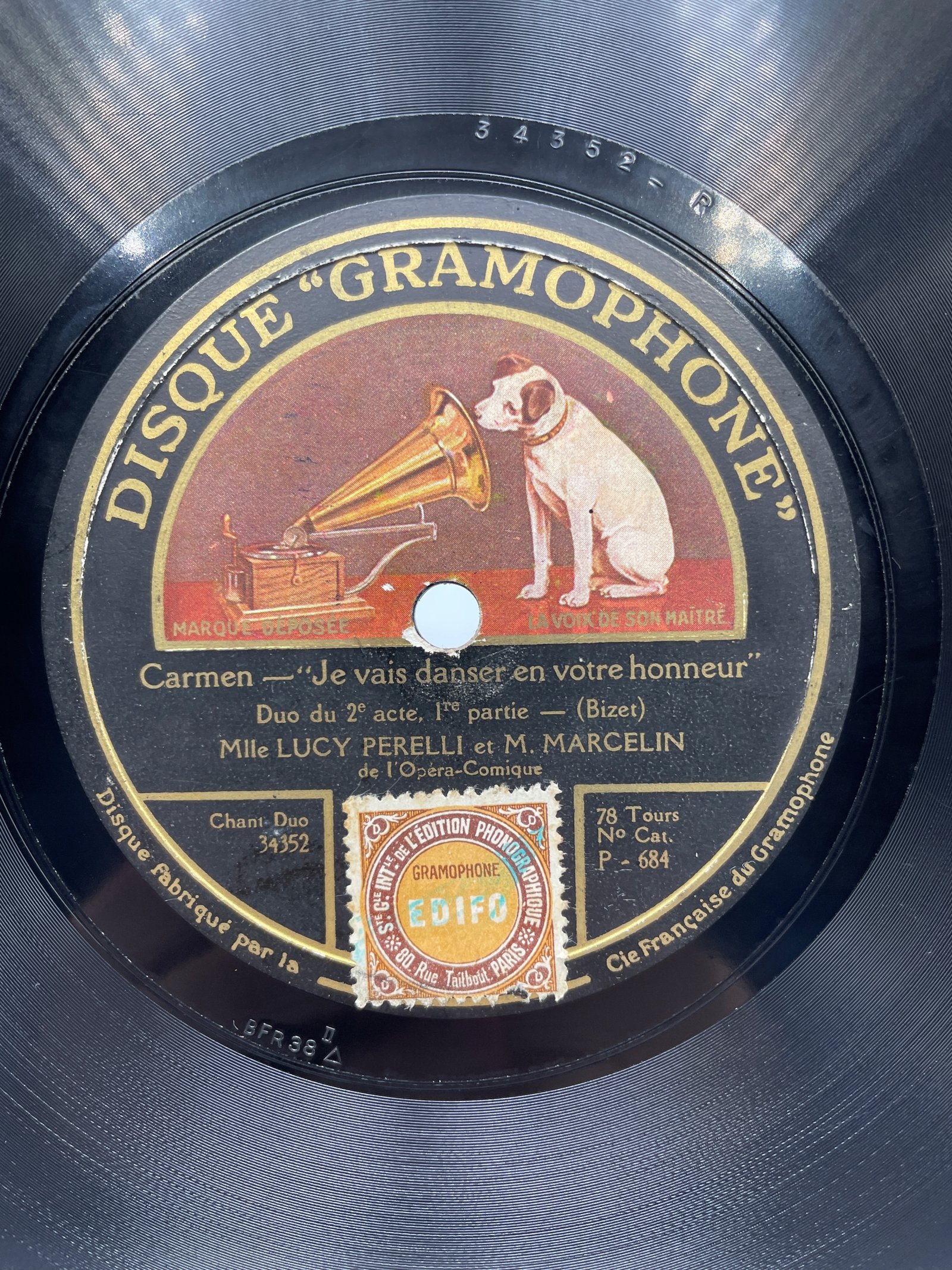 Na płycie marki Disque “Gramophone” znajdują się dwa duety z drugiego aktu opery „Carmen” Georgesa Bizeta w wykonaniu Lucy Perelli i M. Marcelina, artystów Opéra-Comique.