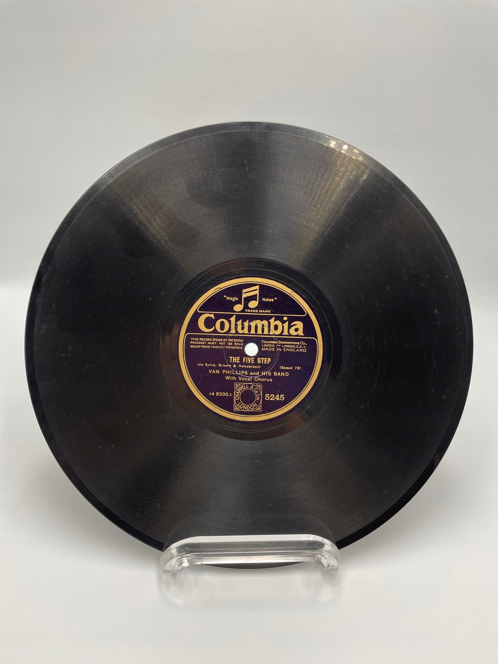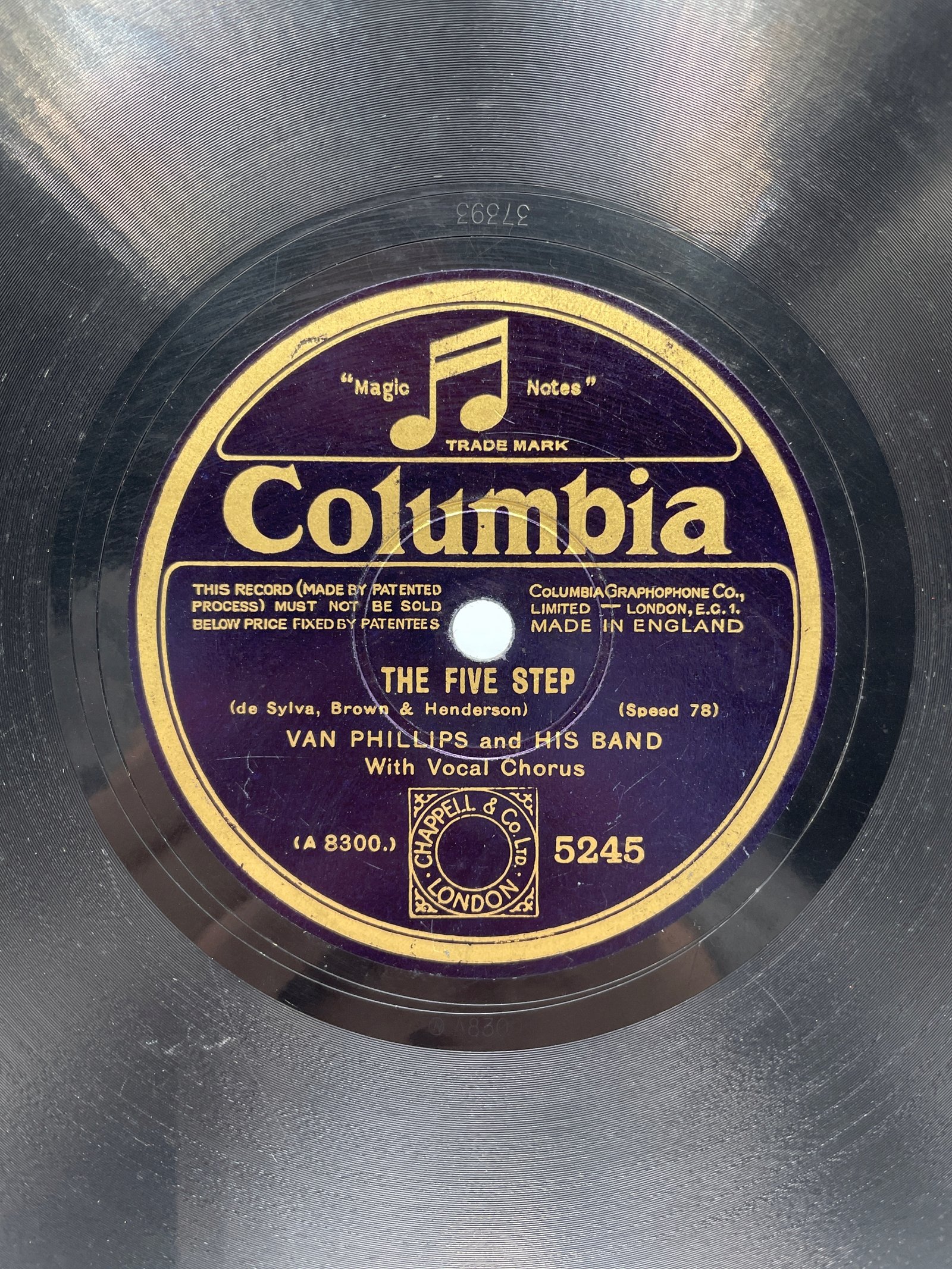 Na tej płycie marki Columbia, wydanej przez Columbia Graphophone Co. Ltd. (Londyn, Anglia), znajduje się nagranie utworu „The Five Step”. Kompozytorzy: de Sylva, Brown & Henderson, wykonawcy: Van Phillips and His Band (z chórem wokalnym).