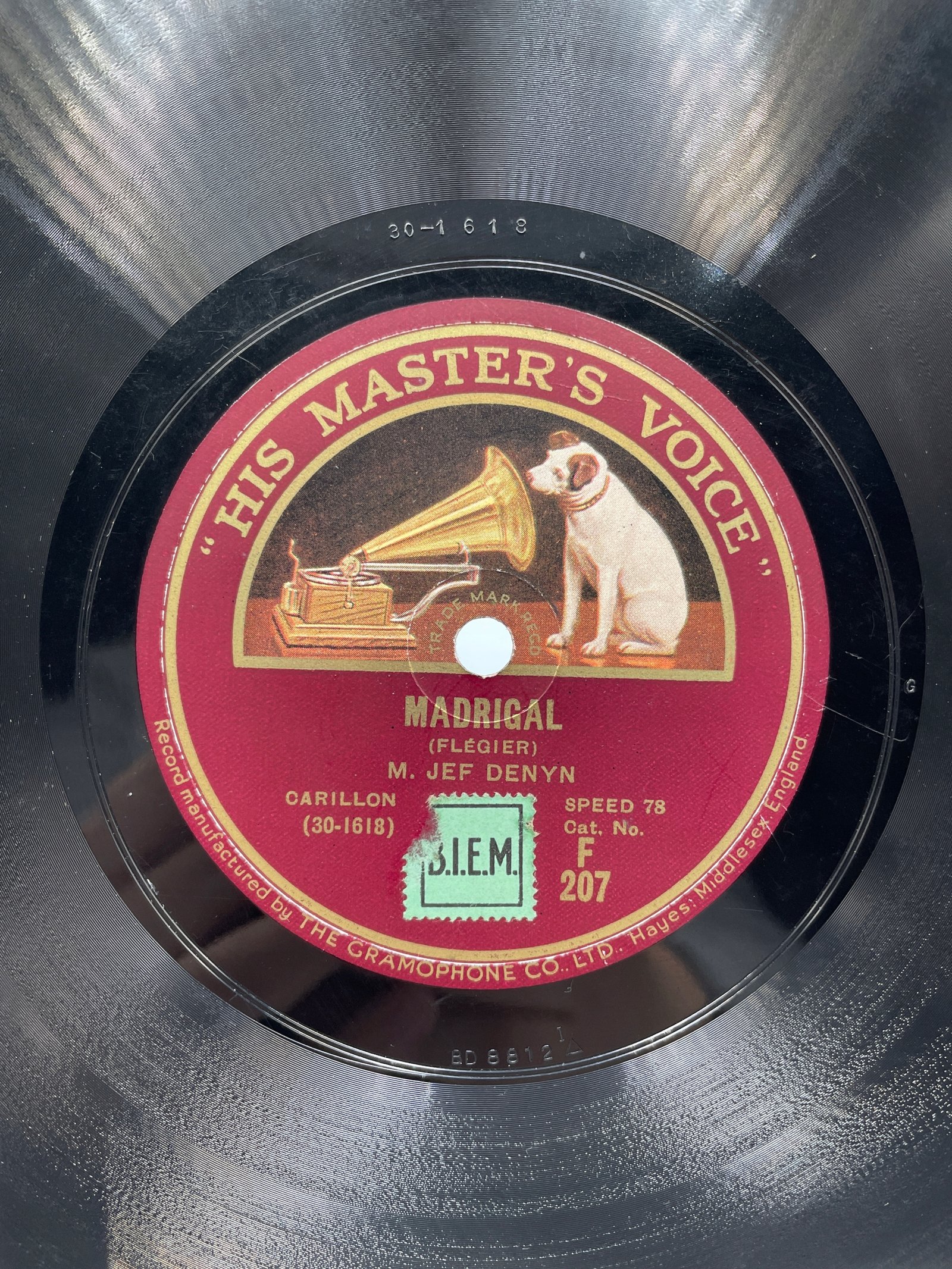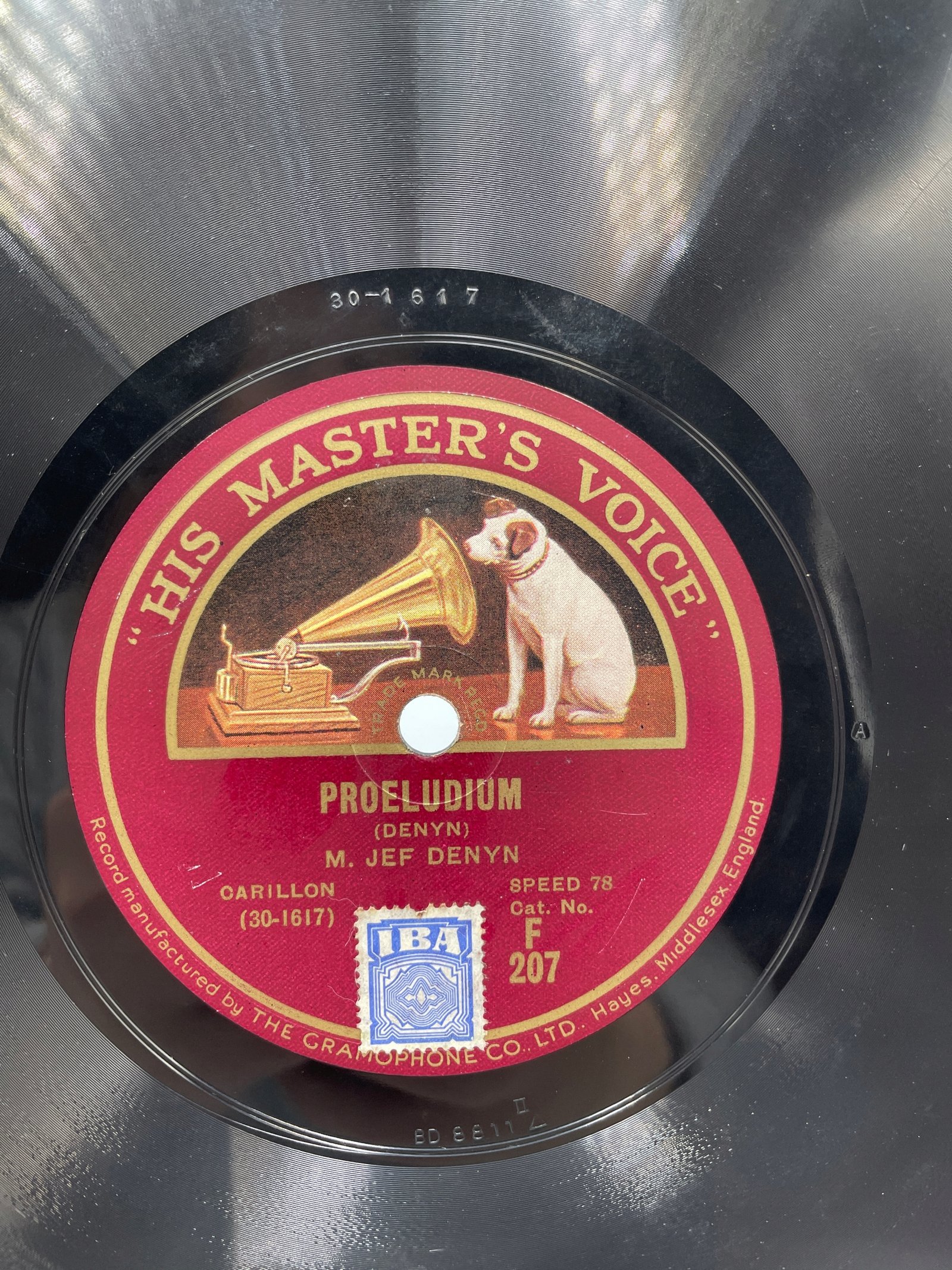 Na tej płycie marki His Master’s Voice (HMV) znajduje się nagranie utworu „Proeludium”, skomponowanego i wykonanego przez M. Jefa Denyna. Instrument wykonania: carillon (dzwony rurowe).