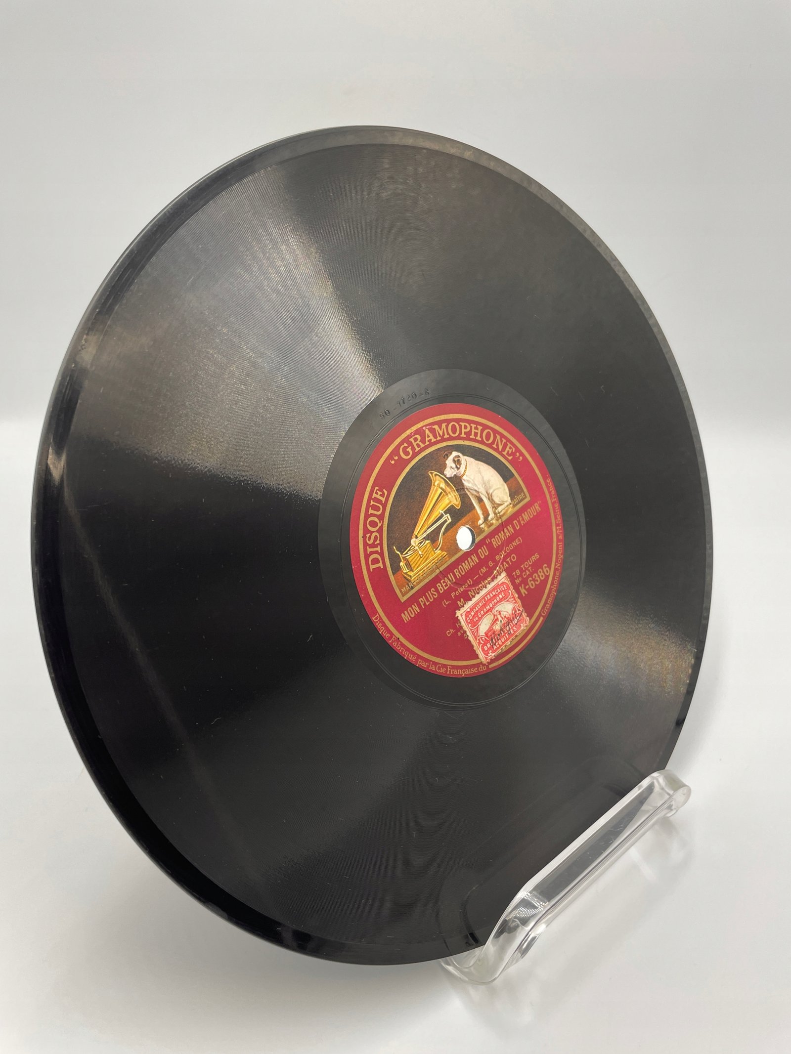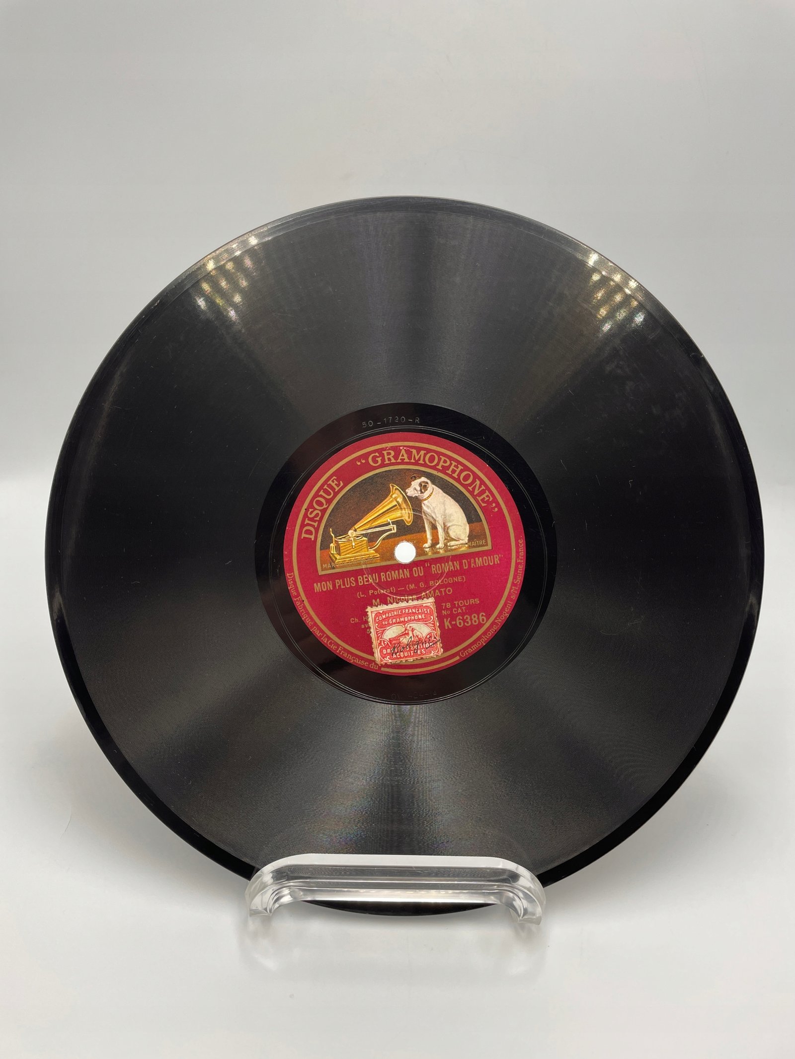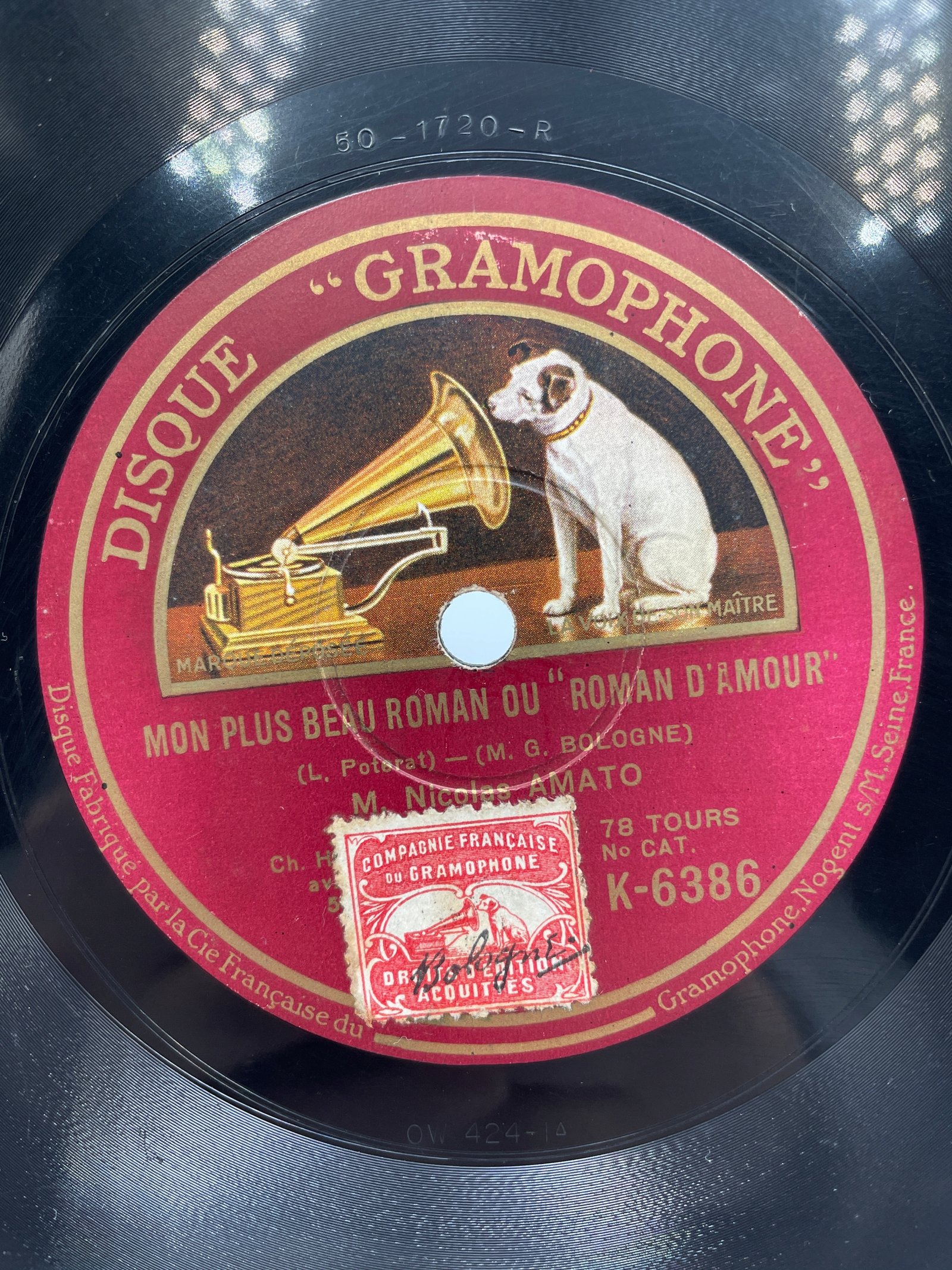 Na tej płycie marki Disque Gramophone, wyprodukowanej przez La Compagnie Française du Gramophone (Nogent-sur-Marne, Francja), znajduje się utwór „Mon plus beau roman ou Roman d’amour” („Moja najpiękniejsza powieść lub Romans miłosny”). Autorzy: L. Poterat (tekst) i M. G. Bologne (muzyka). Wykonawca: M. Nicolas Amato.