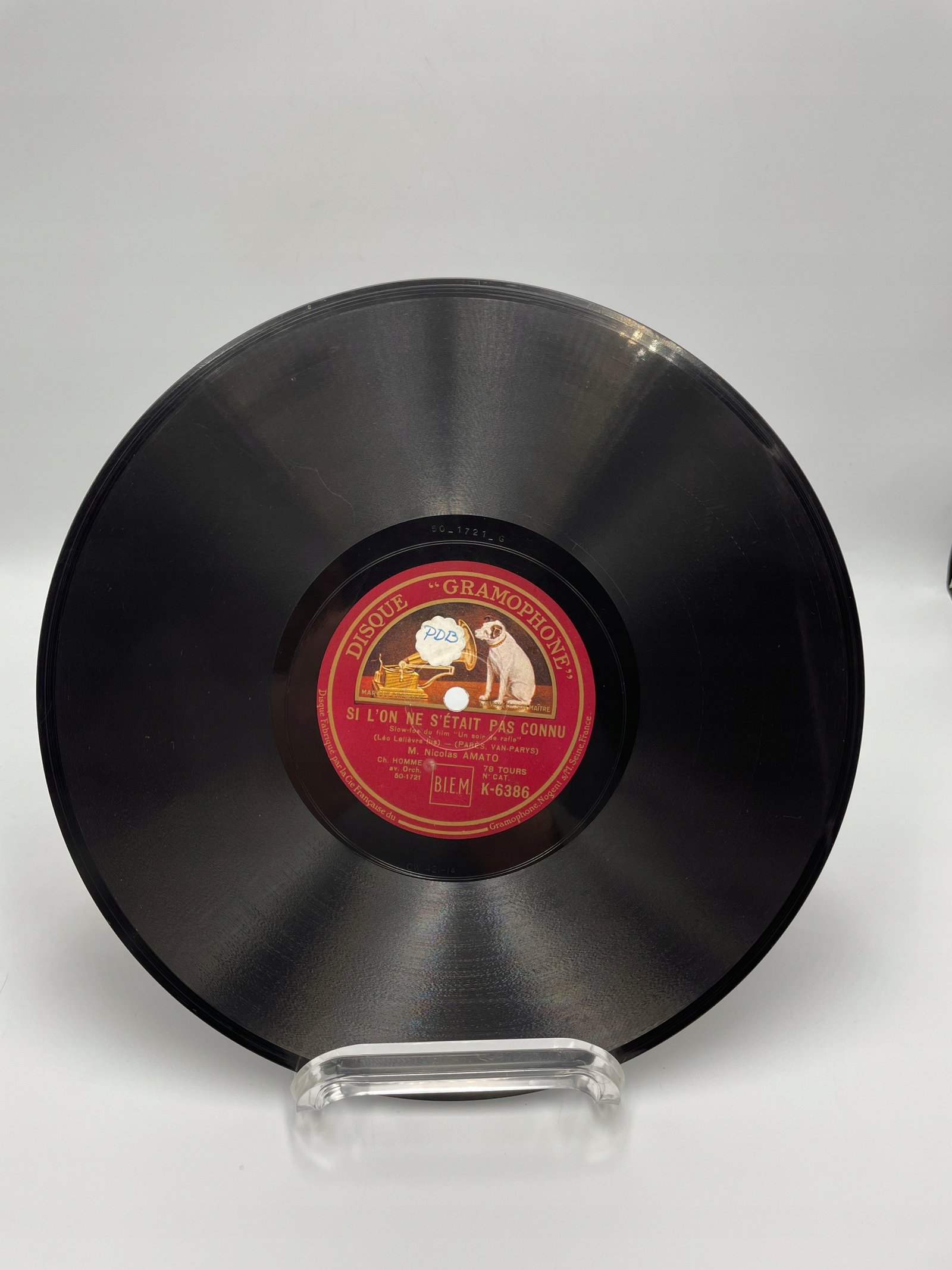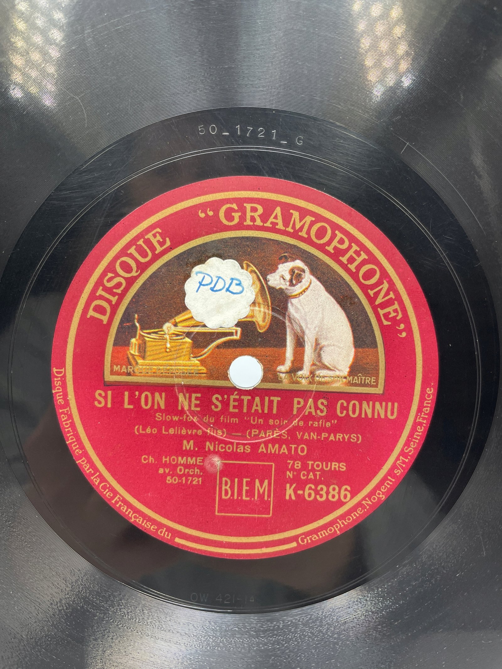 Na tej płycie marki Disque Gramophone, wyprodukowanej przez La Compagnie Française du Gramophone (Nogent-sur-Marne, Francja), znajduje się nagranie utworu „Si l’on ne s’était pas connu”. Jest to utwór w stylu slow-fox z filmu „Un soir de rafle”. Kompozytorzy: Parès, Van-Parys, tekst: Léo Lelièvre. Wykonawca: M. Nicolas Amato.