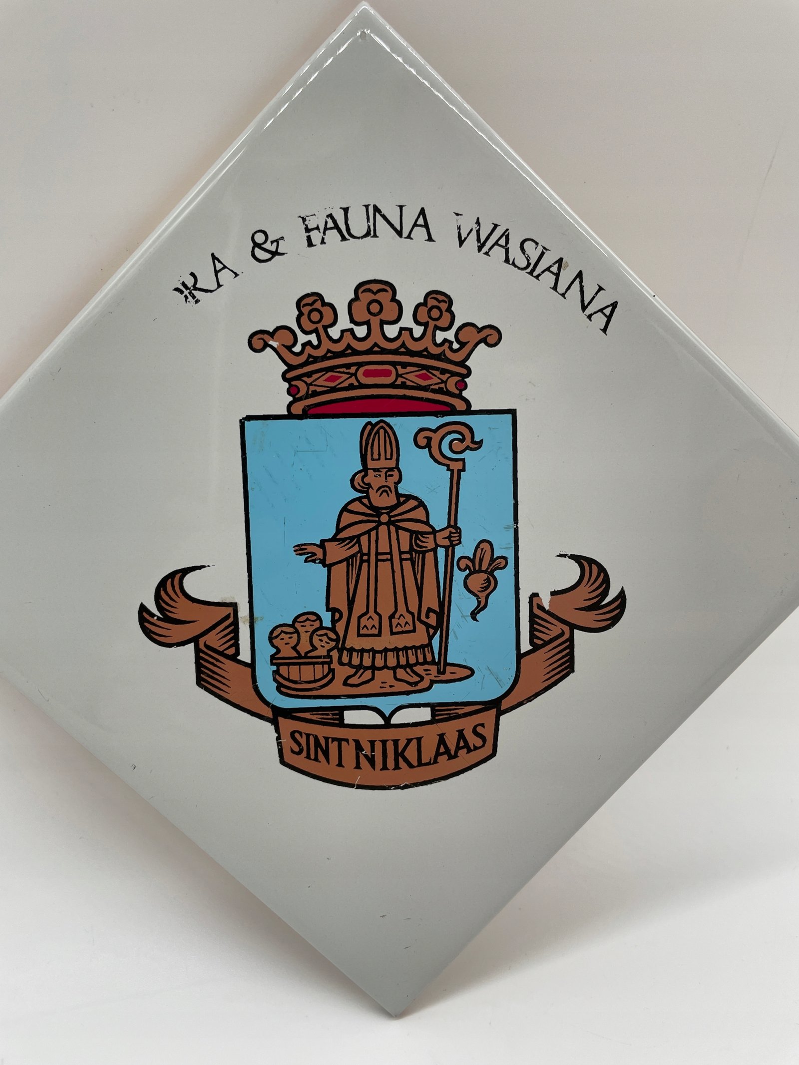 Plytka ceramiczna herb Sint-Niklaas Belgia lata 1970 15×15 cm