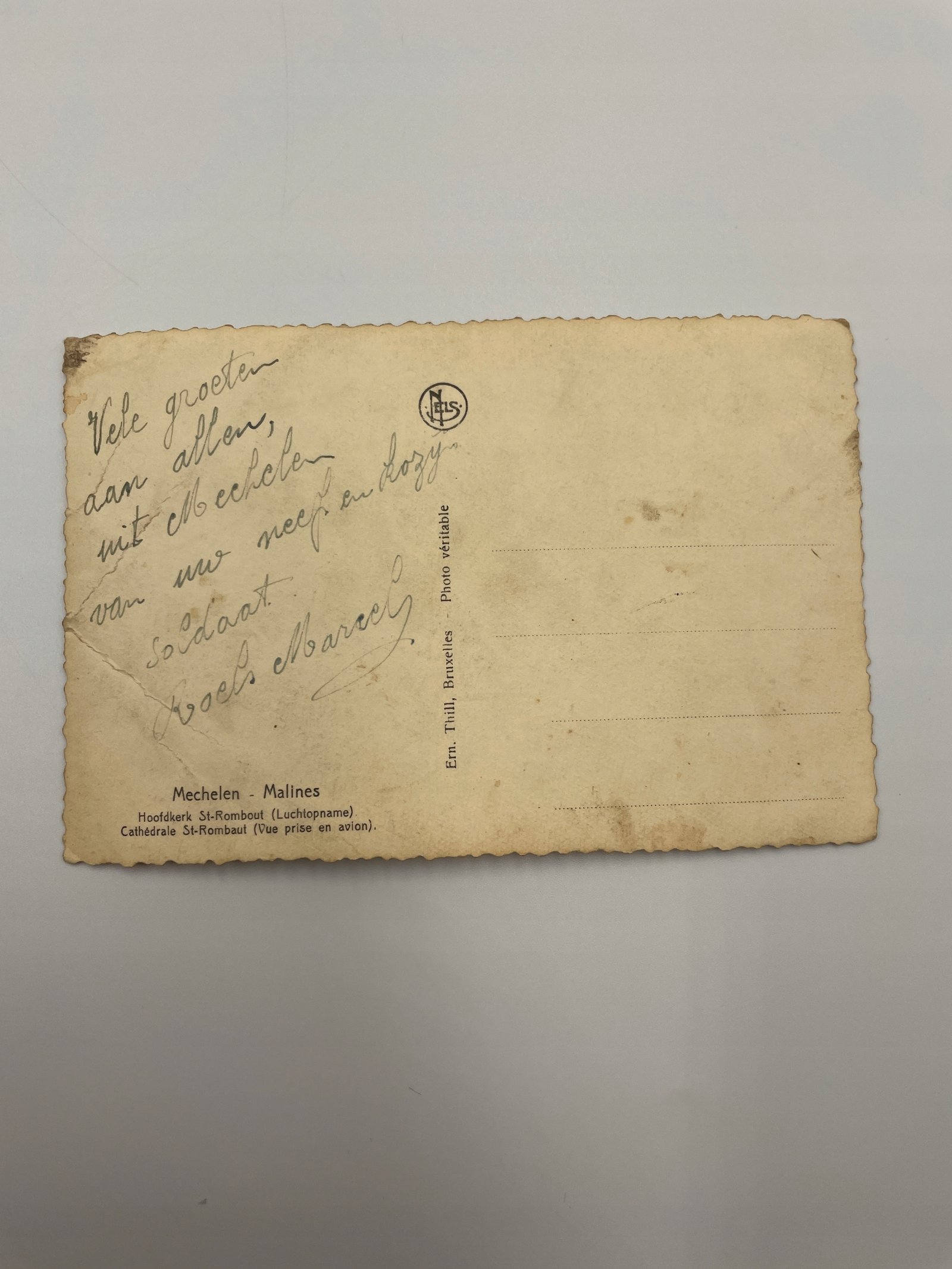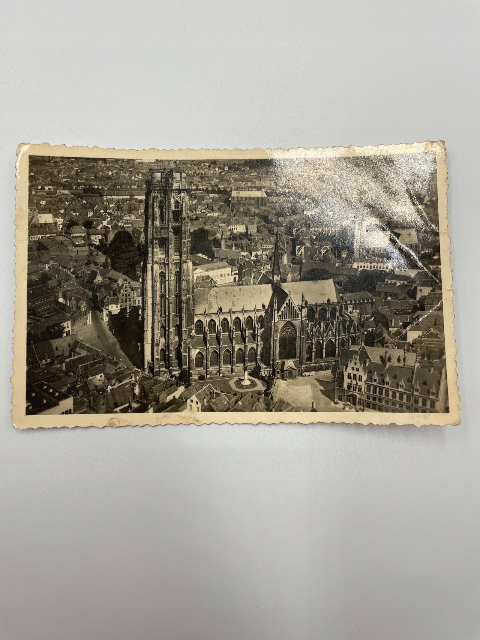 Pocztówka Belgia 1950s Mechelen katedra z lotu ptaka
