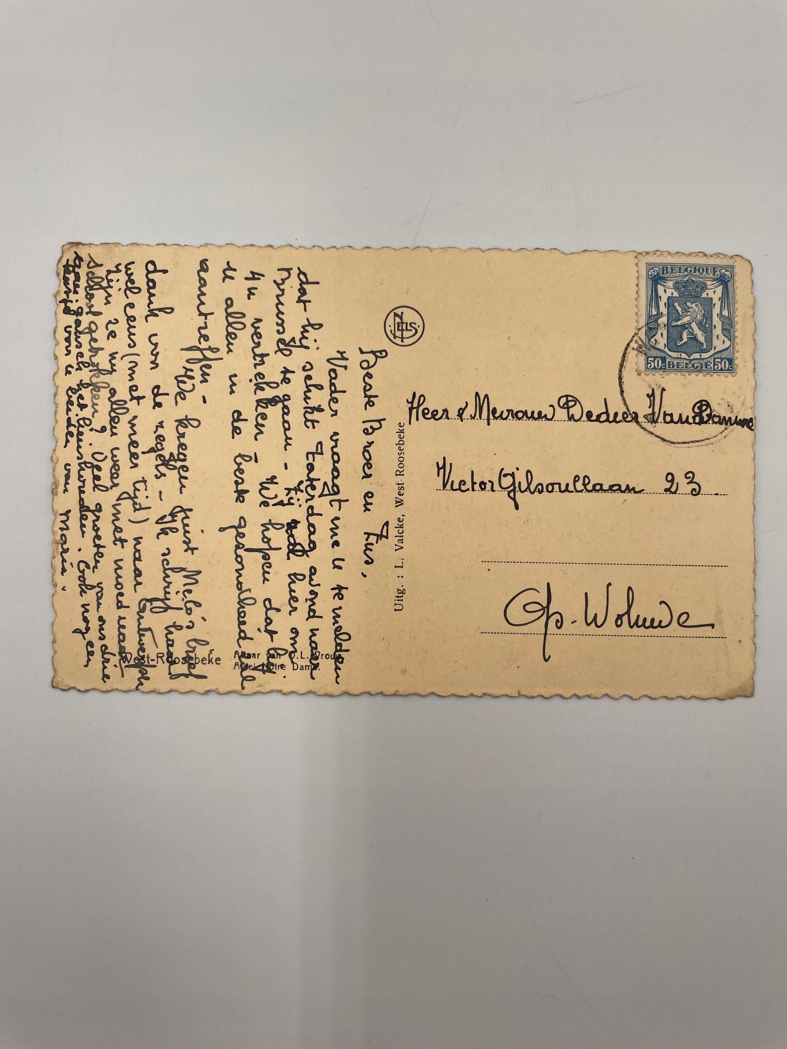 Pocztówka Belgia 1950s wnętrze ołtarza Roosbeek