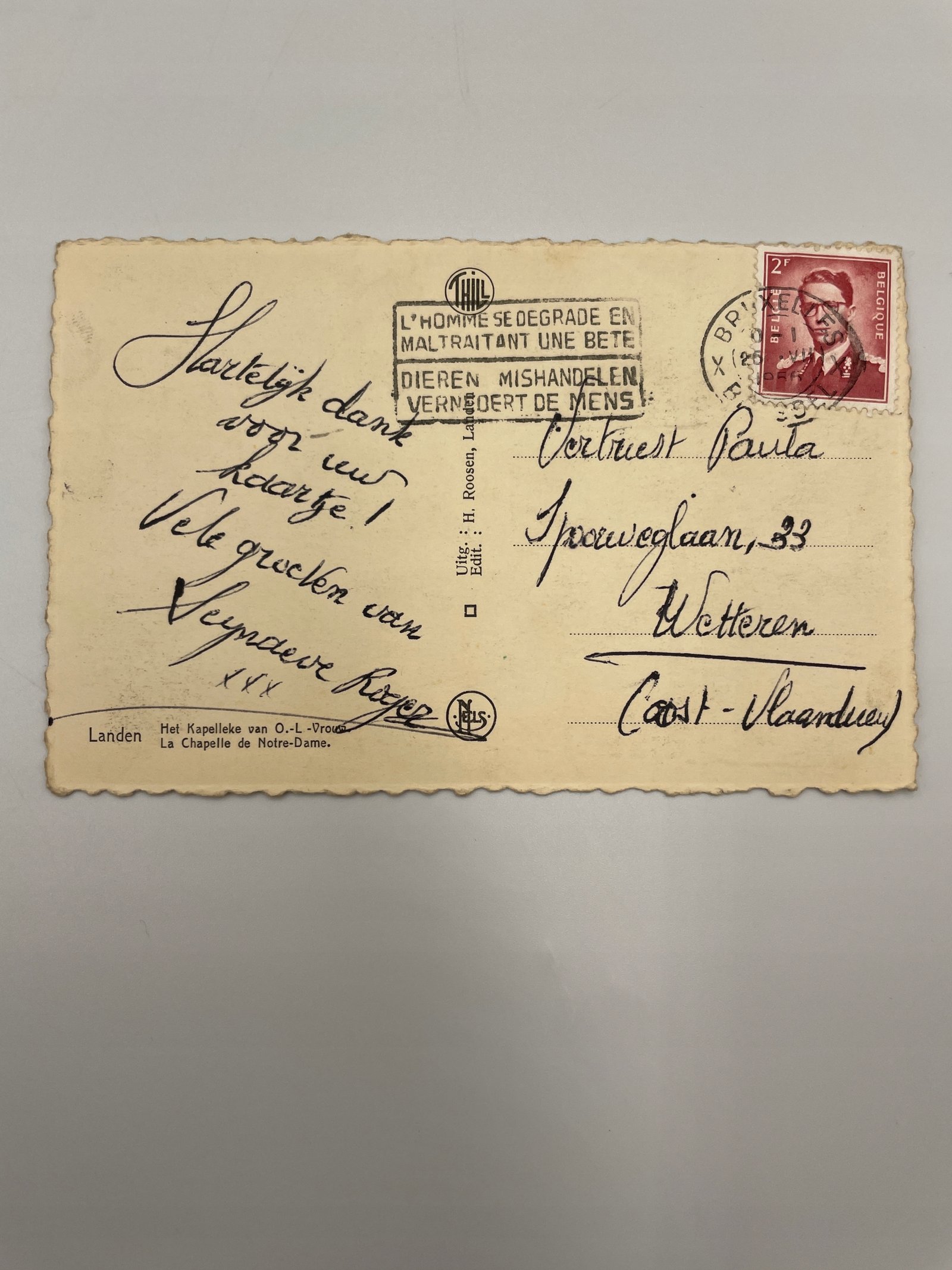 Pocztówka Belgia 1954 kapliczka Matki Boskiej Landen