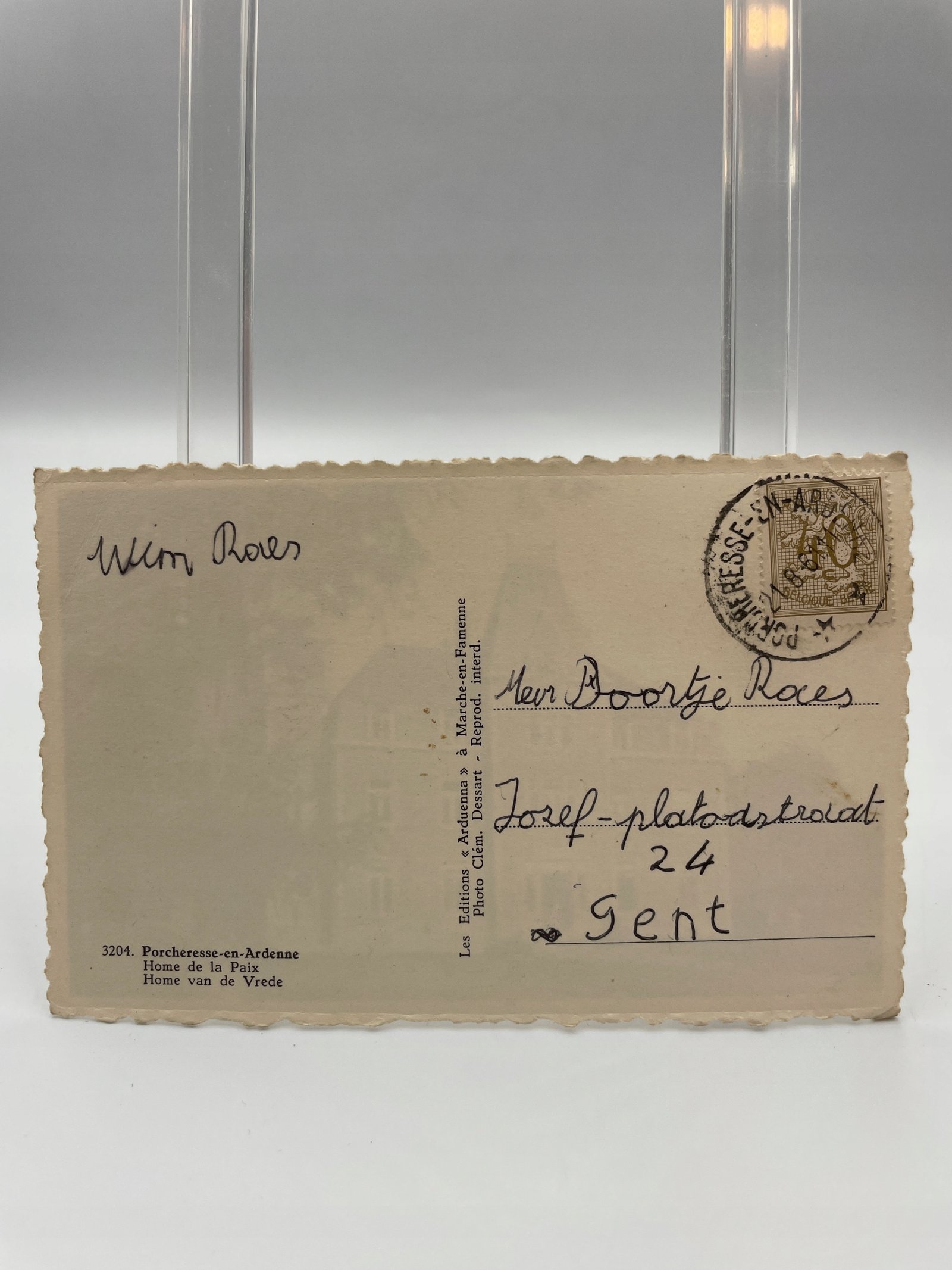 Pocztówka Belgia 1954 Porcheresse Home de la Paix francuskojęzyczna