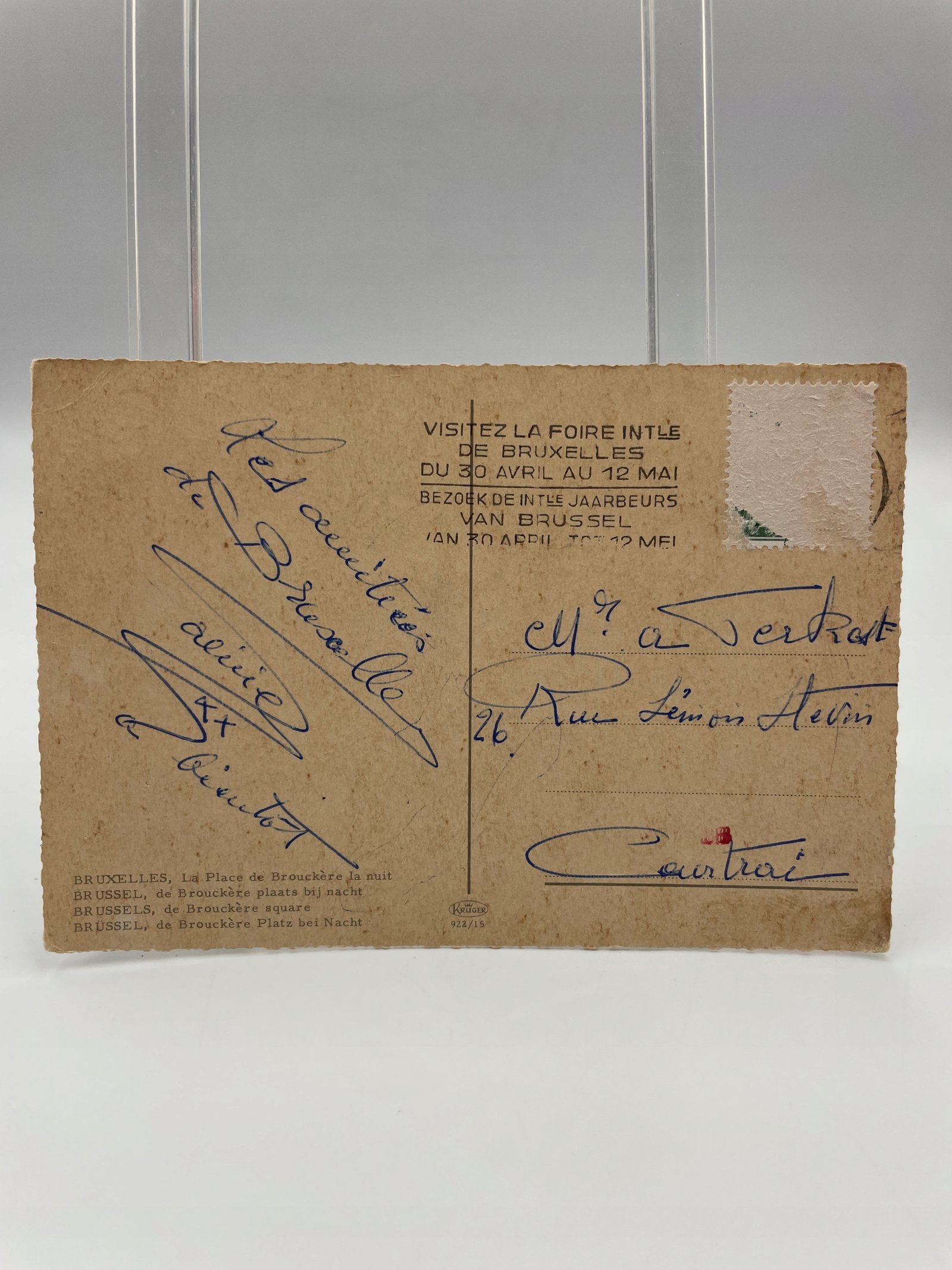 Pocztówka Belgia 1957 Bruksela plac de Brouckère nocą Kolor