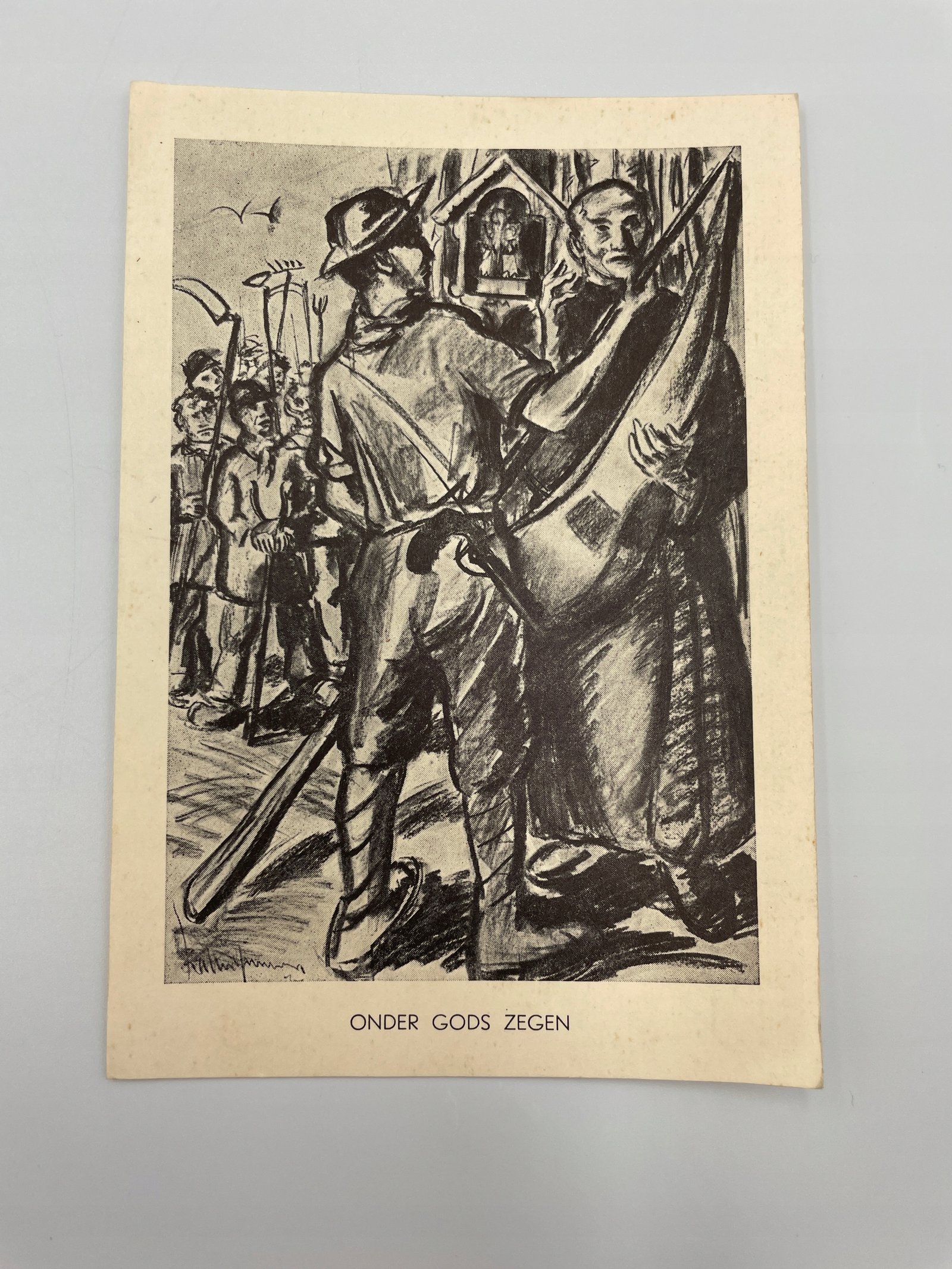 Pocztówka Belgia ok. 1950 Onder Gods Zegen rysunek Kallist Fimmers