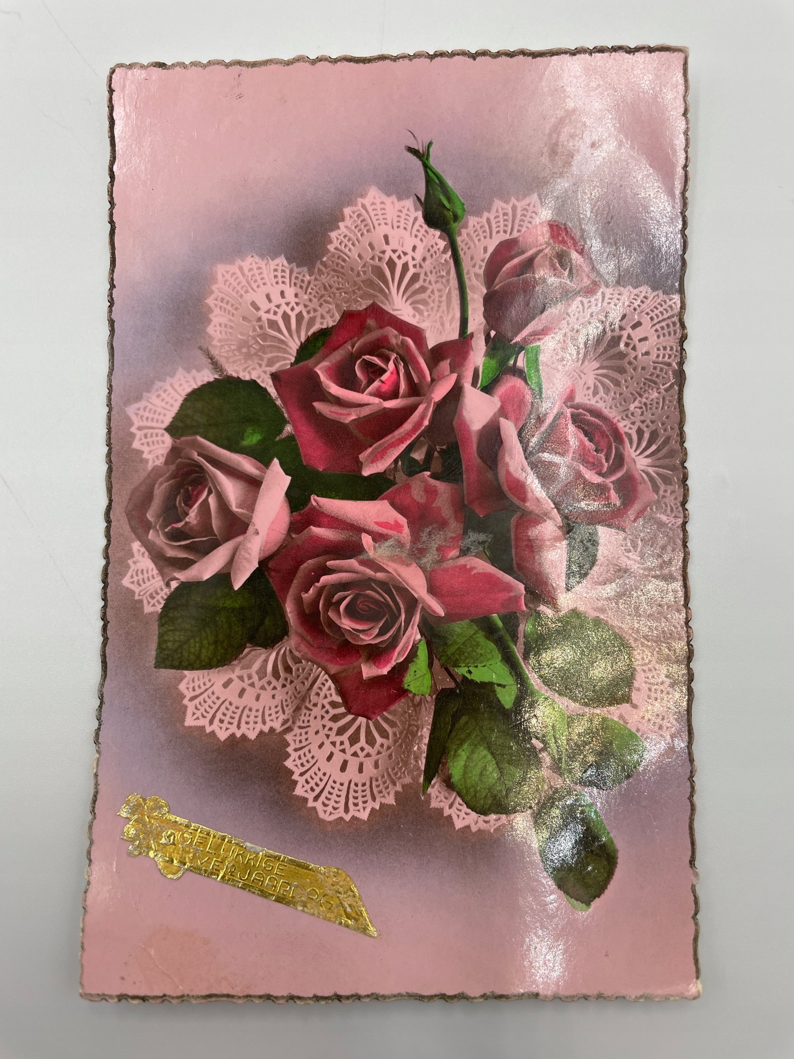 Pocztówka Francja 1951 róże koronka życzenia świąteczne