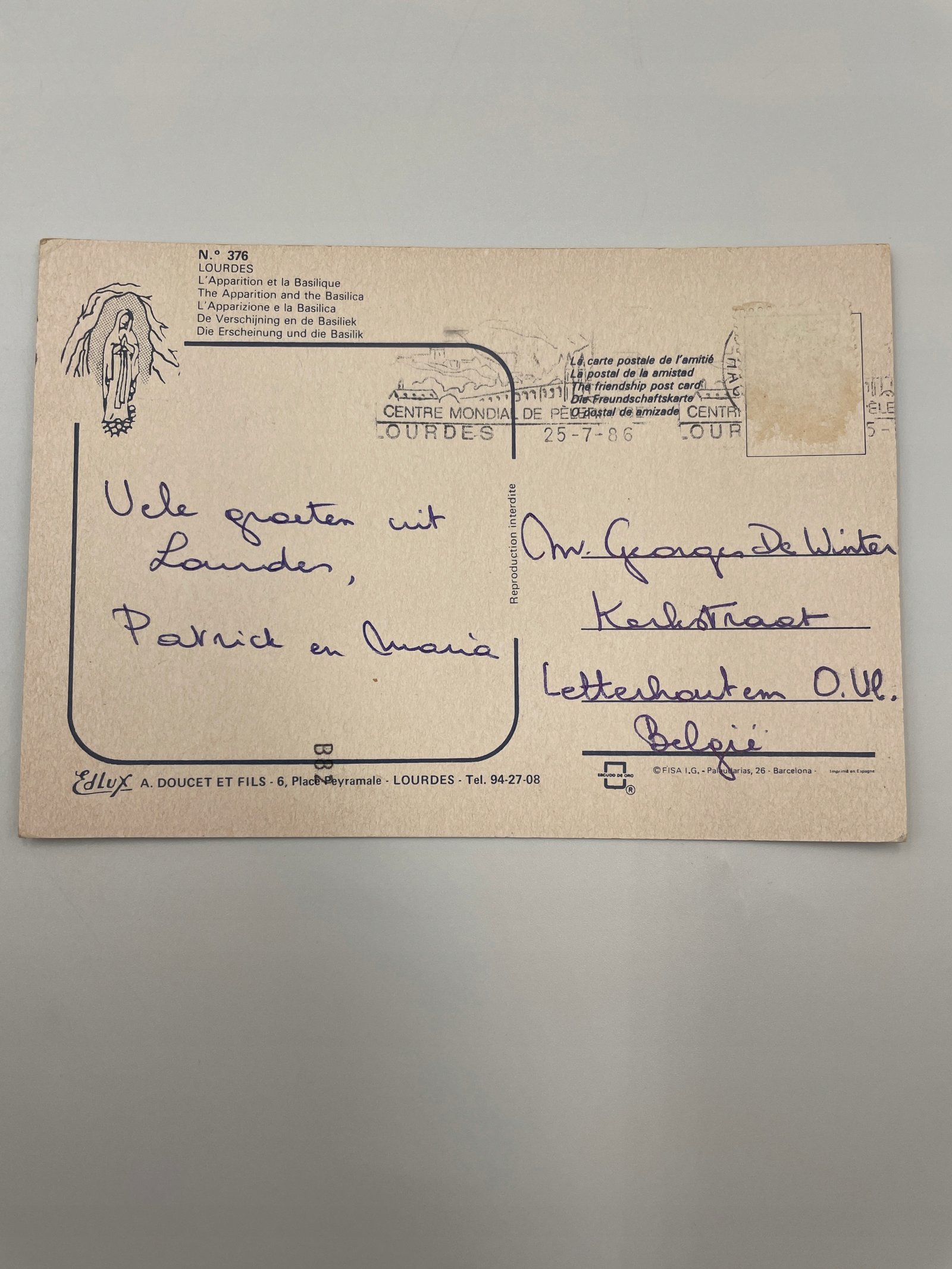 Pocztówka Francja 1986 Matka Boża w Lourdes i bazylika