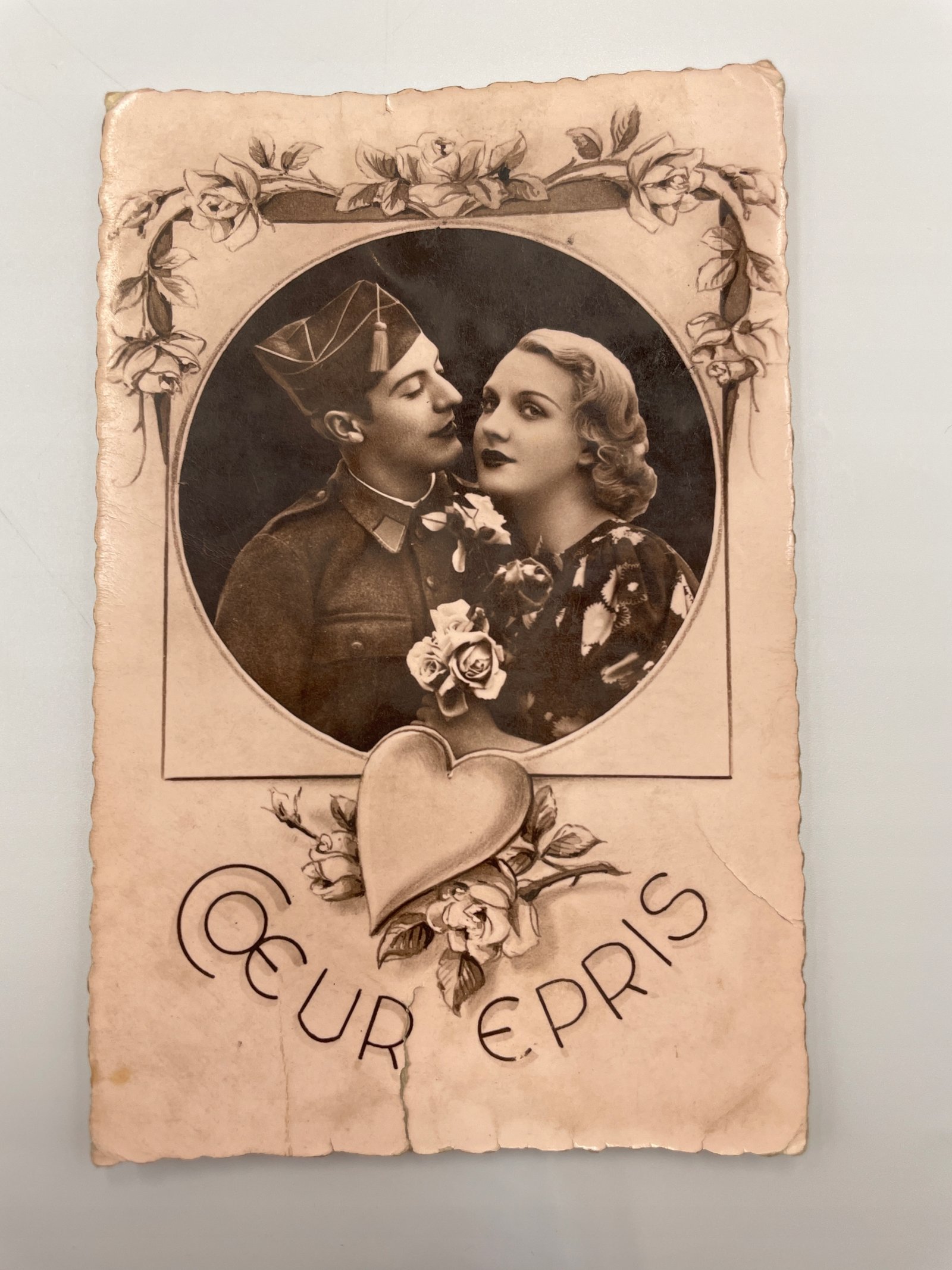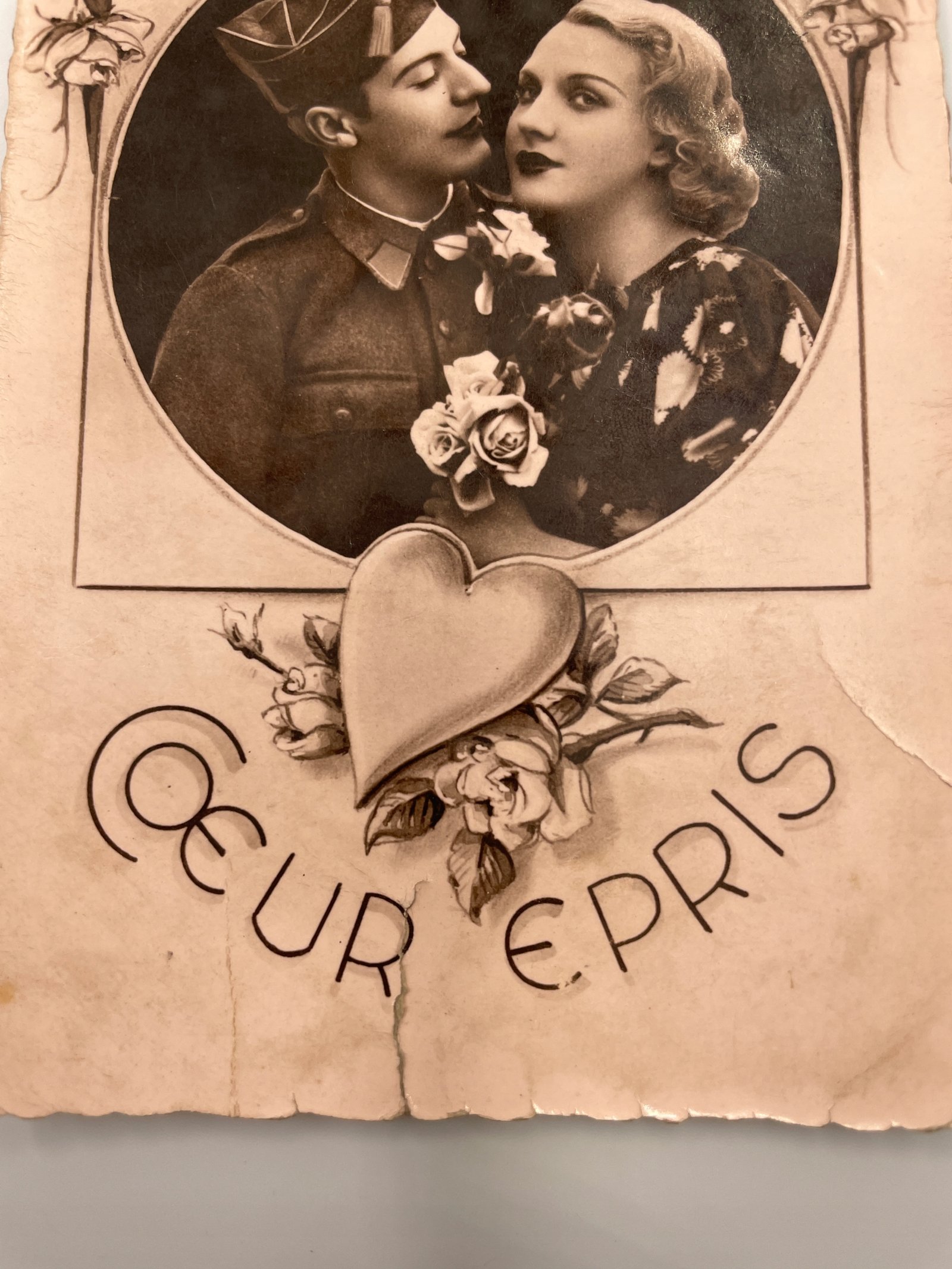 Pocztówka Francja ok. 1940 Cœur Épris żołnierz i kobieta