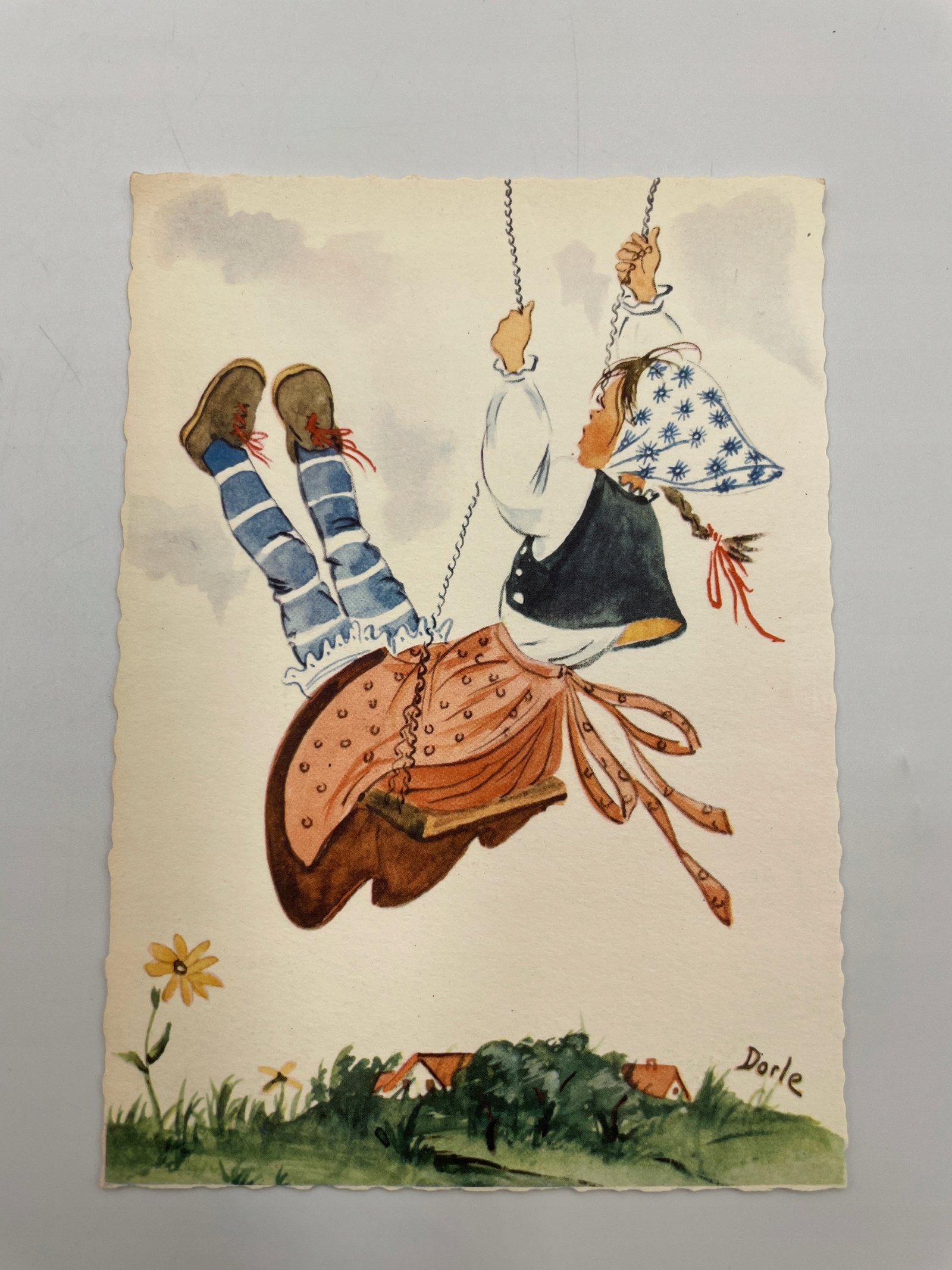 Pocztówka Niemcy 1950s dziewczynka na huśtawce na wsi Dorle