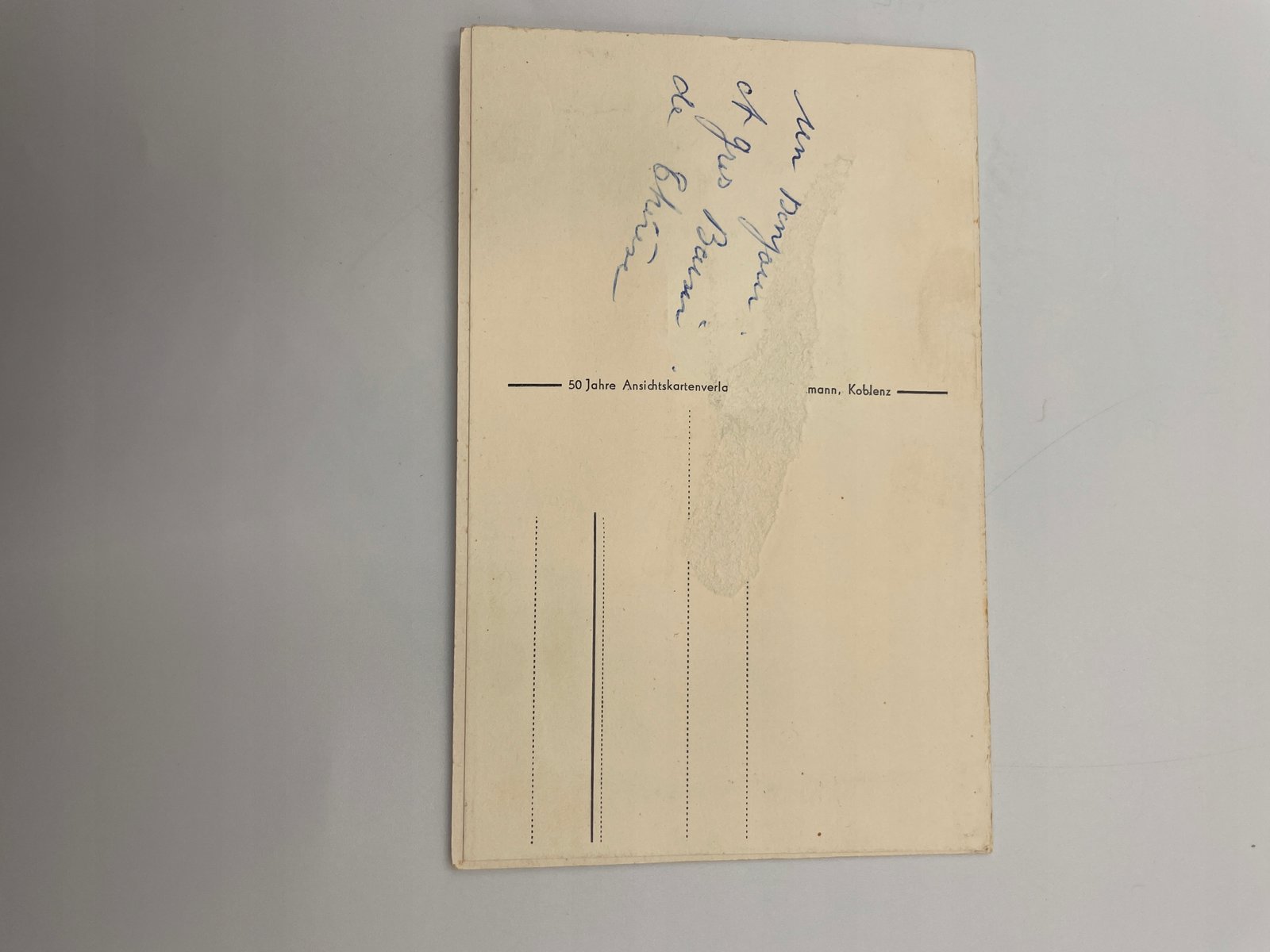 Pocztówka Niemcy 1950s spacer nad Renem składana widokówka Koblenz
