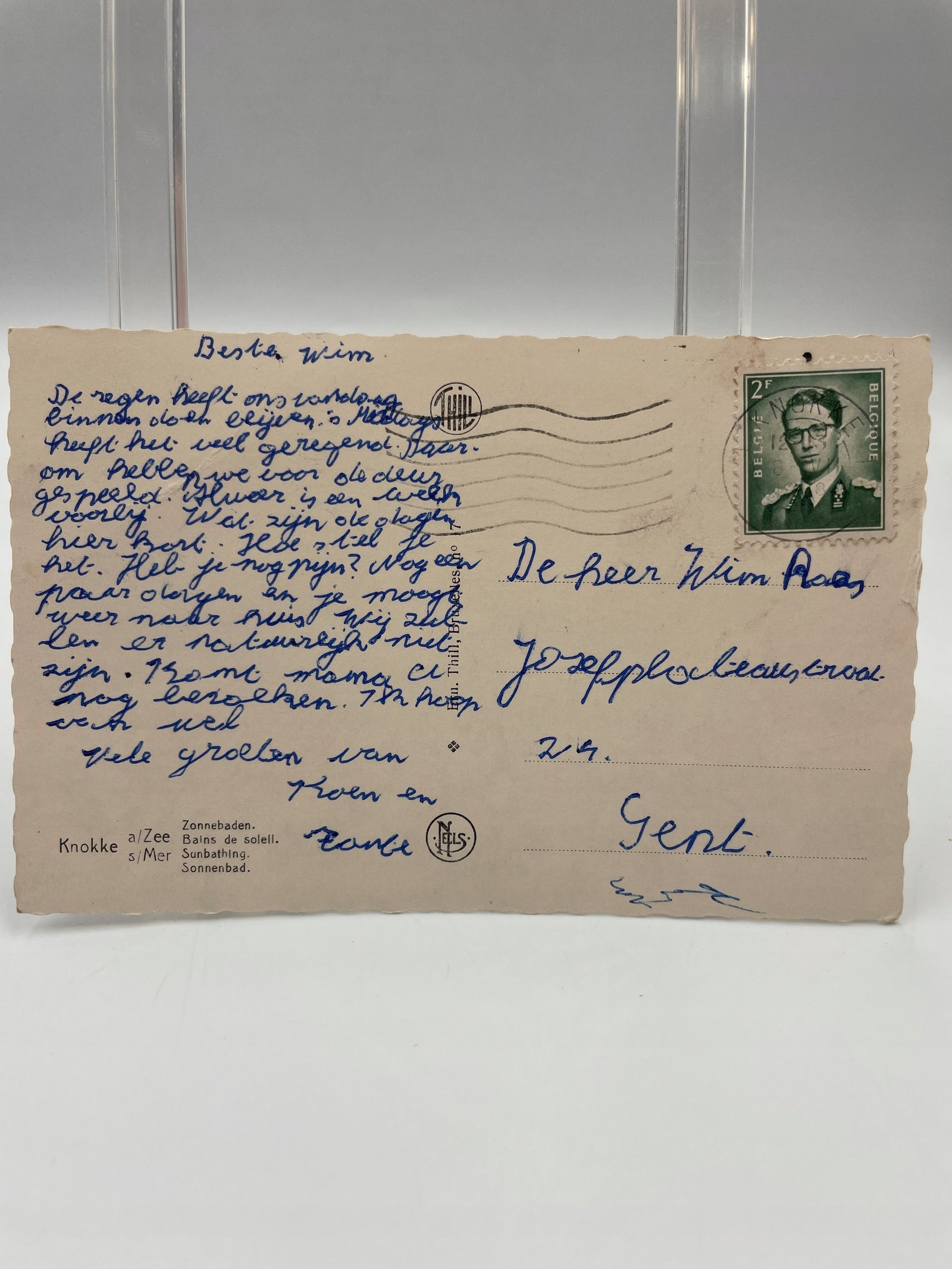 Pocztówka plaża Belgia Knokke 1950s Zonnebaden wyd. Nels wysłana do Belgii