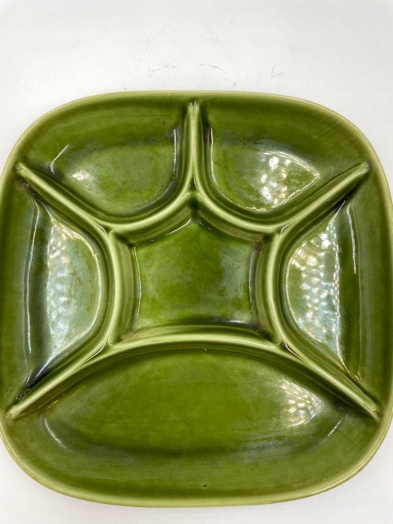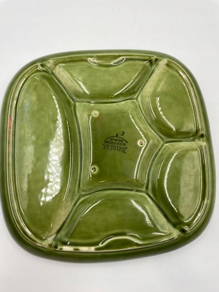 Półmisek ceramiczny Boch Freres Keralux Belgia zielony dzielony 23,5 cm