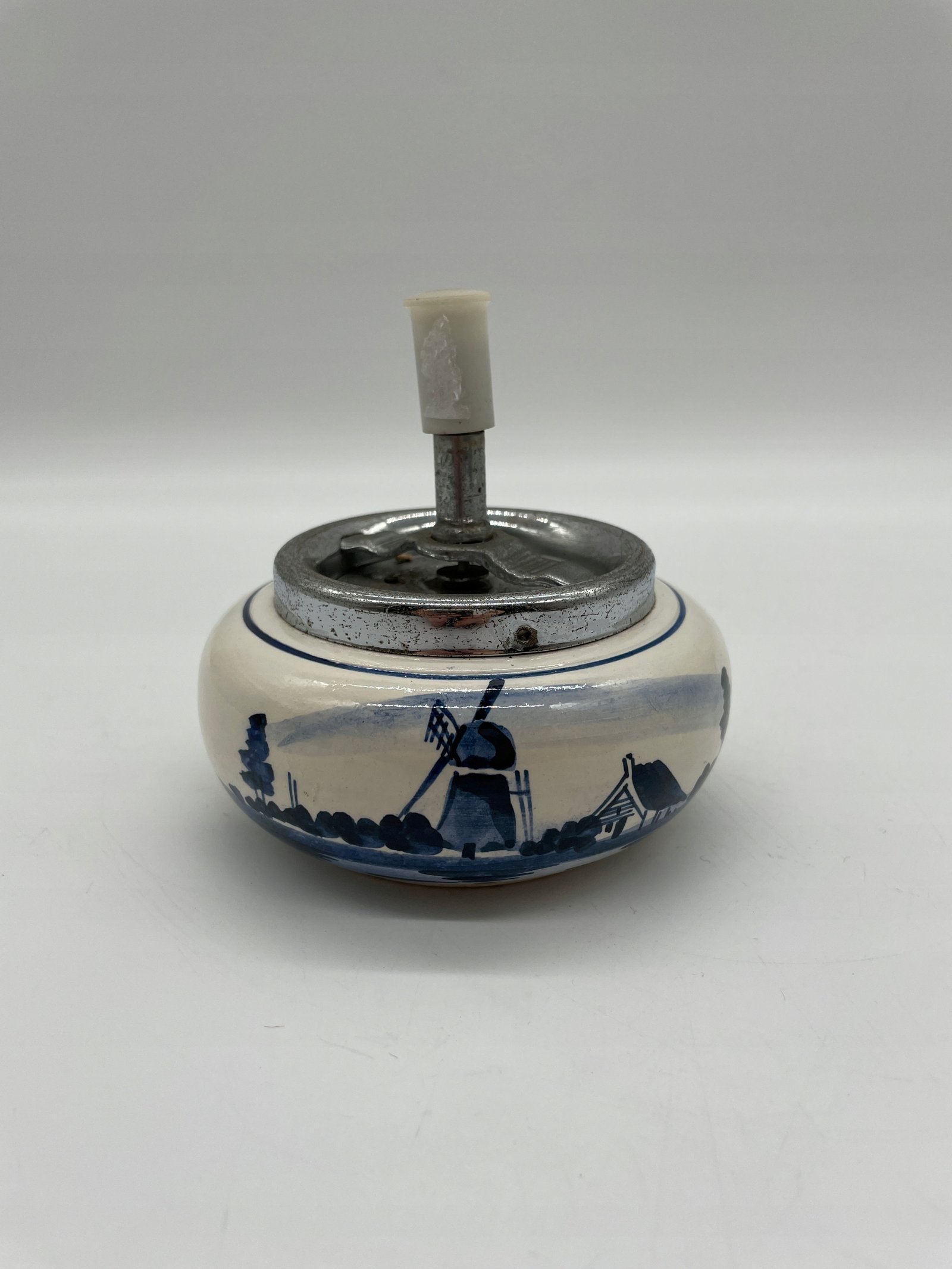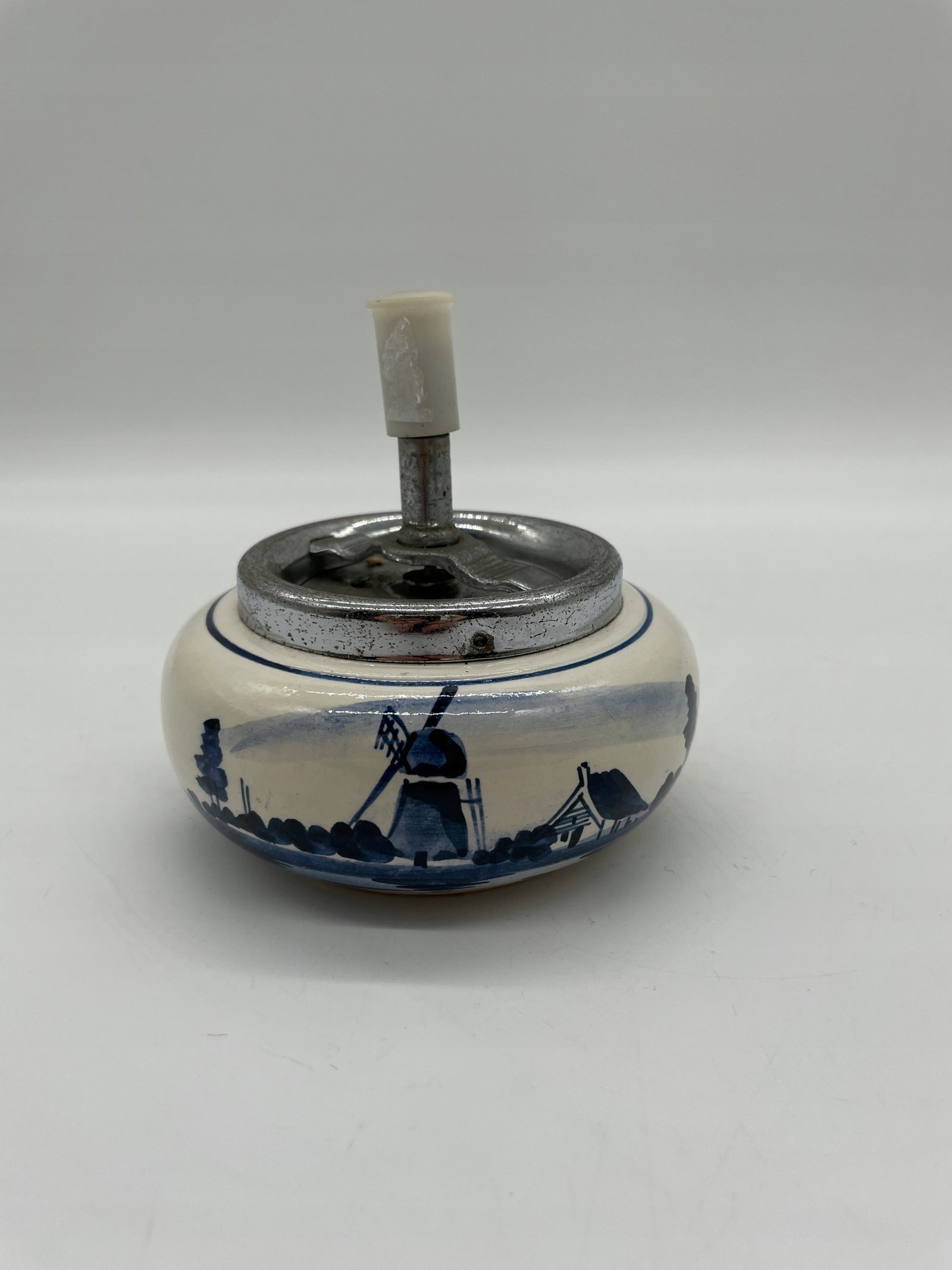 Popielniczka obrotowa ceramiczna Delft Holandia z młynami
