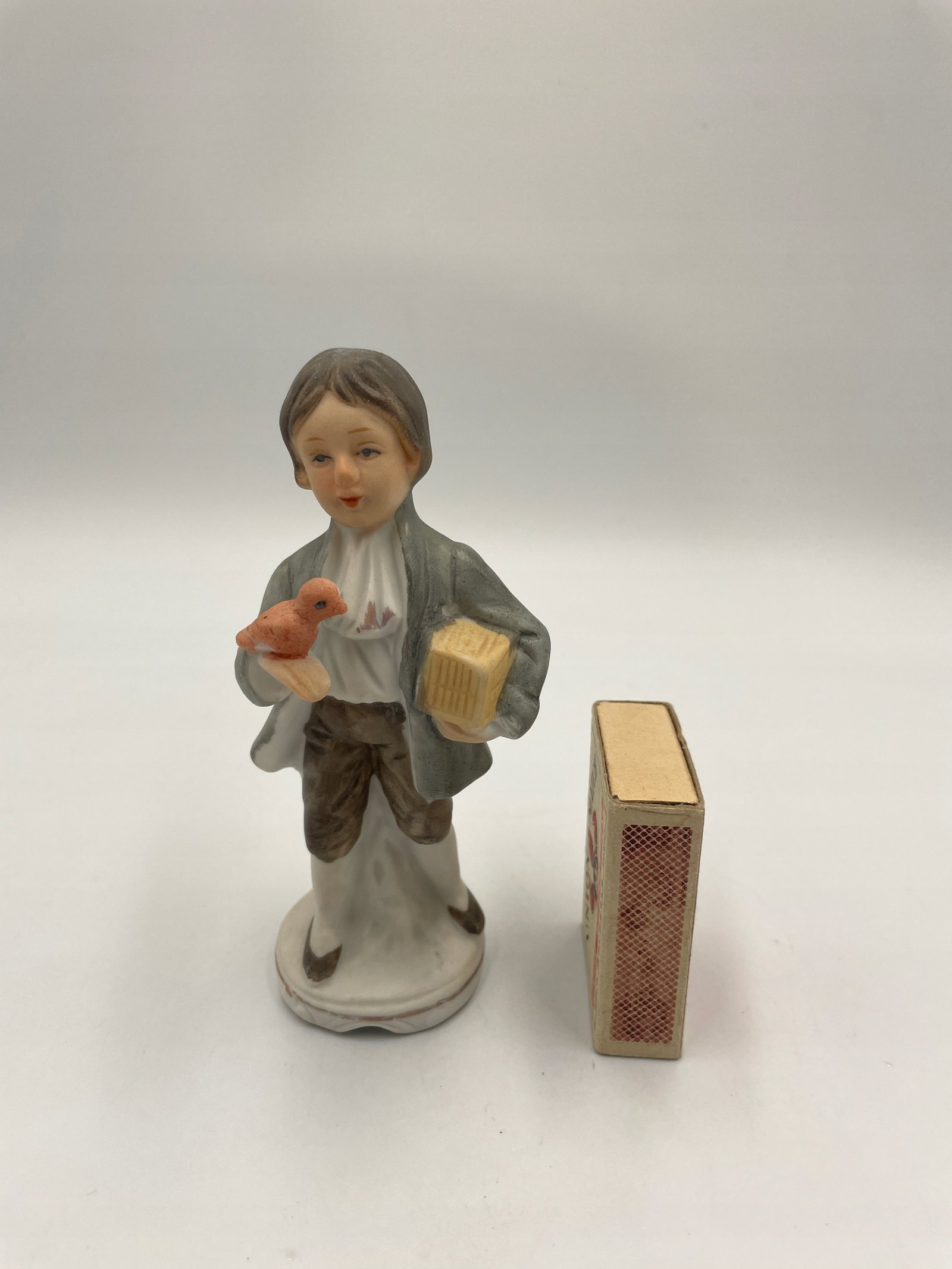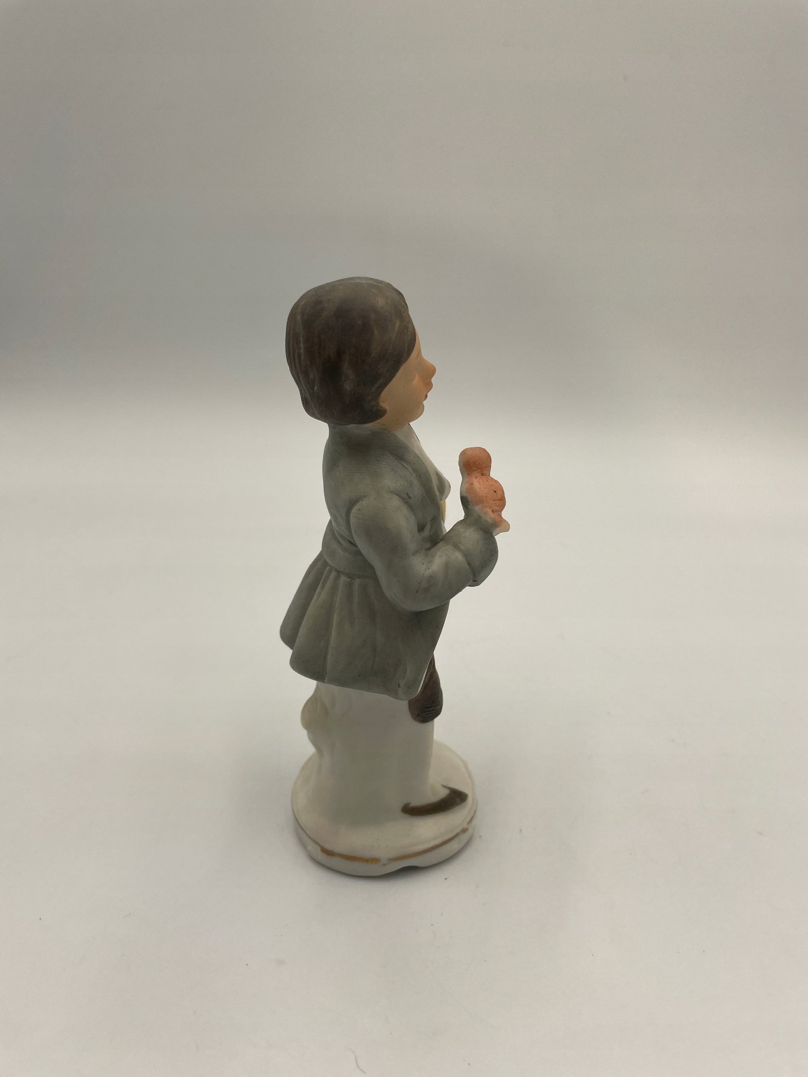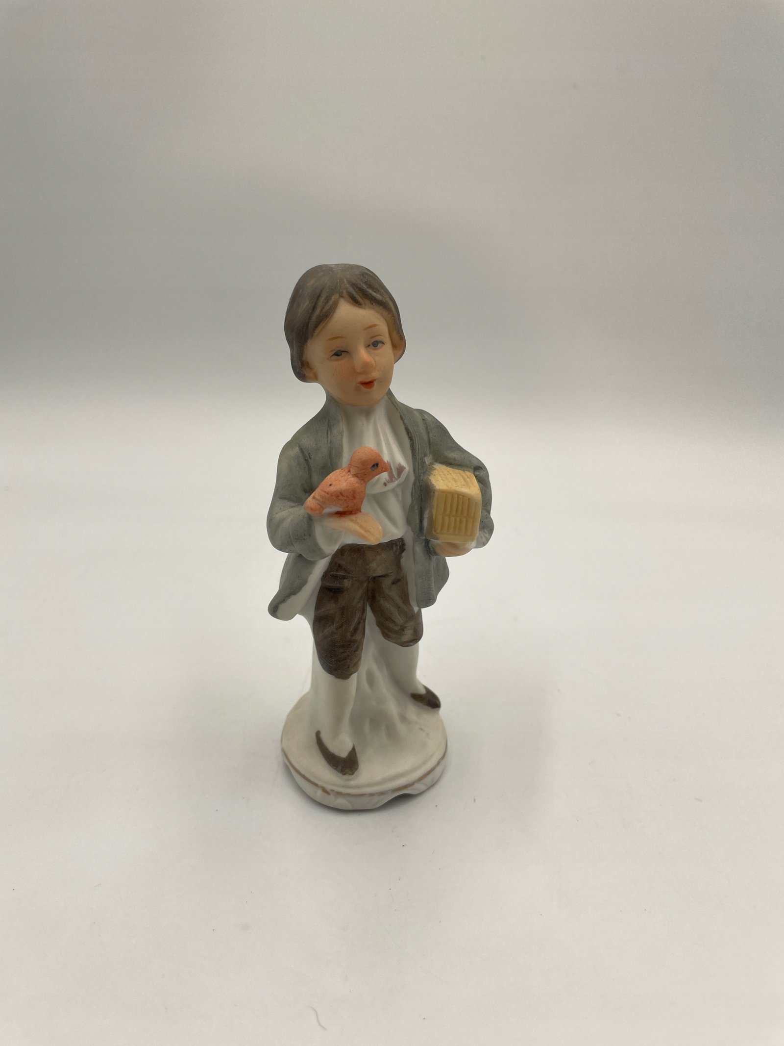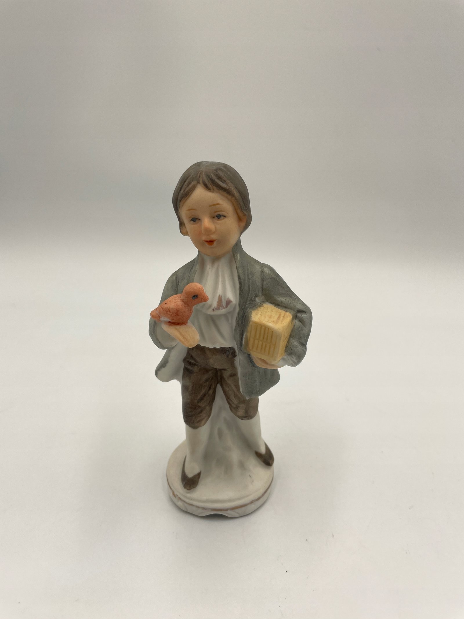 Rzadka porcelanowa figurka chłopca z ptakiem