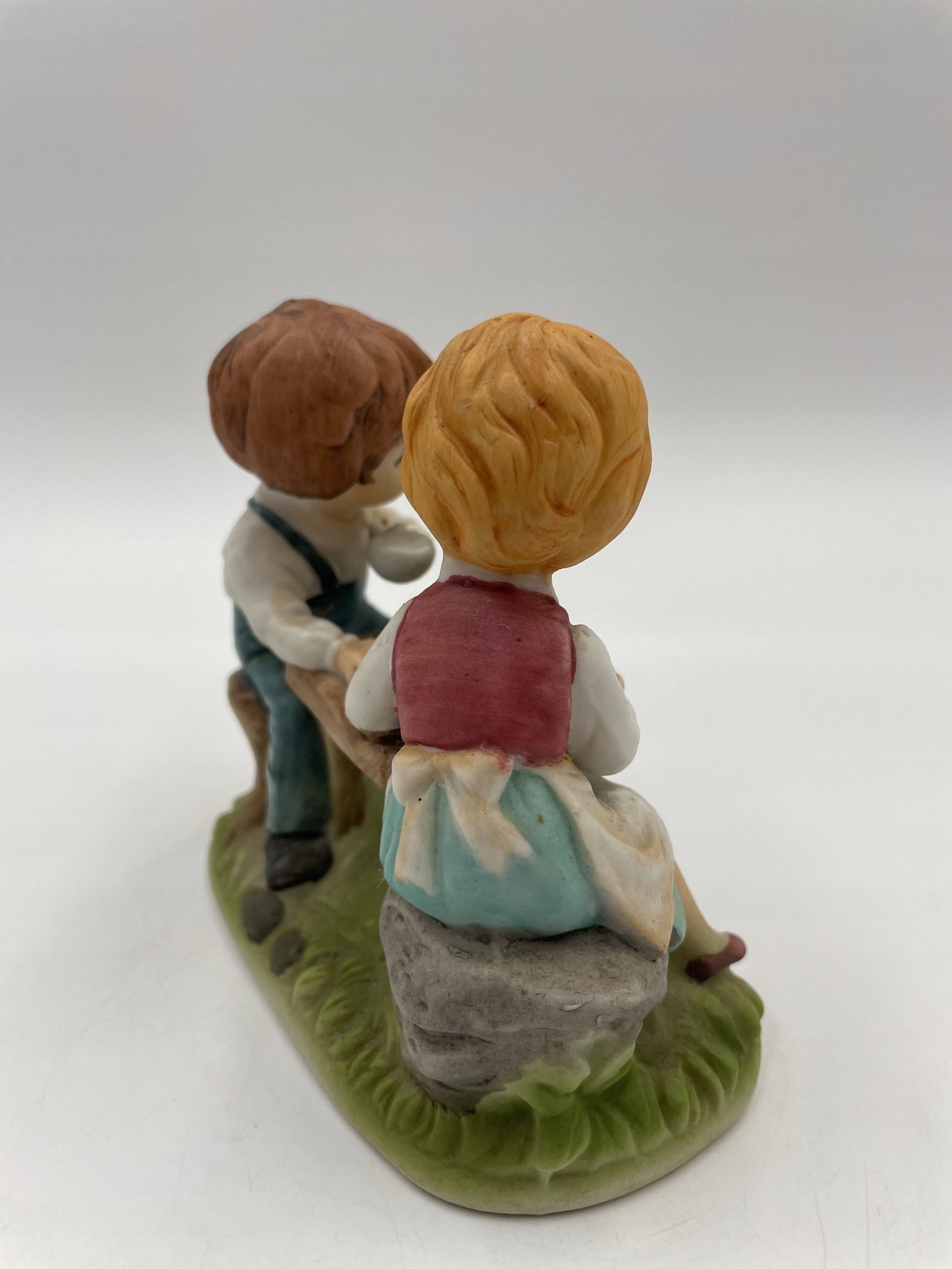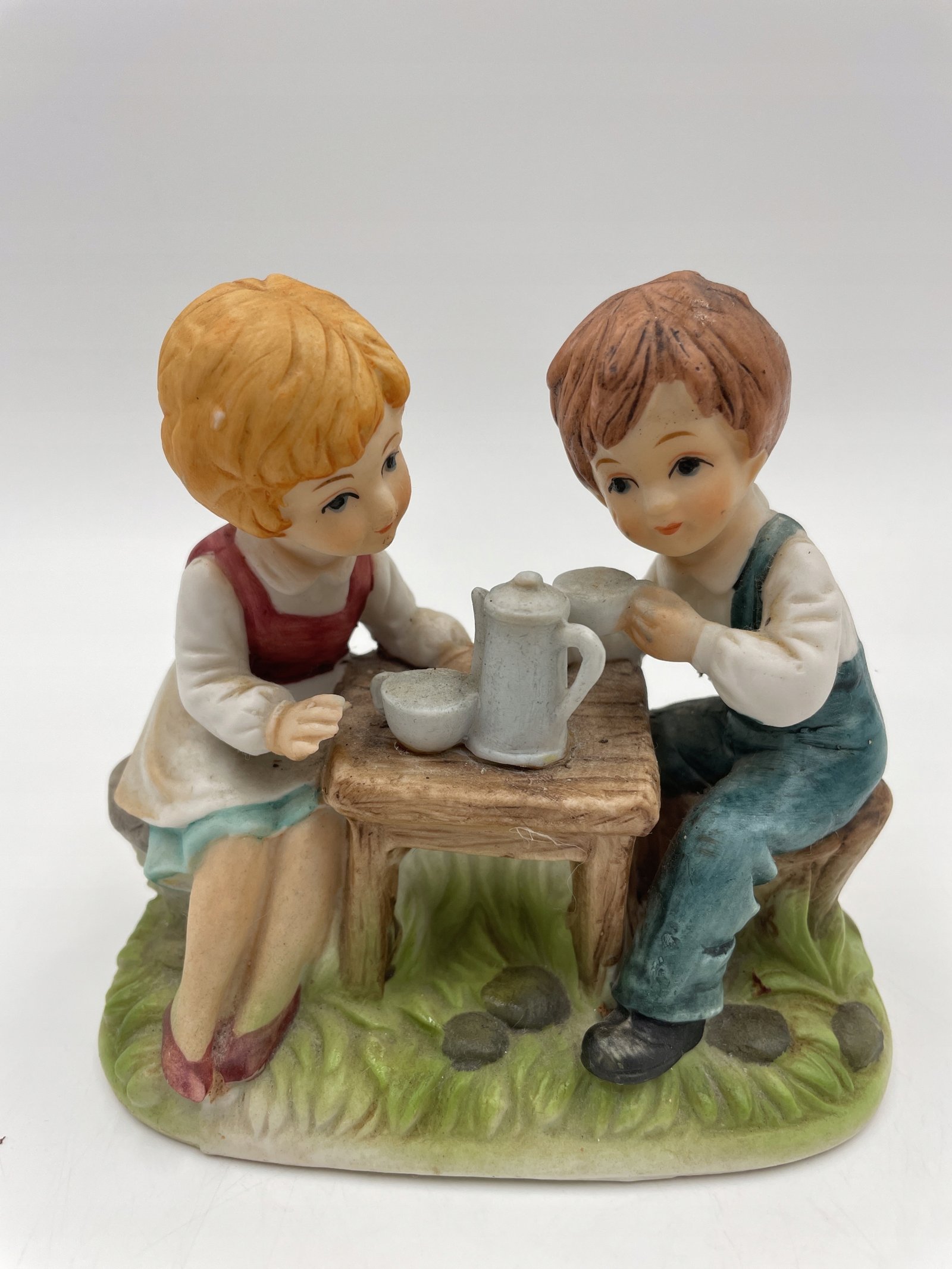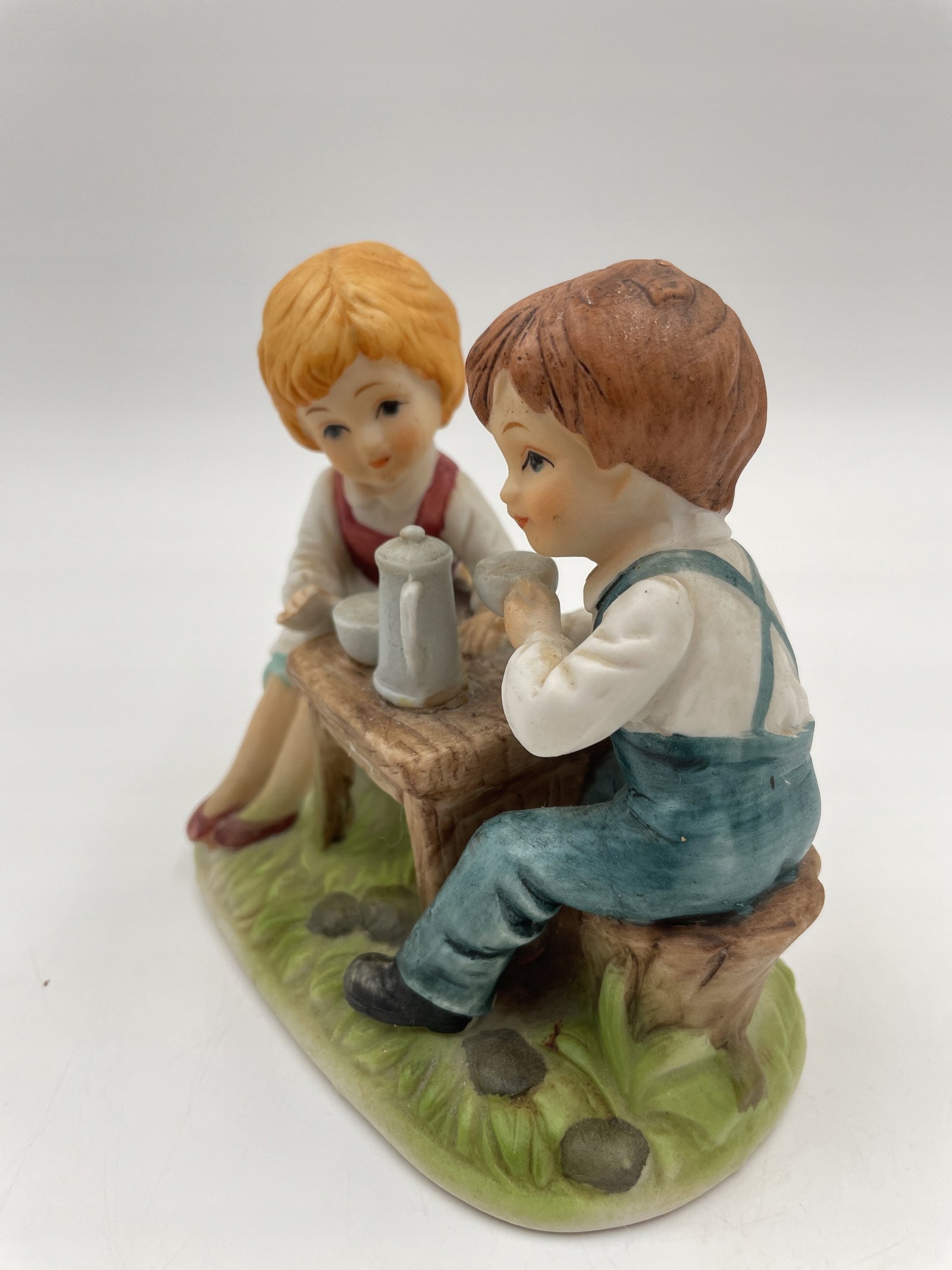 Porcelanowa figurka Dziewczyny i chłopca przy stole 12x12cm