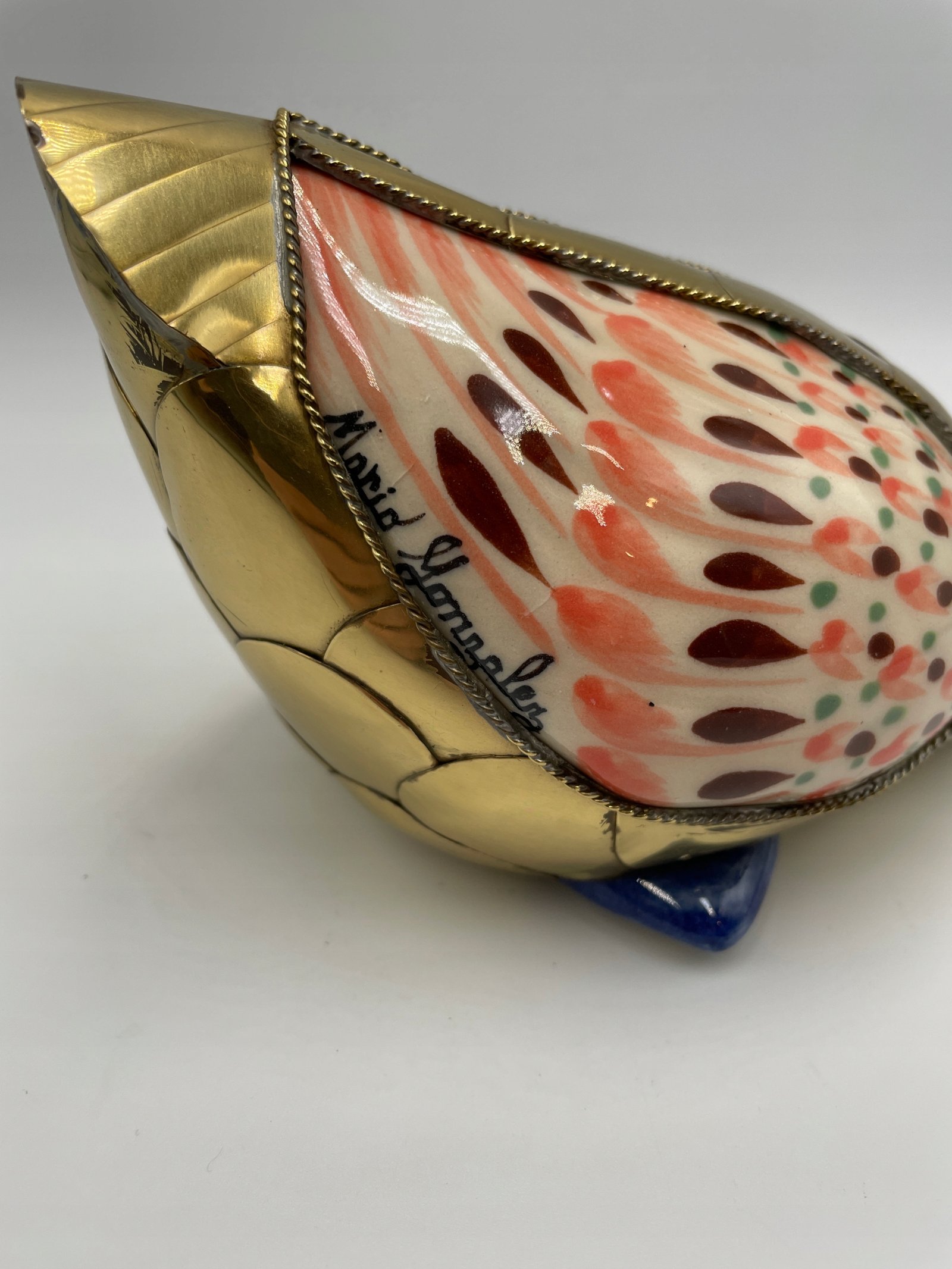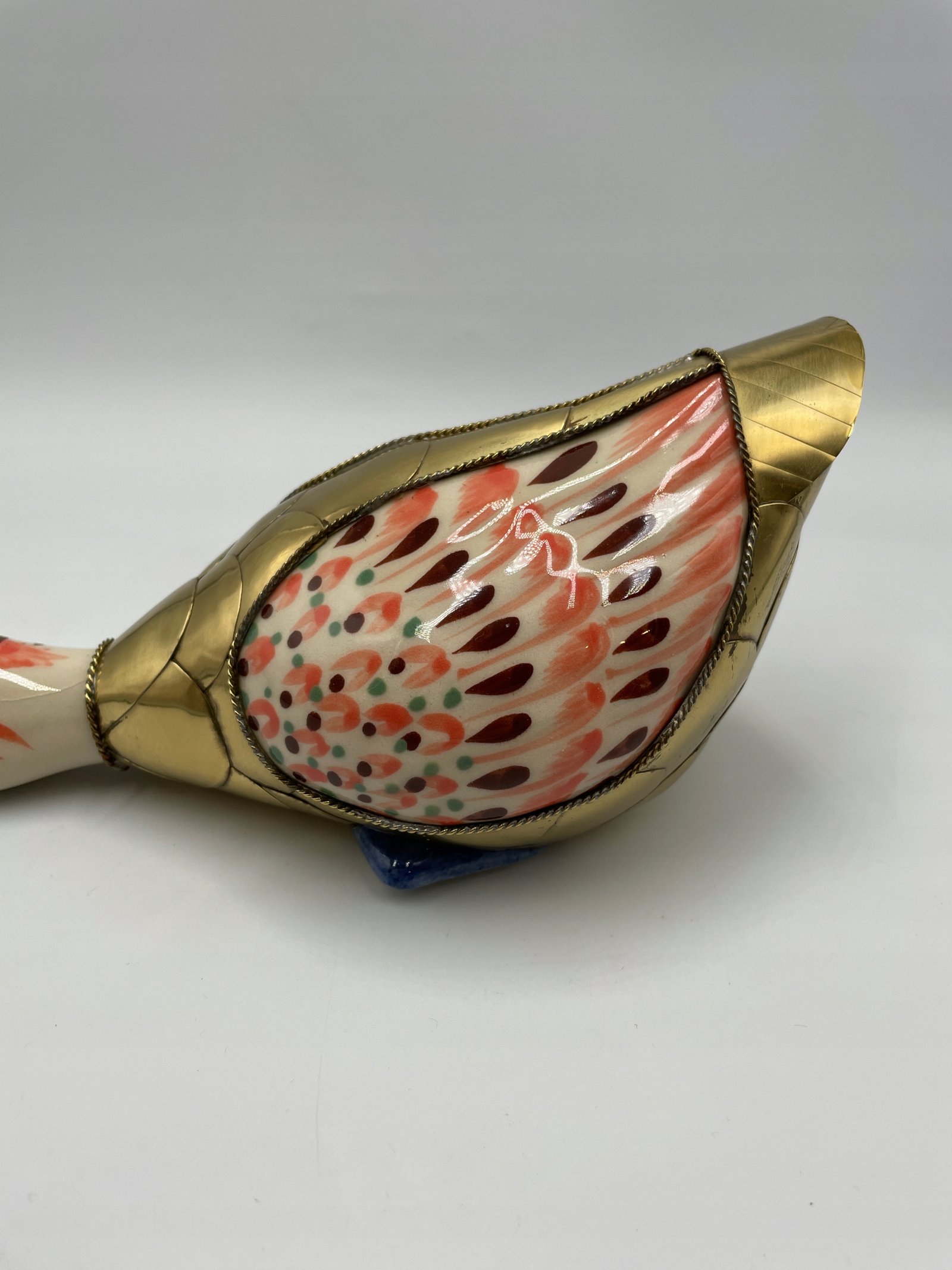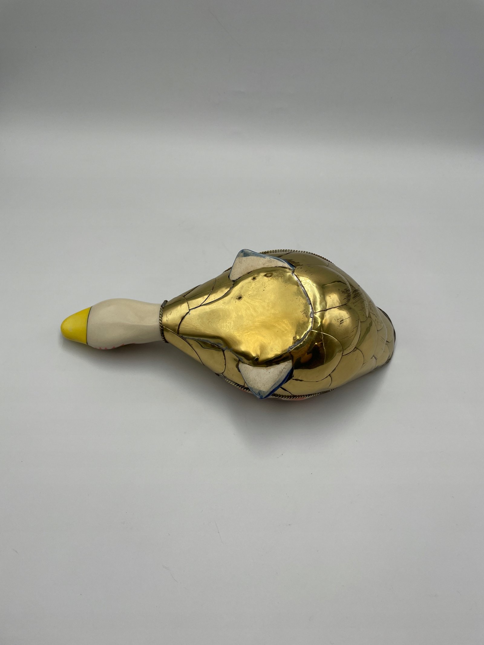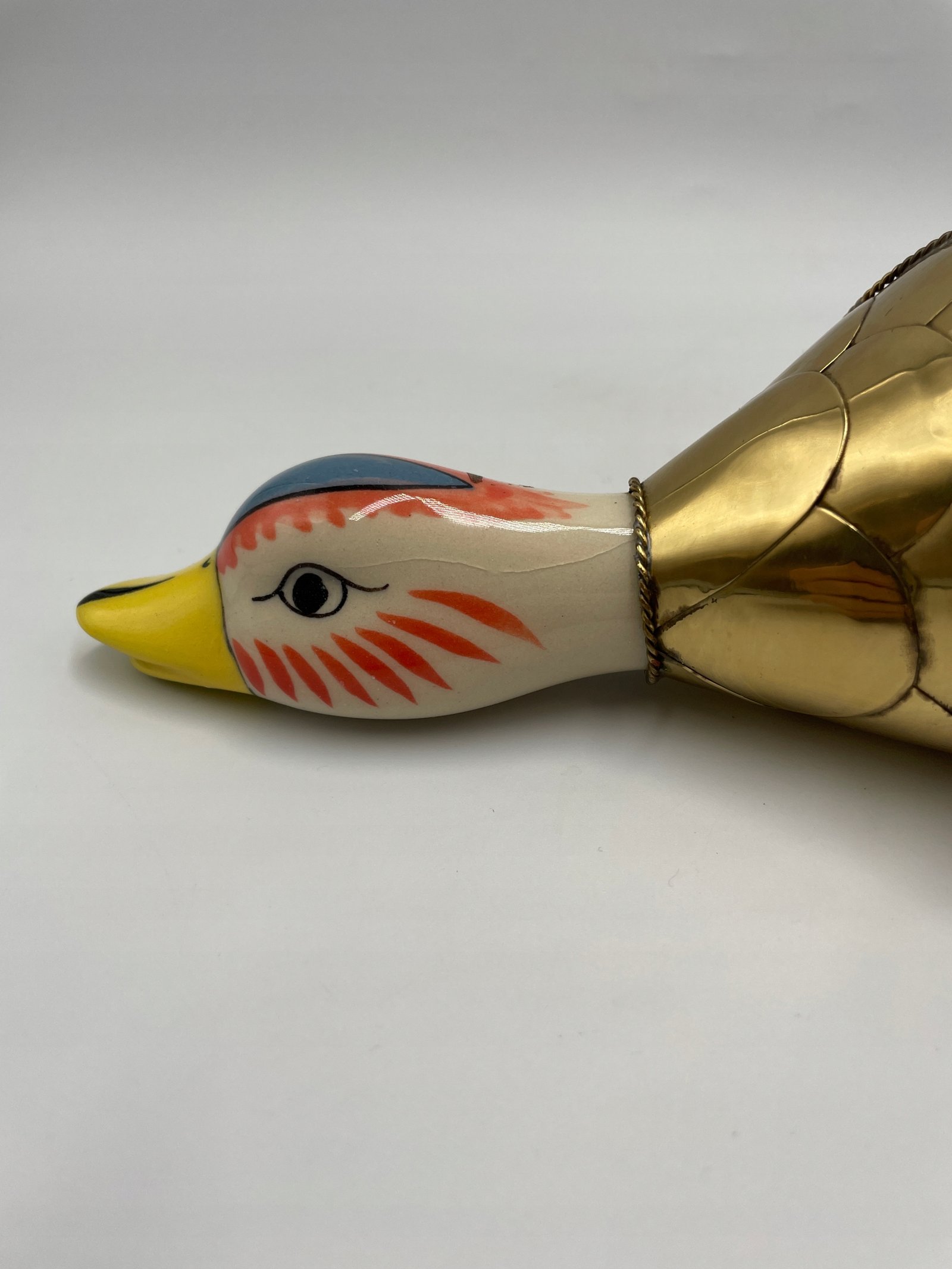 Porcelanowo-metalowa figurka kaczki z podpisem