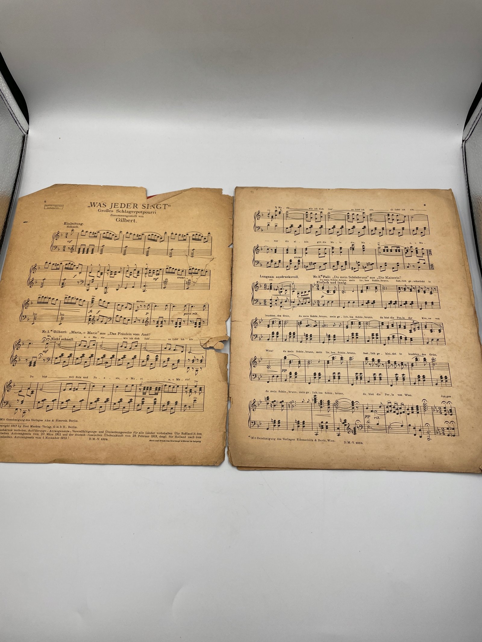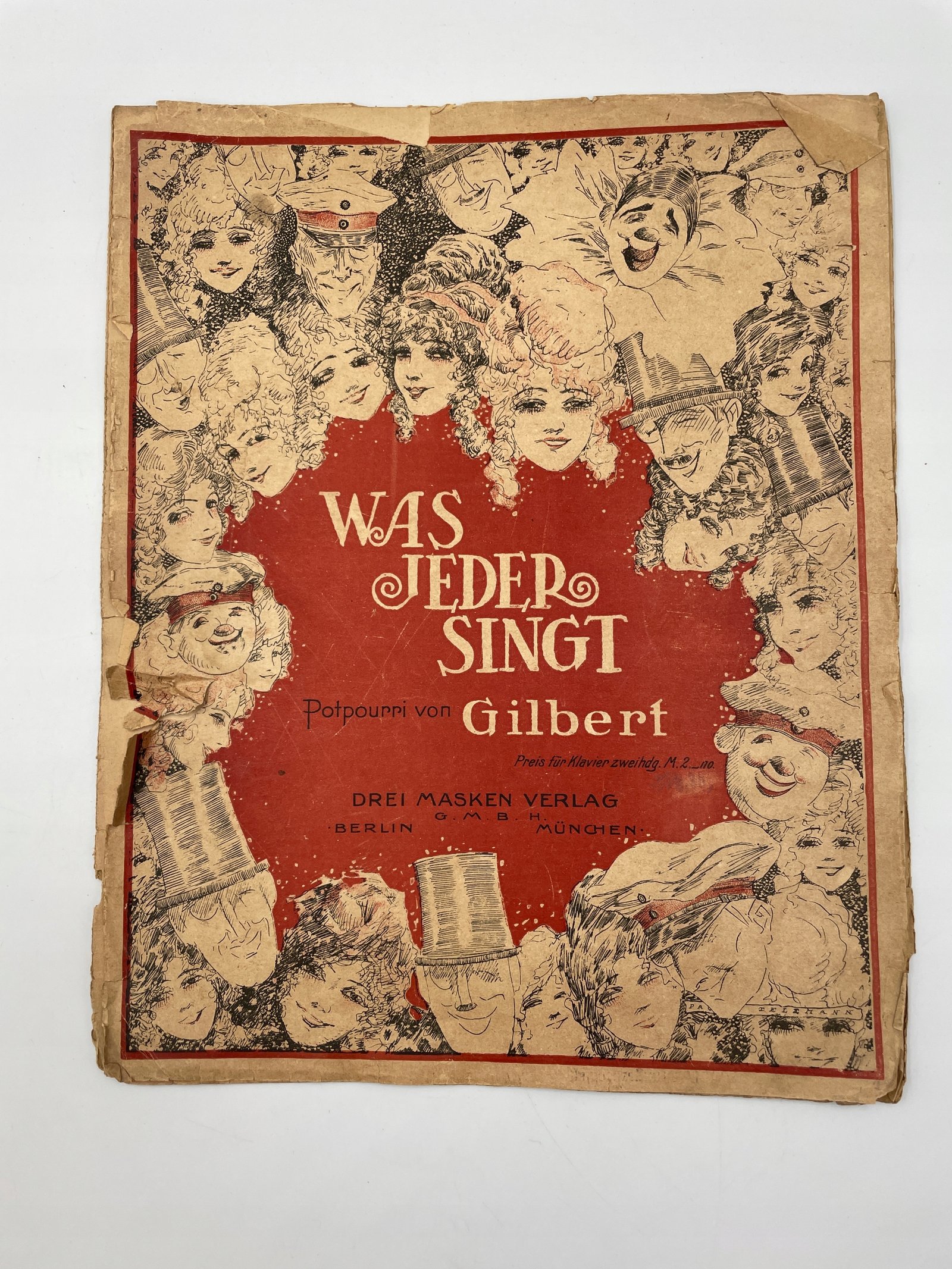 Nuty z muzycznym potpourri zatytułowanym Was jeder singt, skomponowanym przez Jeana Gilberta, wydane przez Drei Masken Verlag w Berlinie i Monachium. Okładka utrzymana w stylu karnawałowym, przedstawiająca liczne twarze w teatralnych kostiumach. Wewnątrz znajdują się nuty z tekstem do śpiewu z akompaniamentem fortepianu.