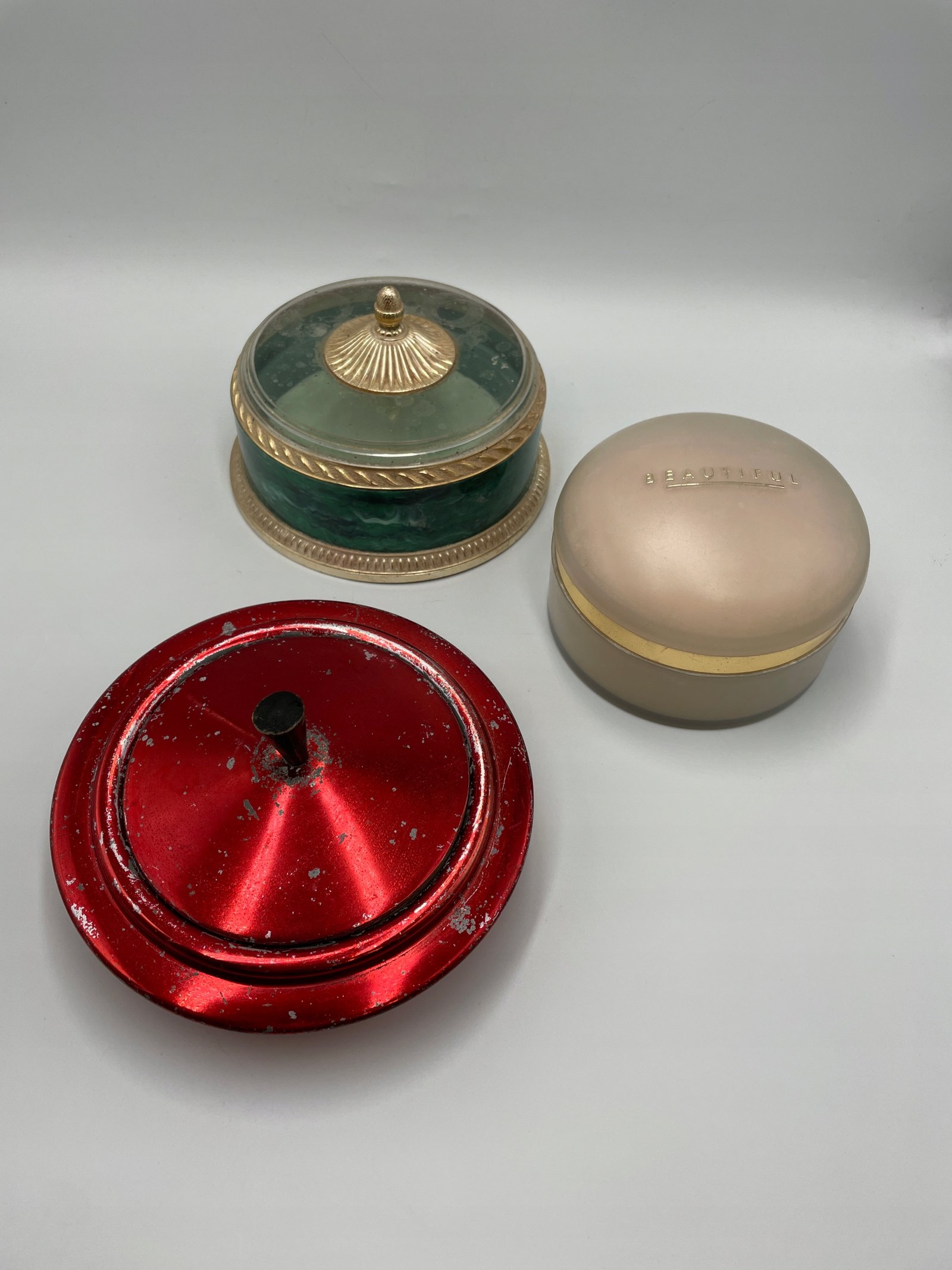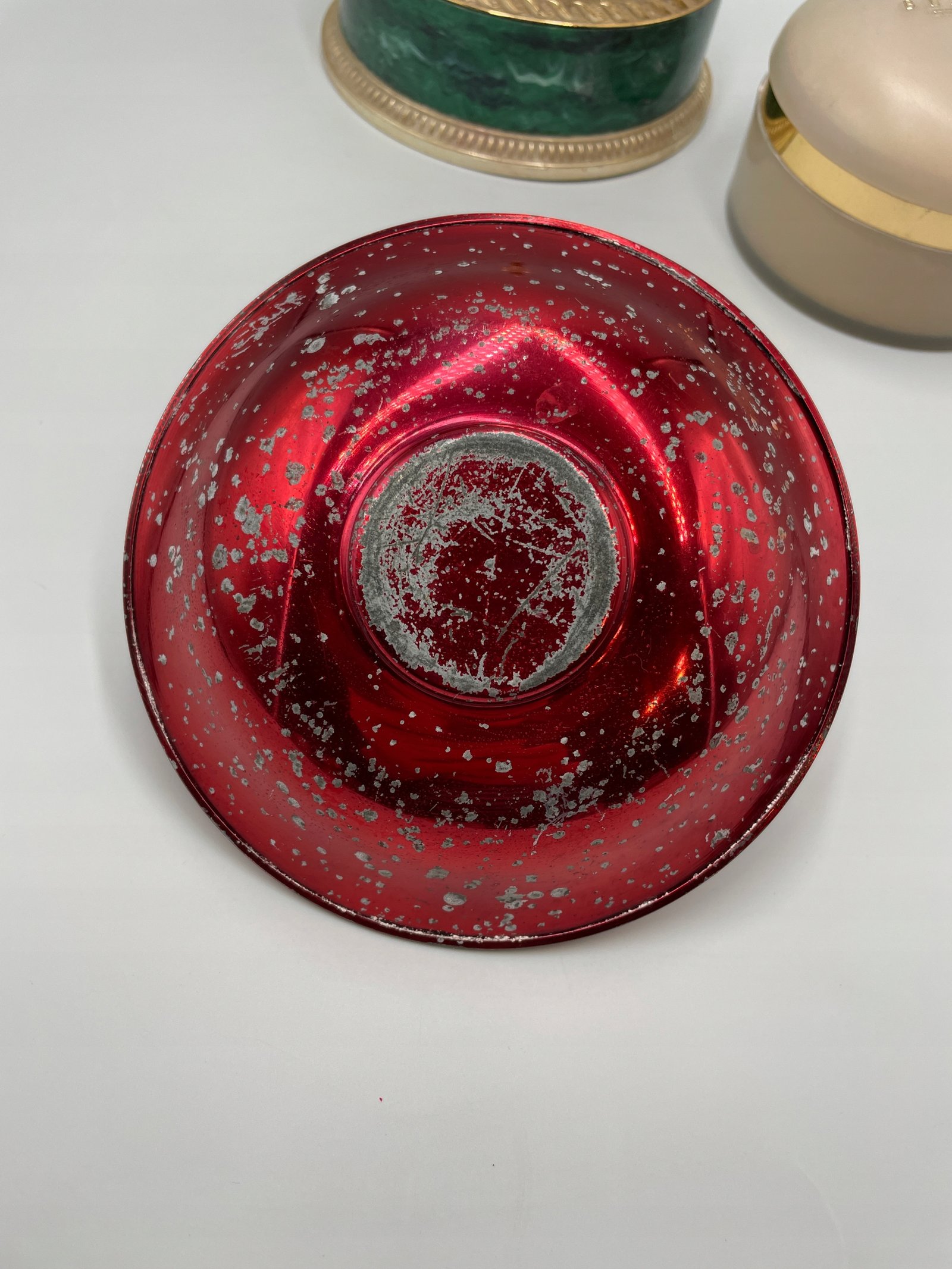 Vintage przedmioty mogą mieć drobne rysy, odpryski, niektóre zabrudzenia, ślady użytkowania i zmiany tekstury spowodowane starzeniem się. Ponieważ stopień zużycia może różnić się w zależności od indywidualnego postrzegania, prosimy o zrozumienie i akceptację cech starych przedmiotów. Będziemy zadowoleni, jeśli będziesz mógł/mogła cieszyć się niepowtarzalnym urokiem starych, dobrych przedmiotów.