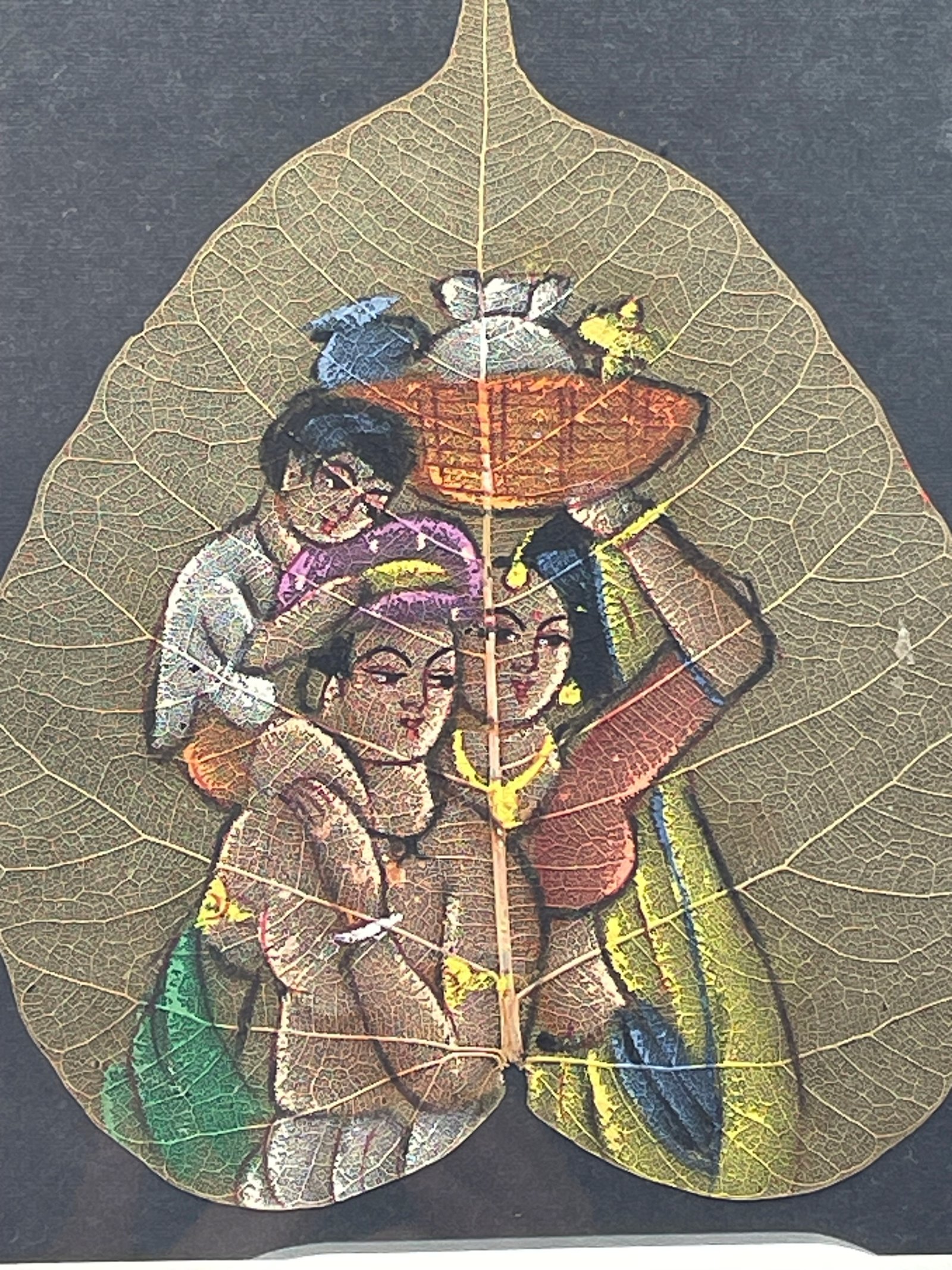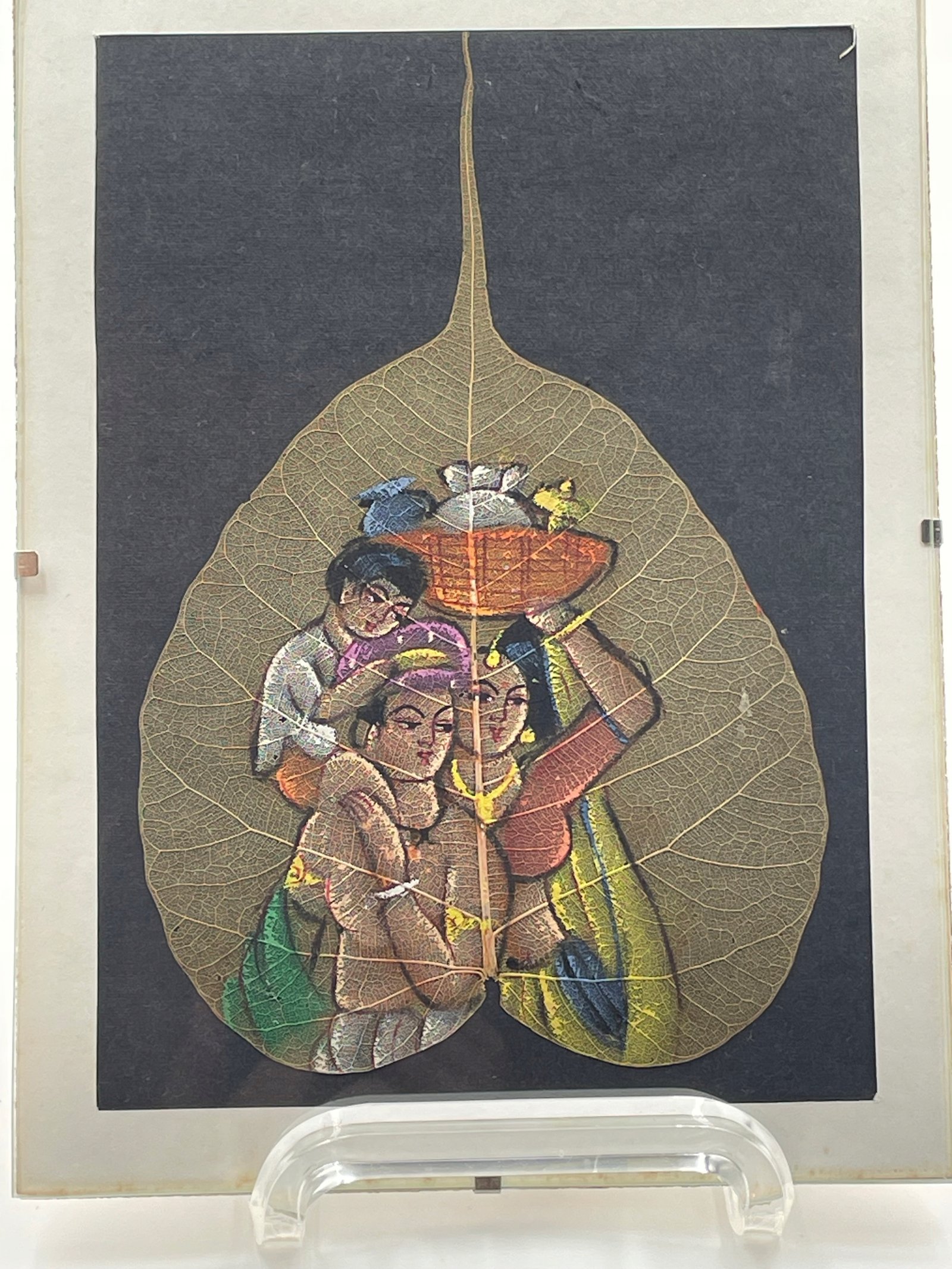 Ręcznie robiony obraz w ramce na liściu tytoniu 24×18