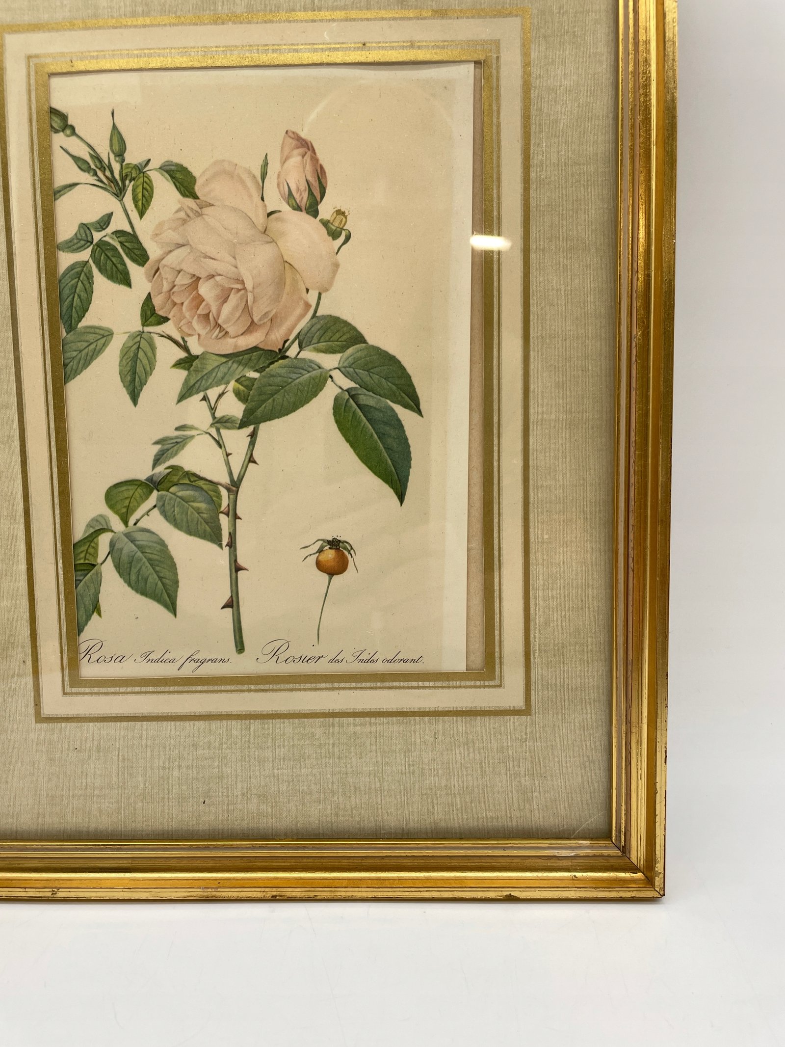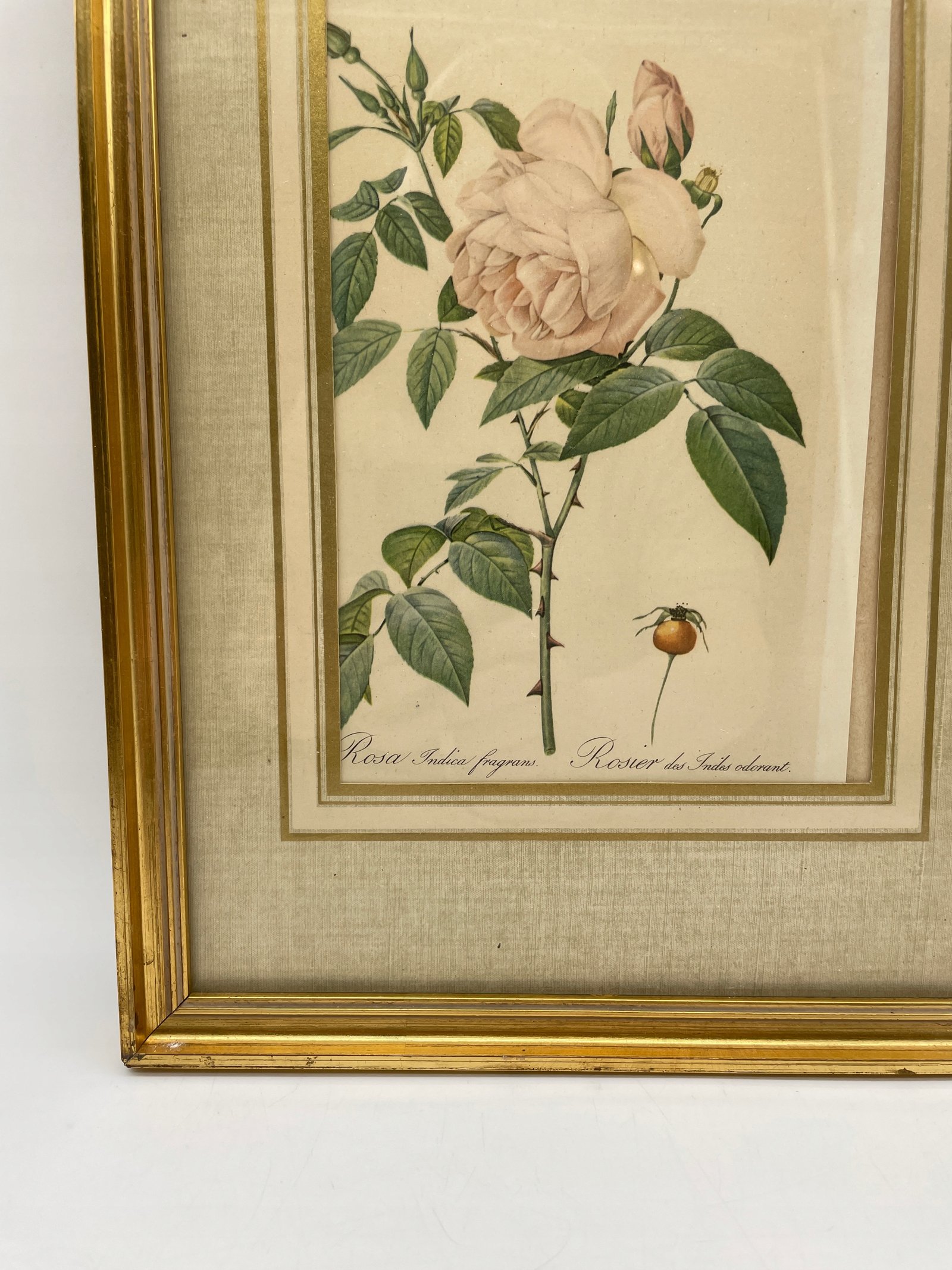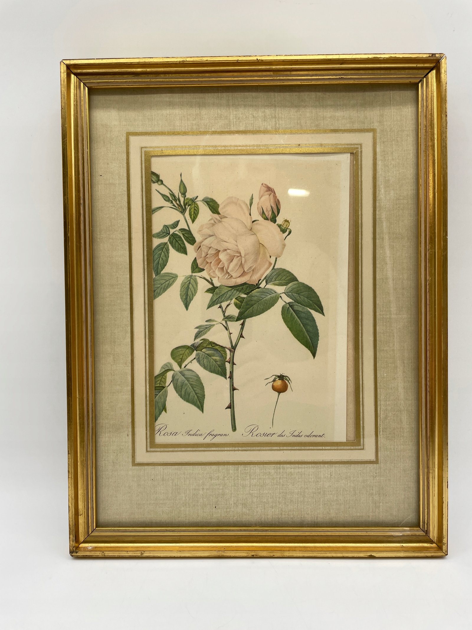 Reprodukcja Francja lata 1950 róża Indica fragrans w pozłacanej ramie