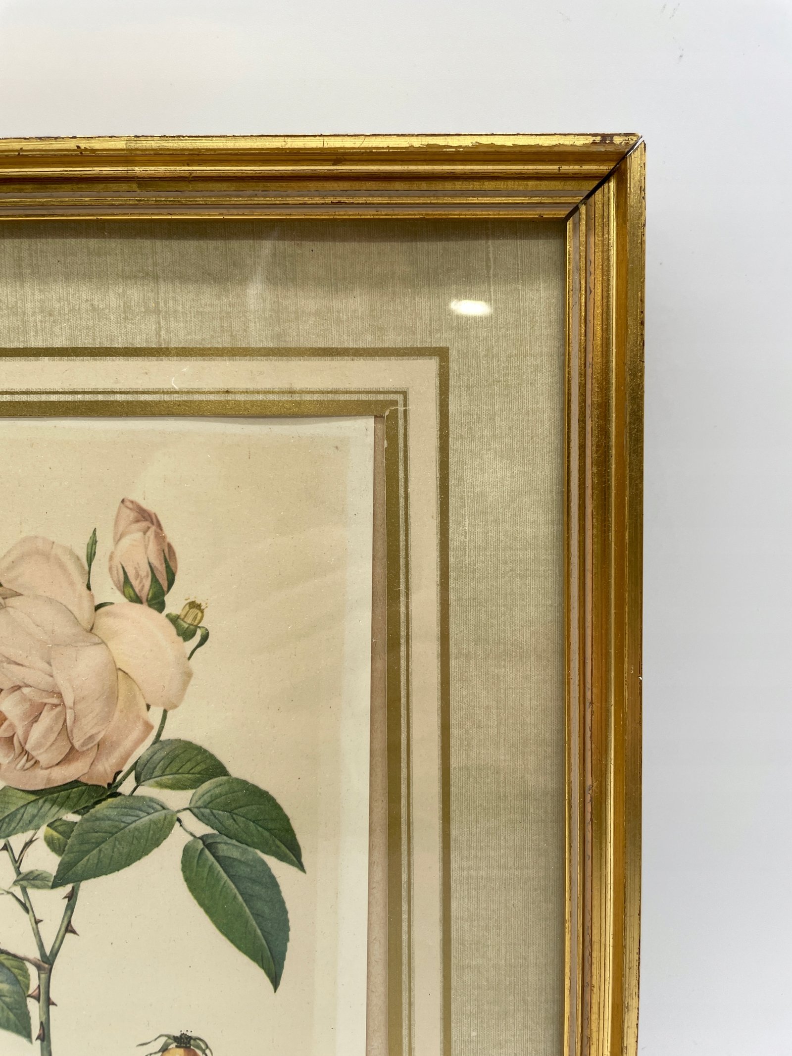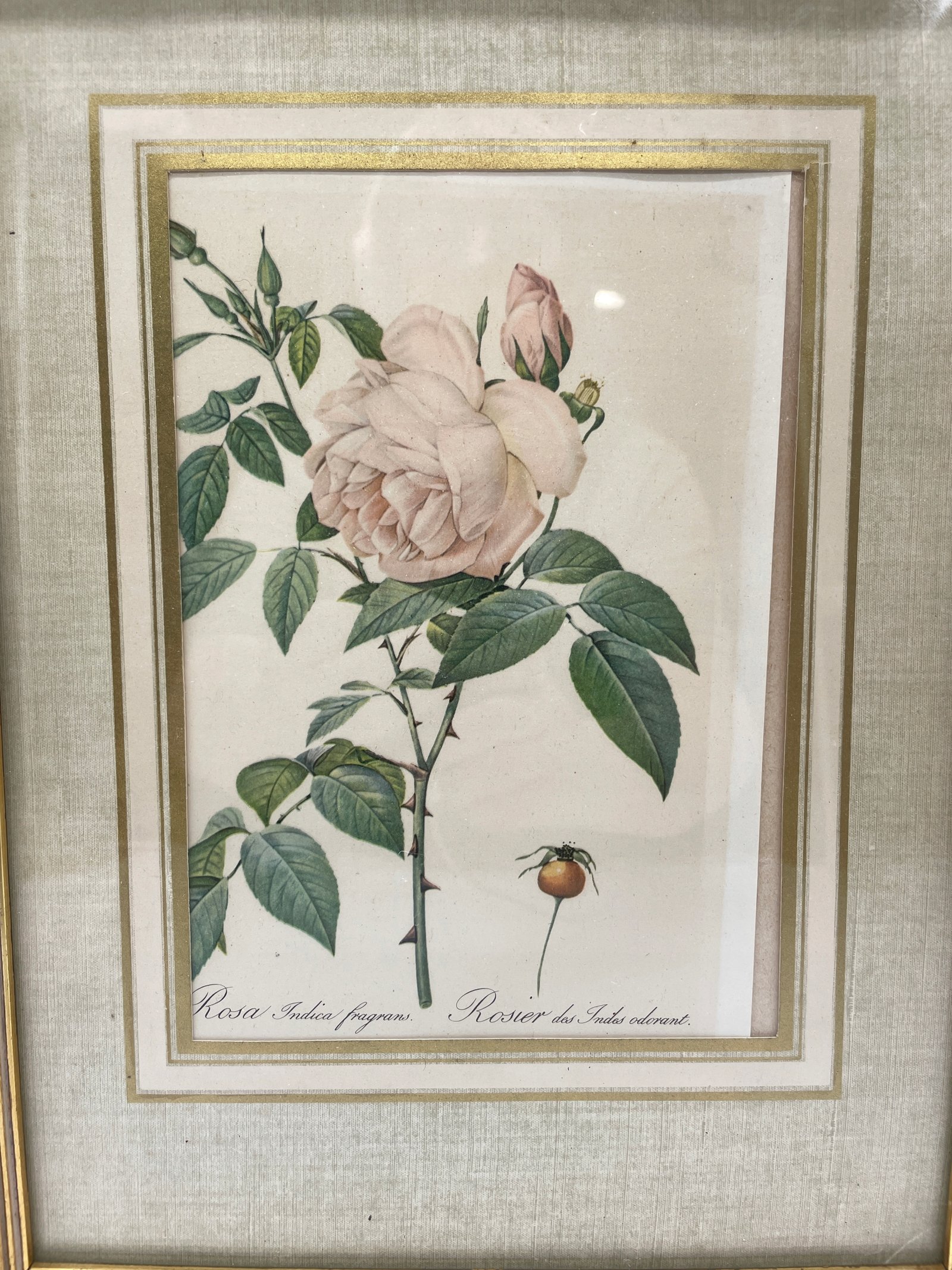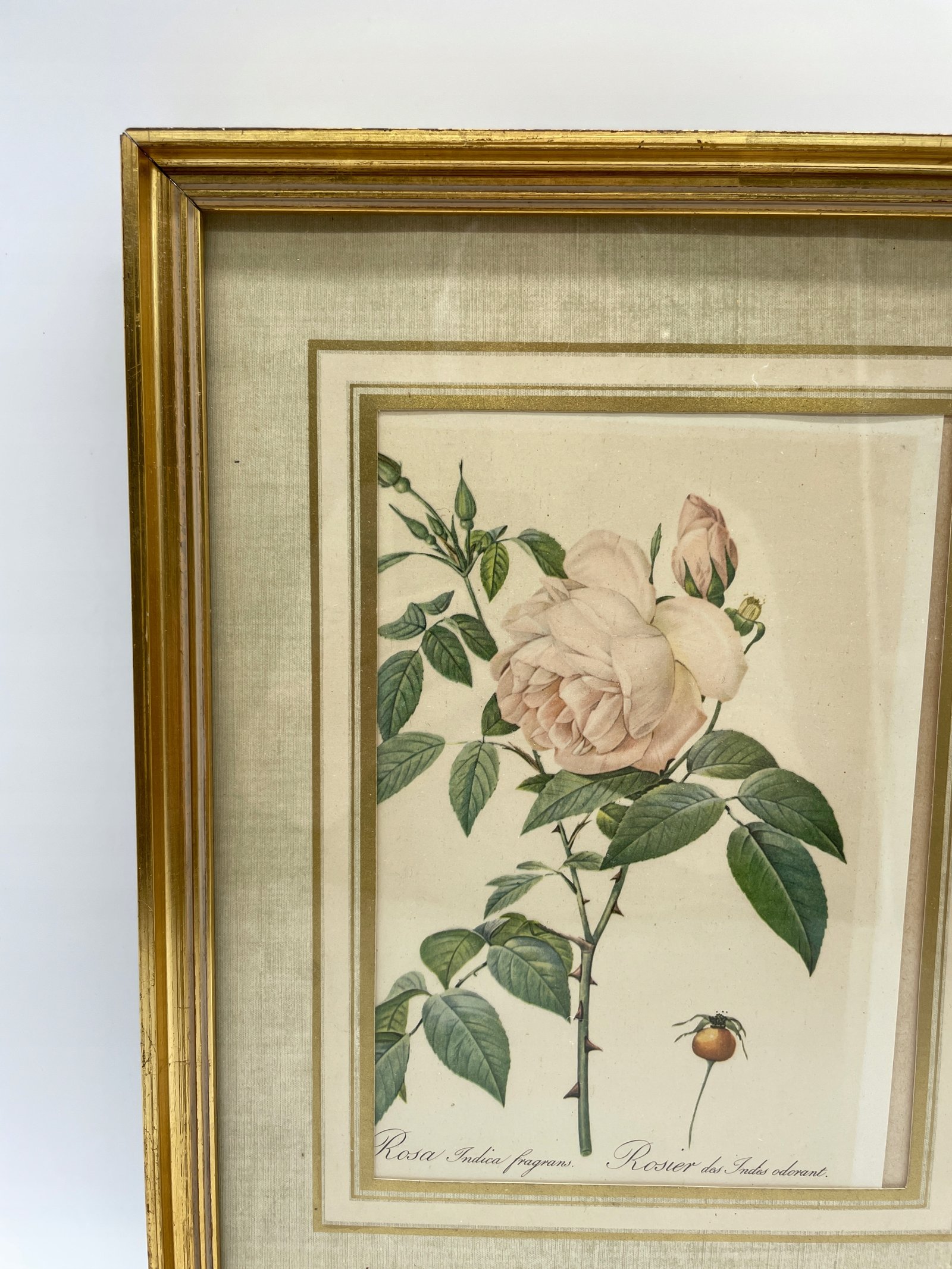Reprodukcja Francja lata 1950 róża Indica fragrans w pozłacanej ramie