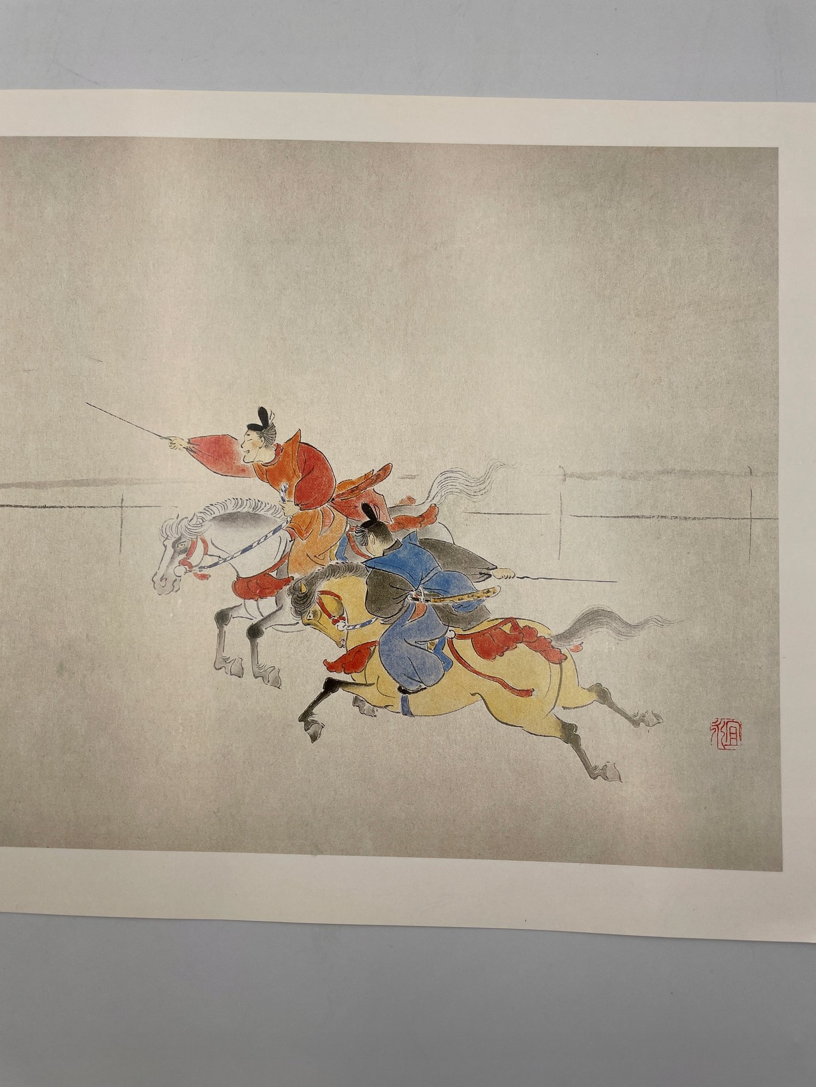 Reprodukcja japońskiej akwareli z samurajami na koniach №34