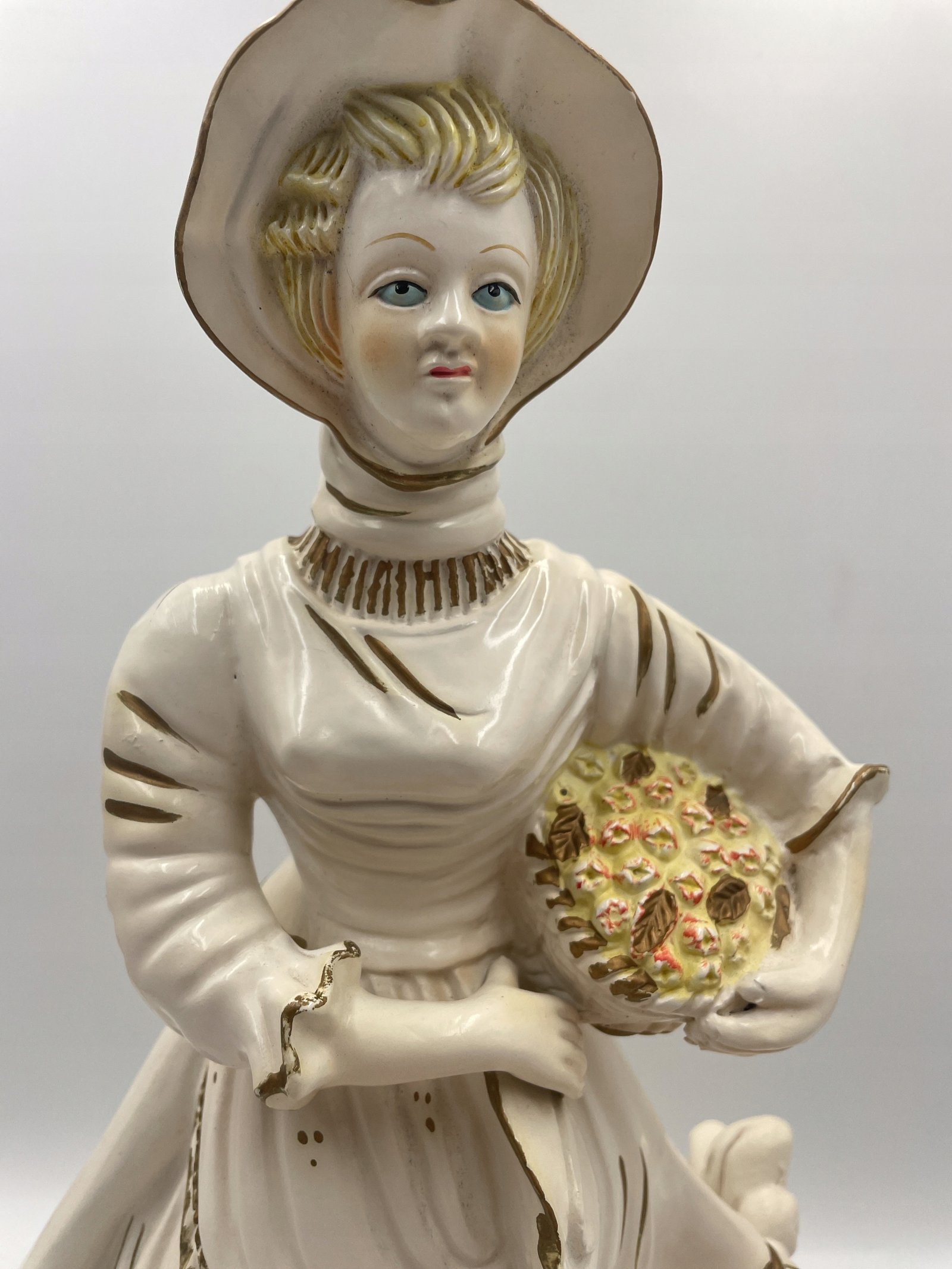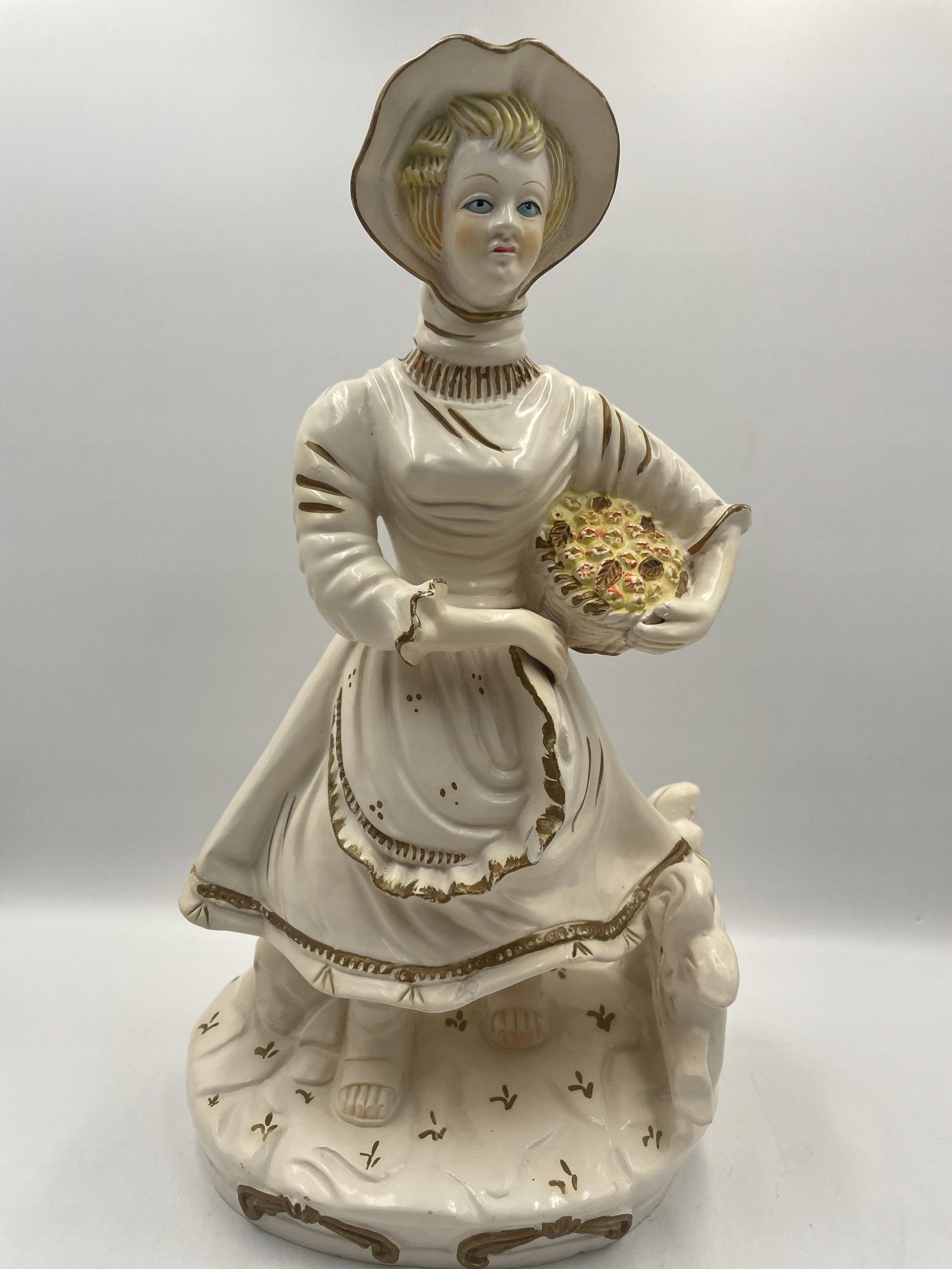 Rzadka piękna figurka dziewczyny z koszem