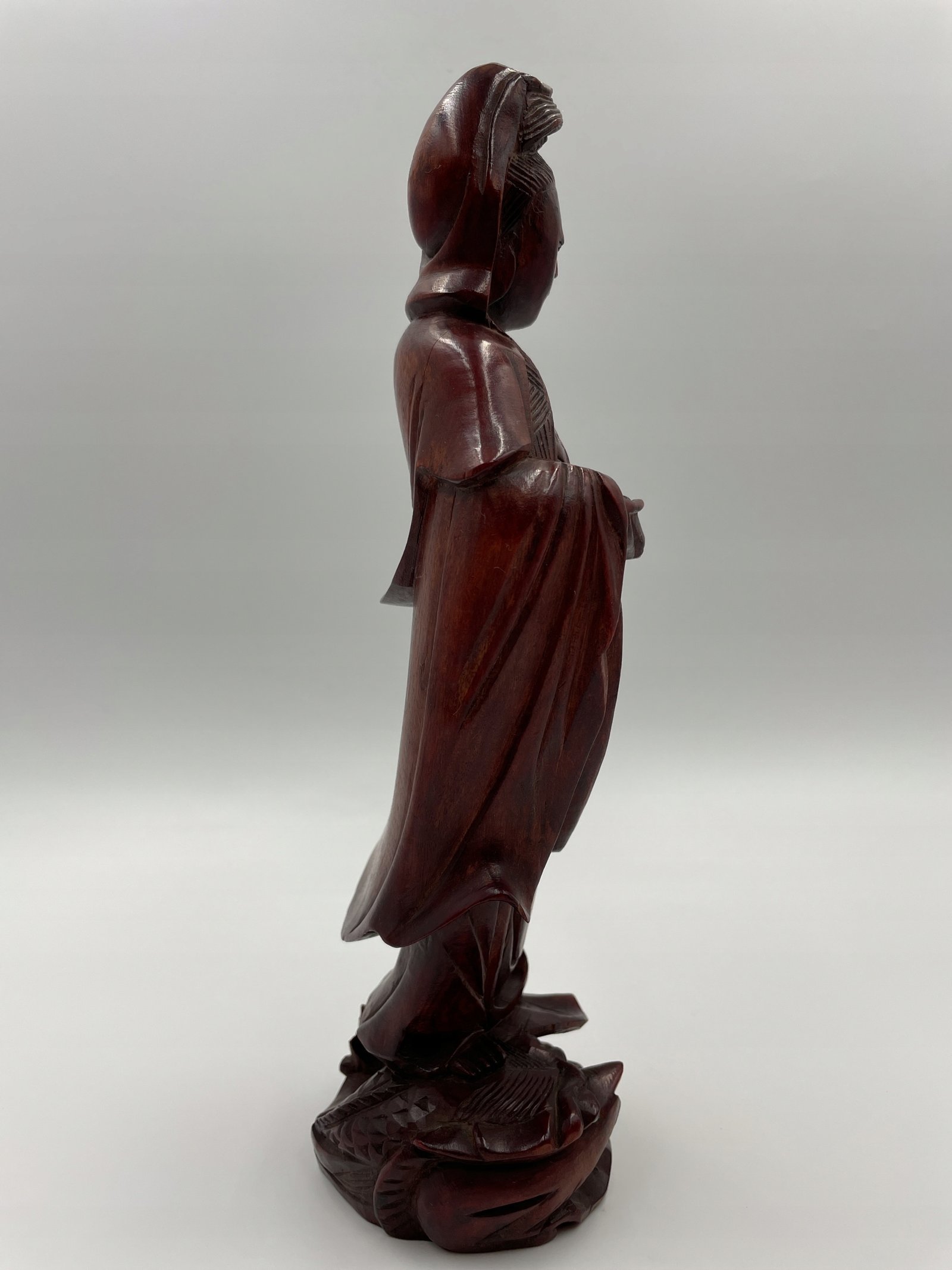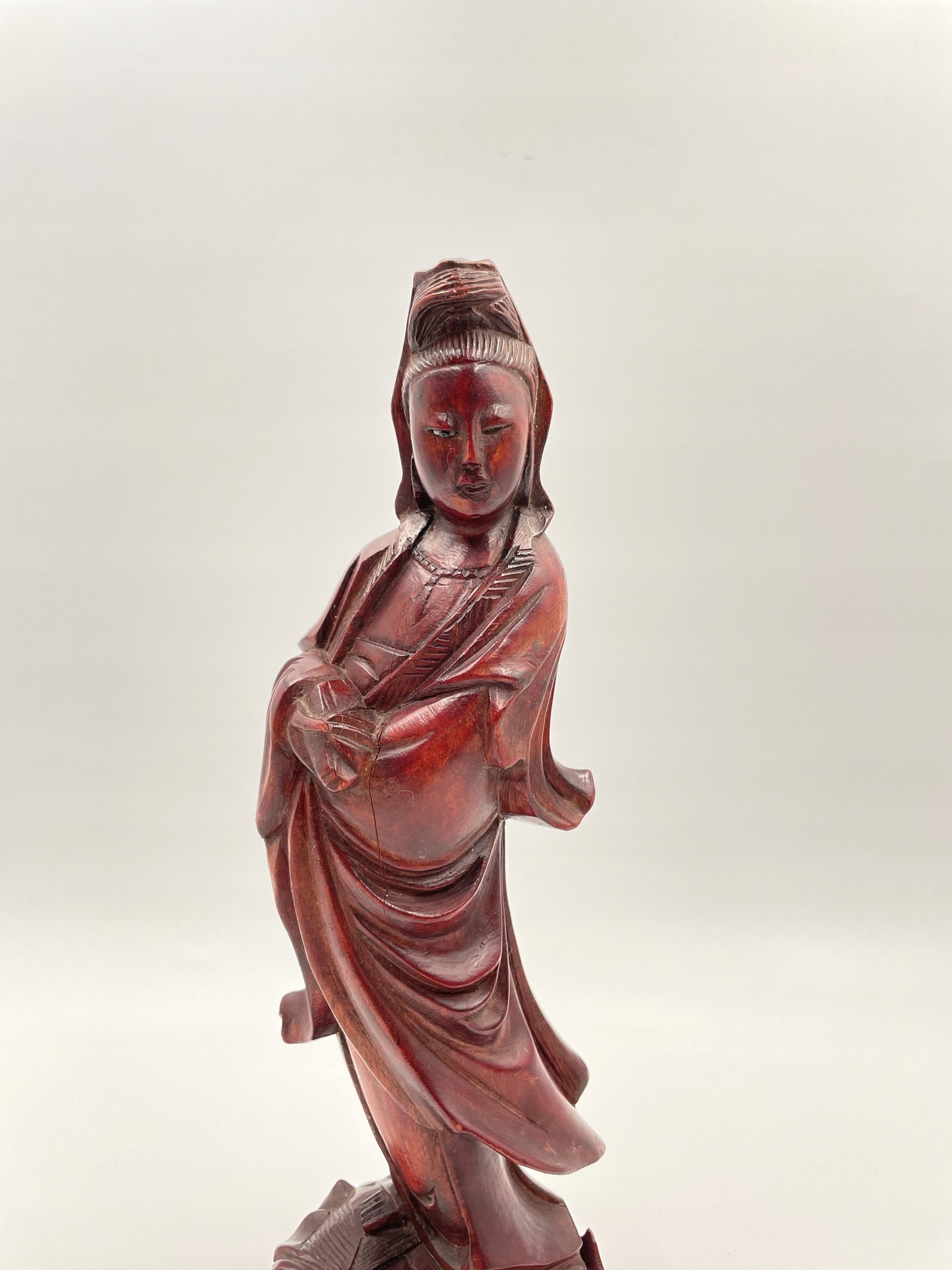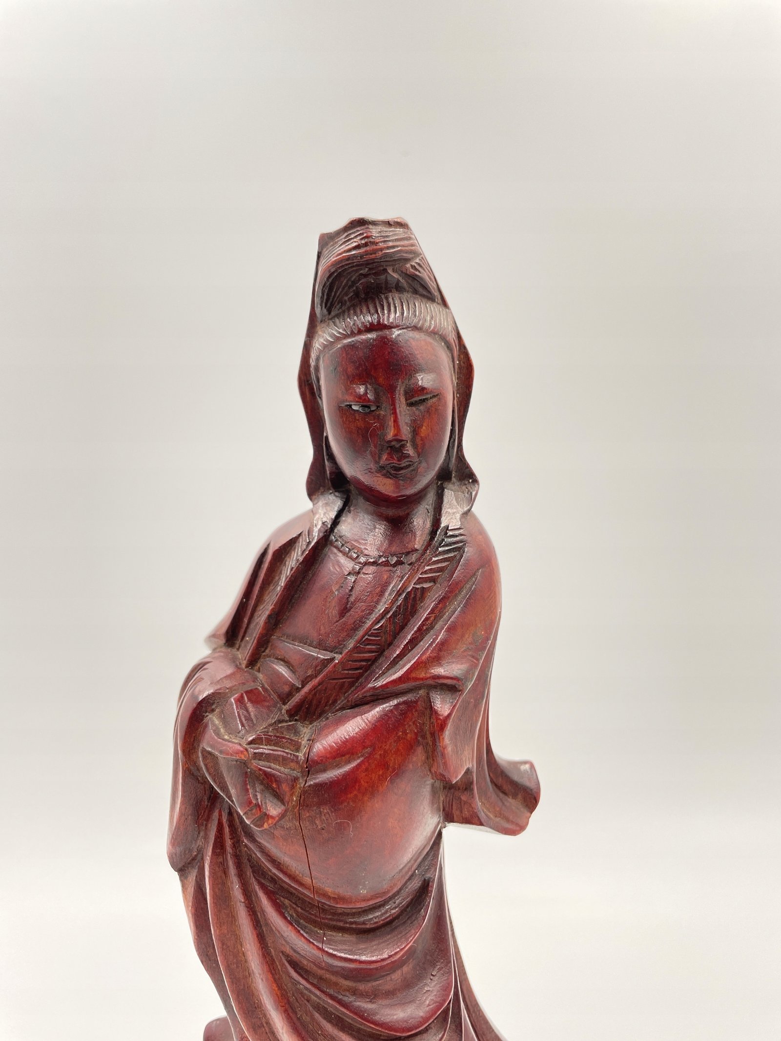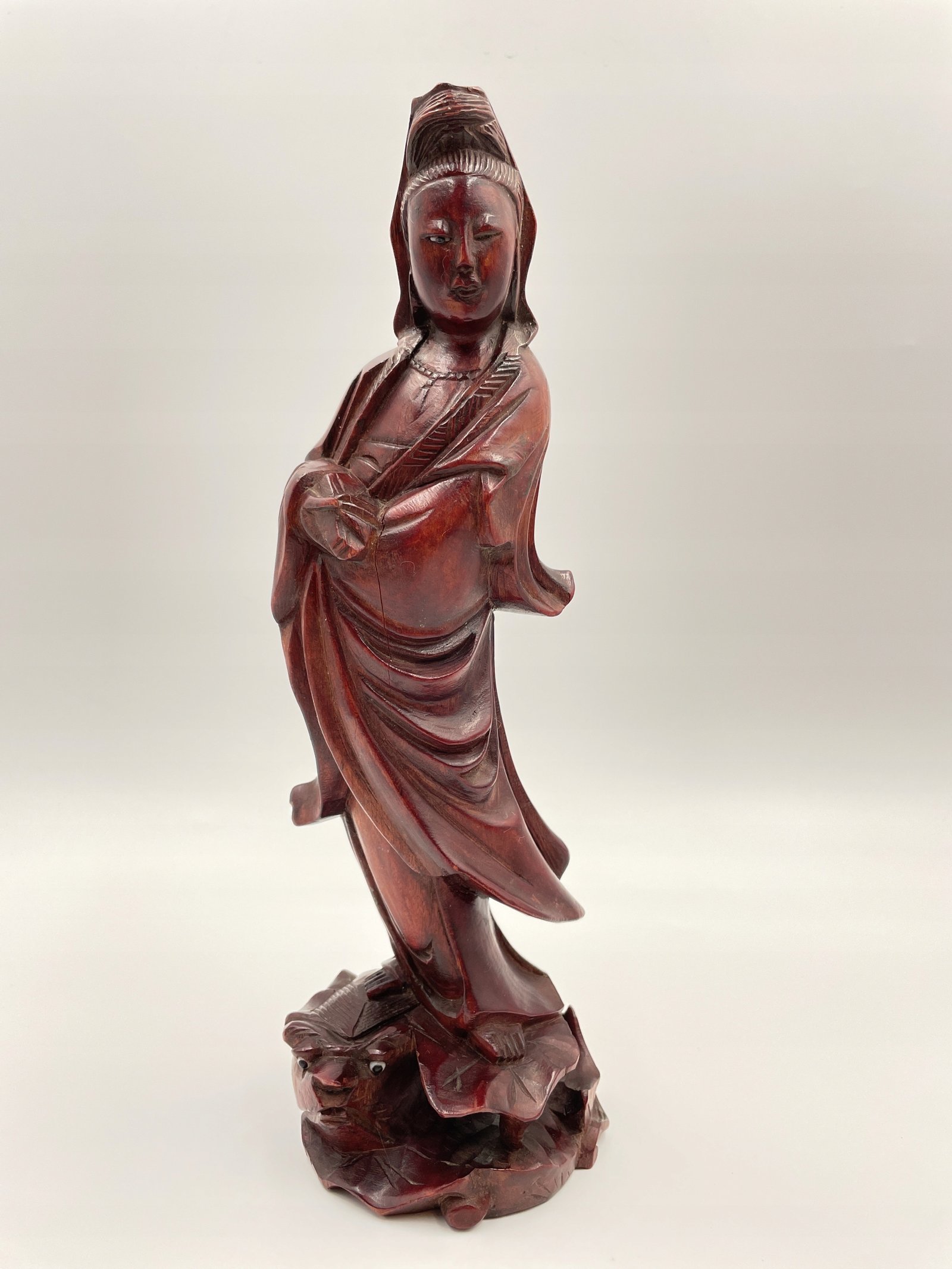 Antyczna rzeźba „Guanyin”. Rzeźbienie w drewnie. Chiny, XX wiek, 26cm