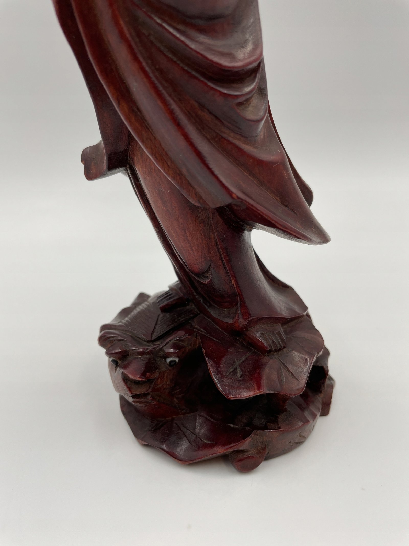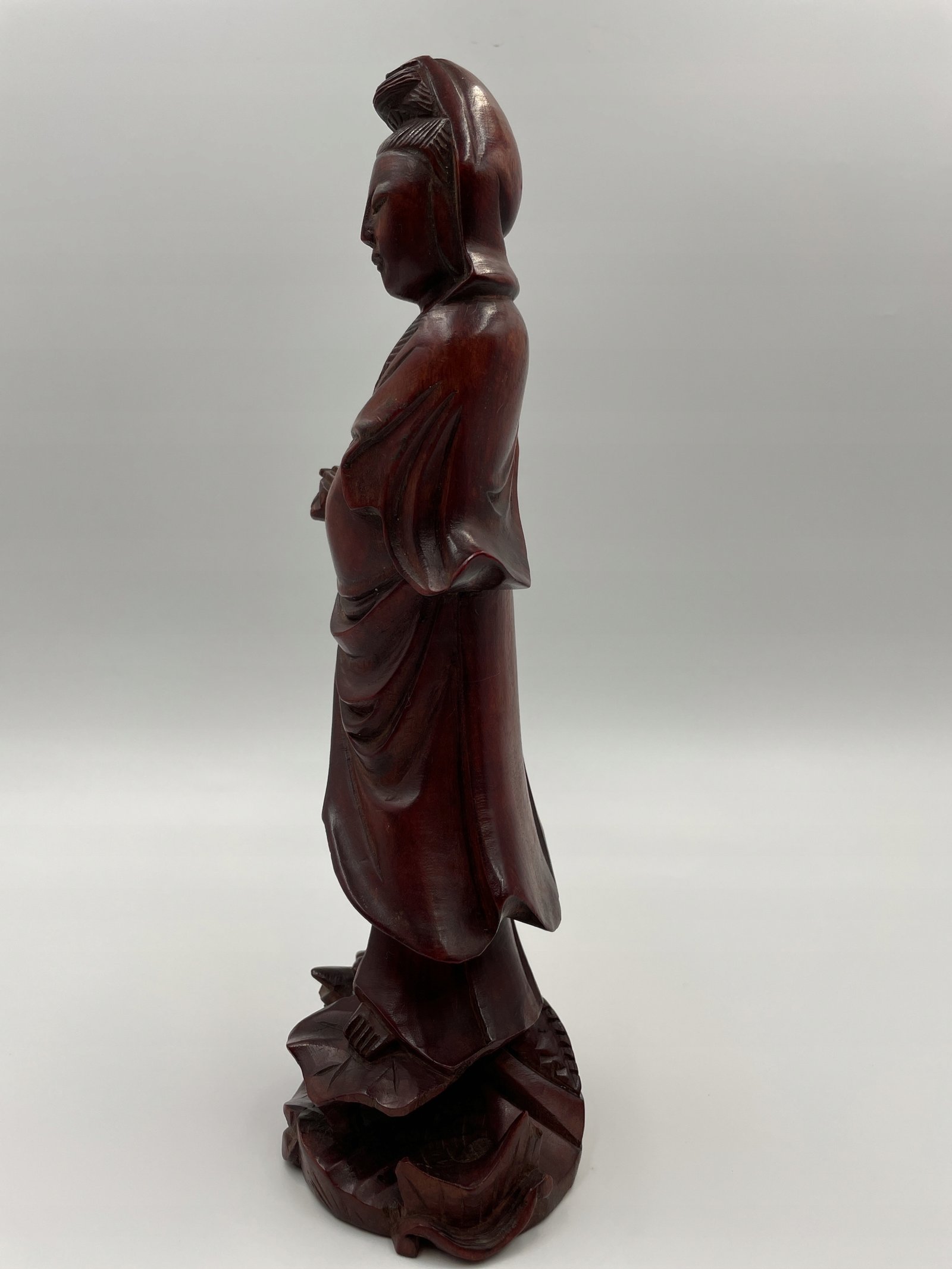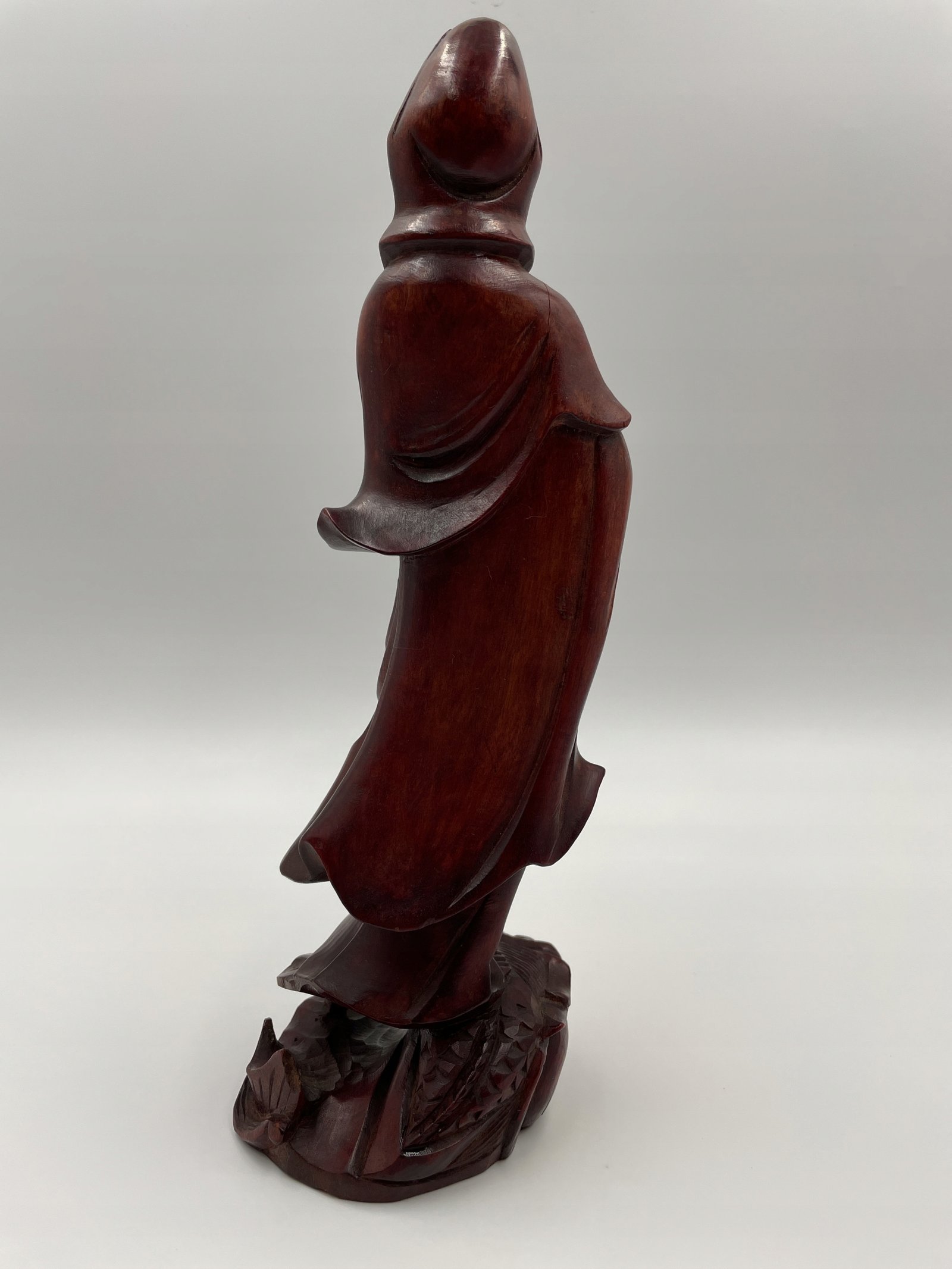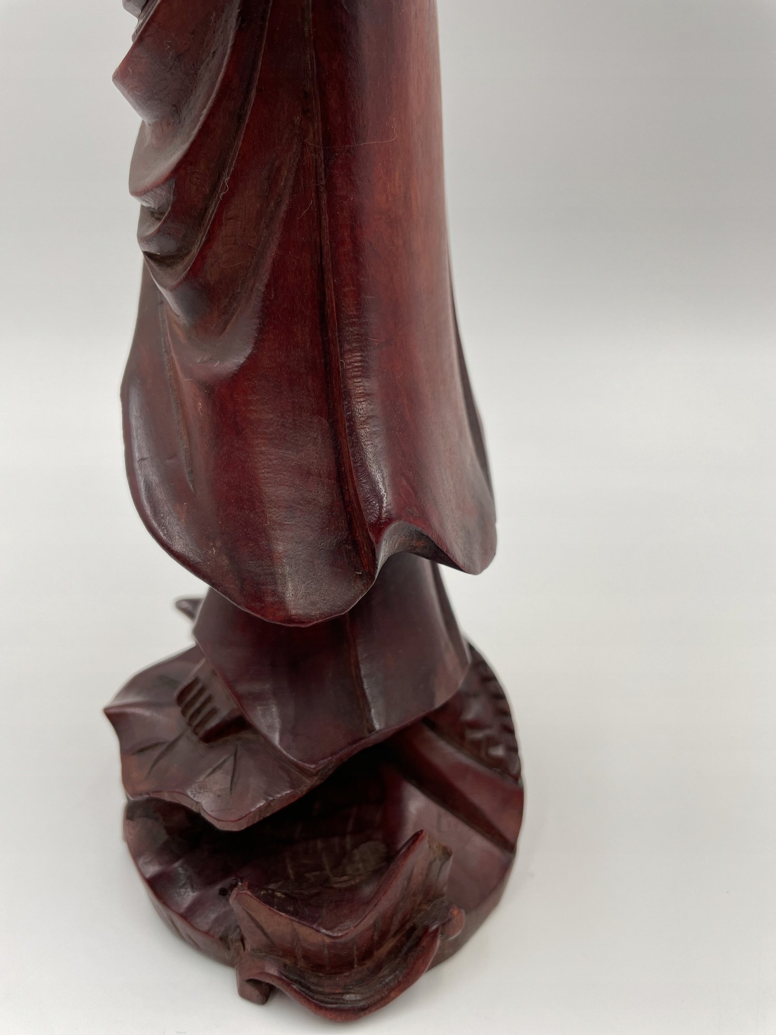 Antyczna rzeźba „Guanyin”. Rzeźbienie w drewnie. Chiny, XX wiek, 26cm