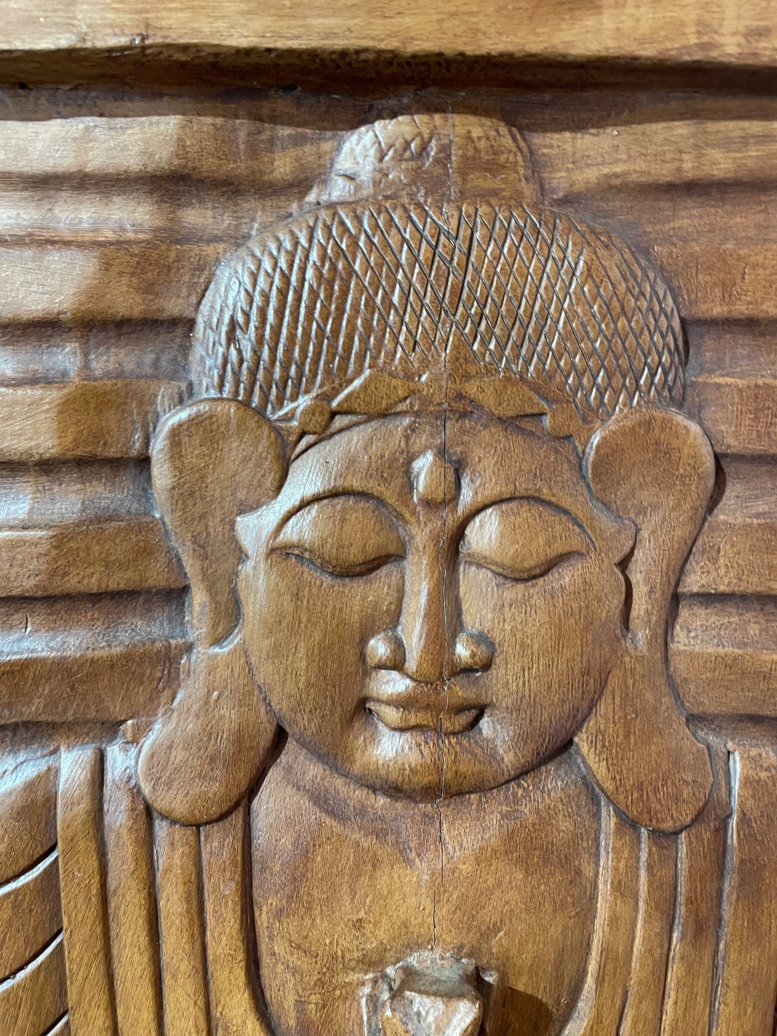 Rzeźbiony w drewnie panel Buddy