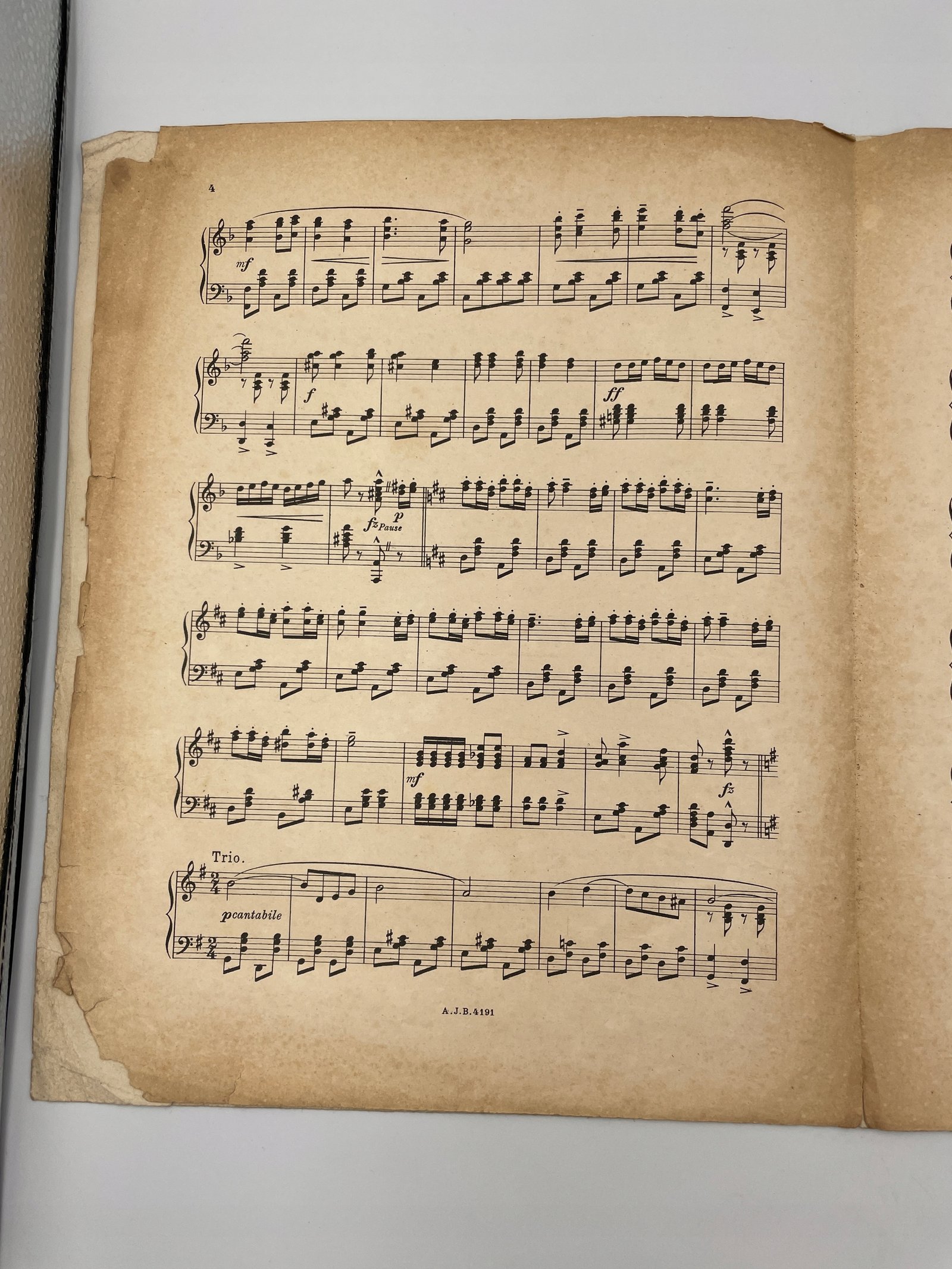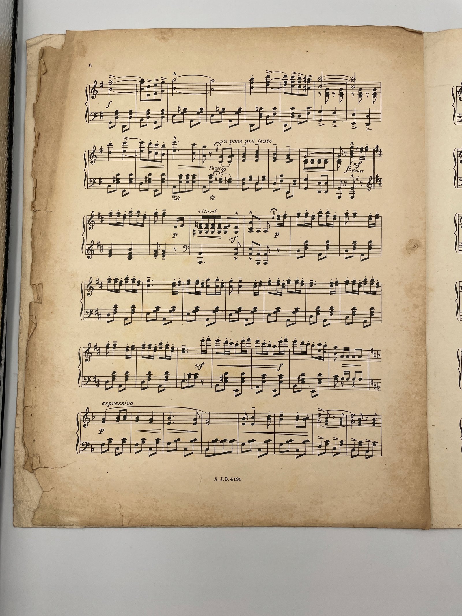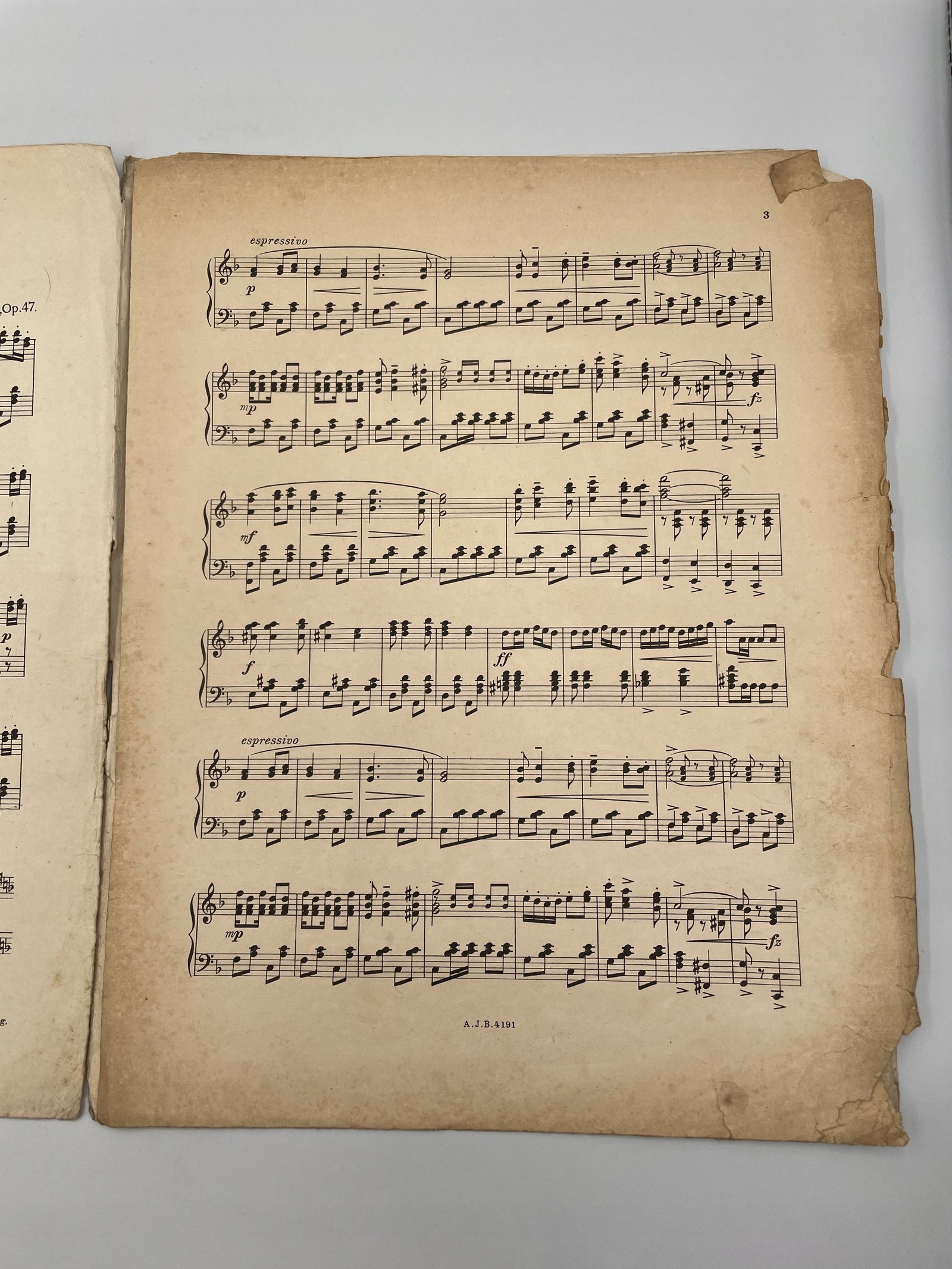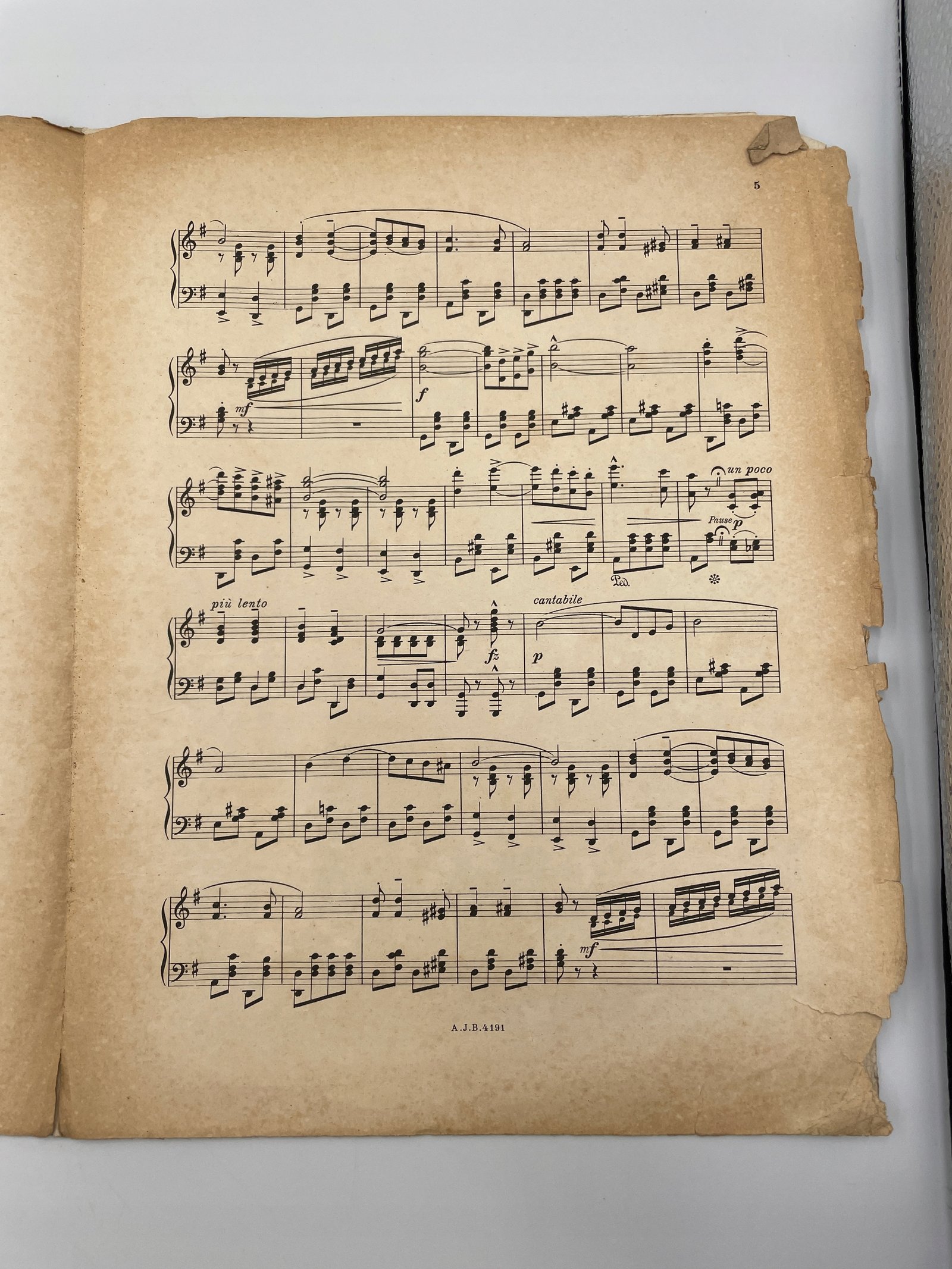 Oryginalne nuty „Sefira. Intermezzo” autorstwa Ludwiga Siede, Opus 47. Wydane przez renomowane wydawnictwo Anton J. Benjamin w Hamburgu, w roku 1918 (data potwierdzona nadrukiem copyright na drugiej stronie). Nuty przeznaczone na fortepian, format broszurowy, z piękną ilustrowaną okładką typową dla początków XX wieku.