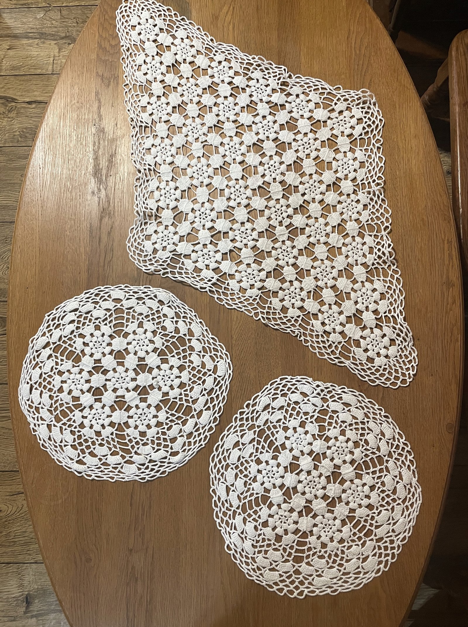 Serwetka vintage 3 sztuki, 2 szt. – średnica 32 cm. 1 szt. 83х49 cm