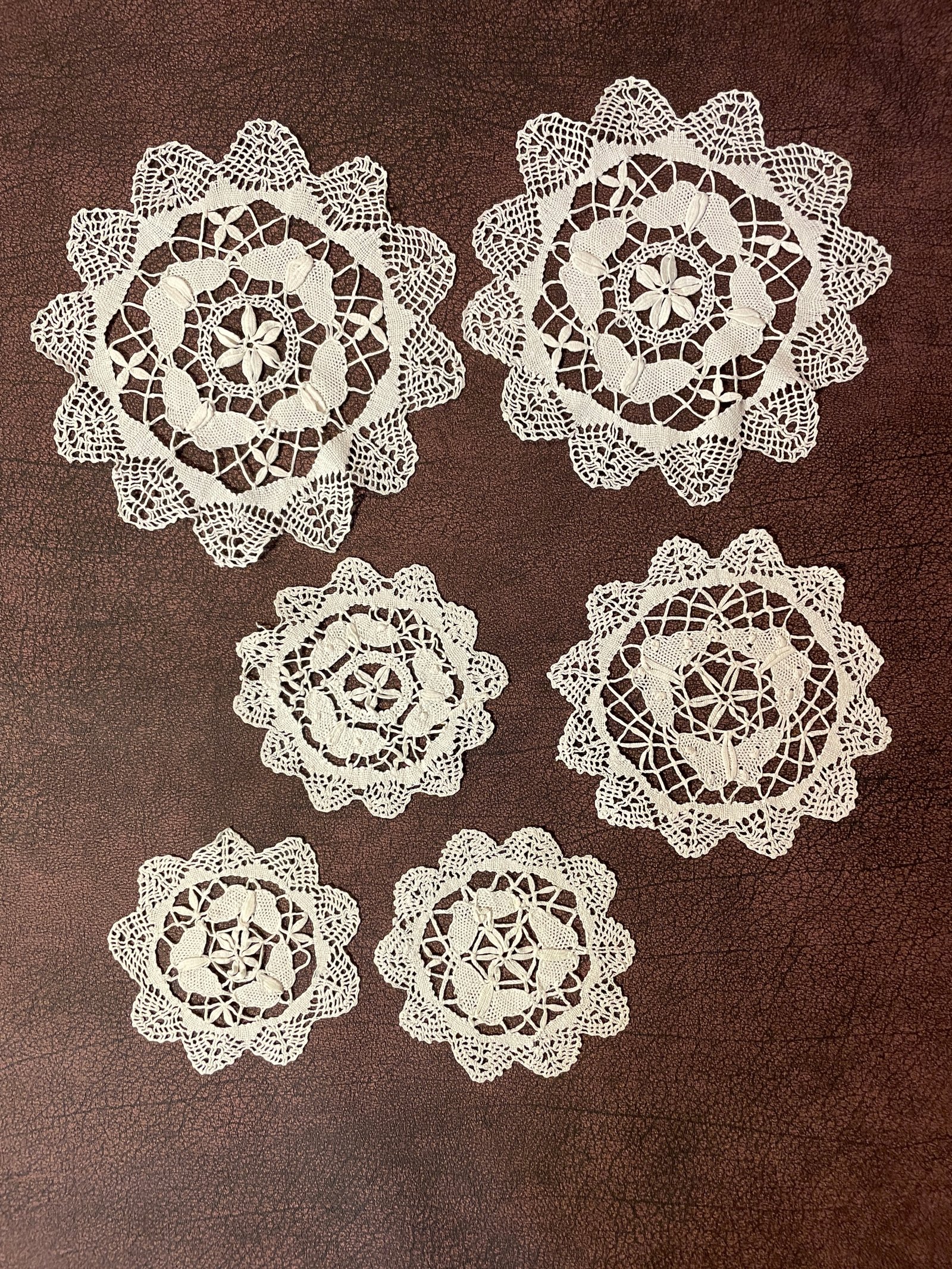 Serwetka vintage 6 sztuki, średnica 21/17/12,5 cm.