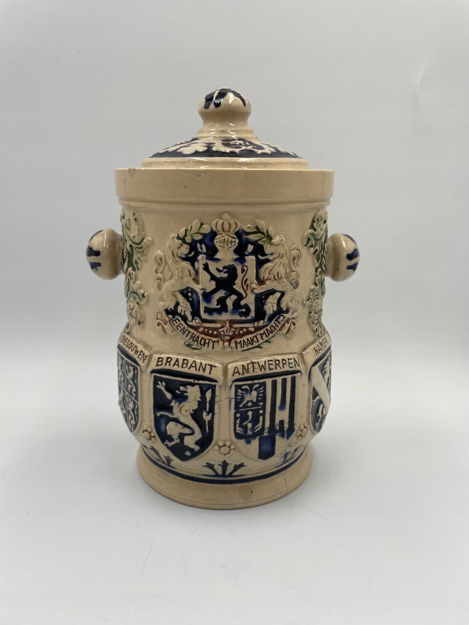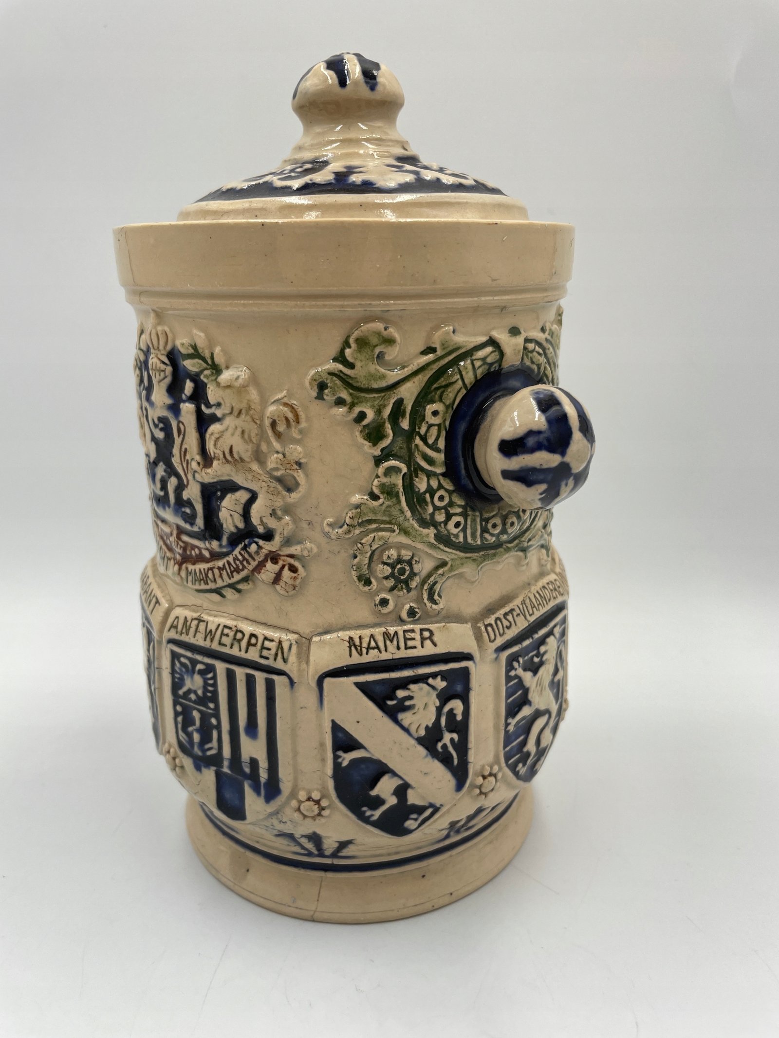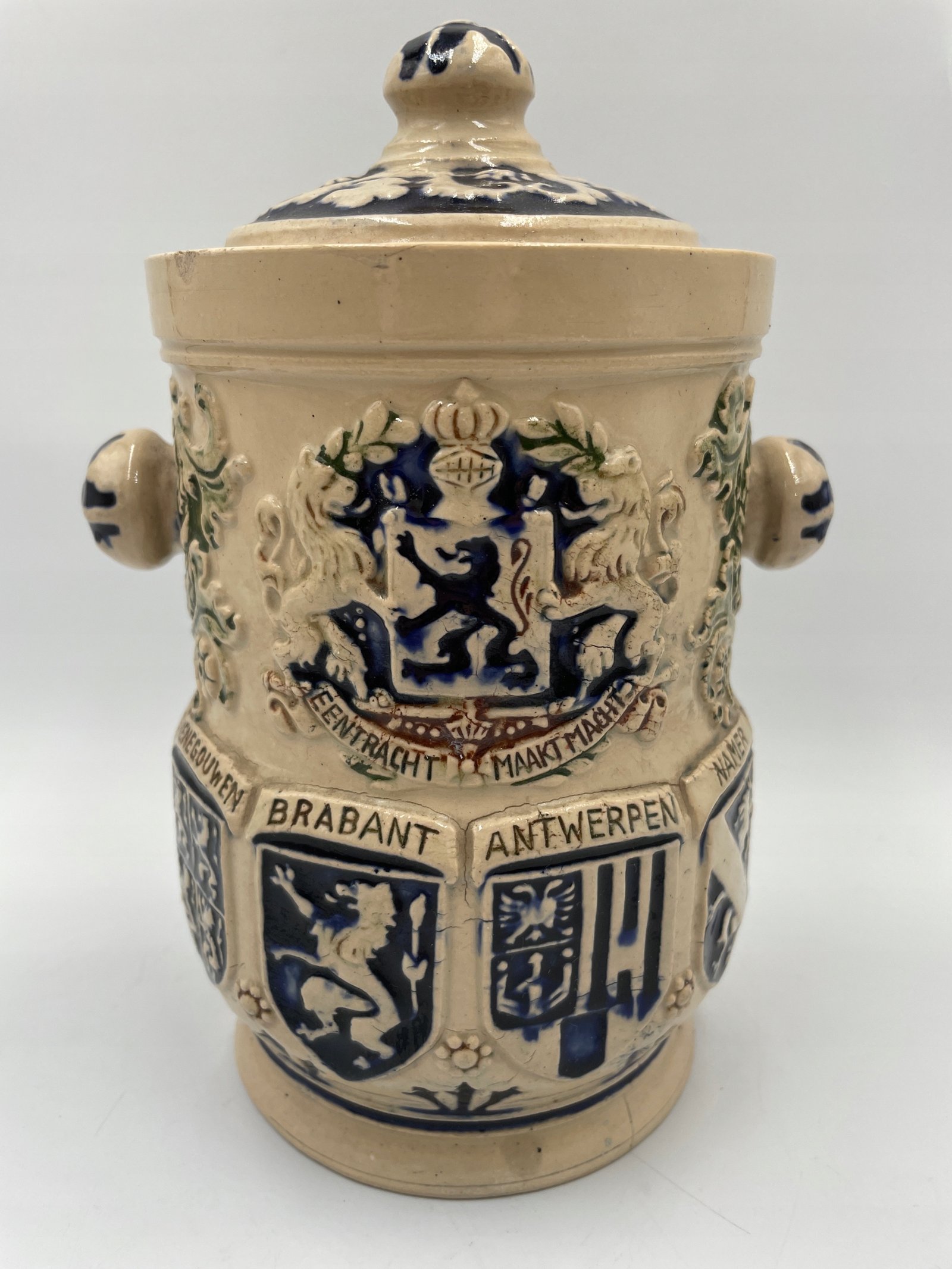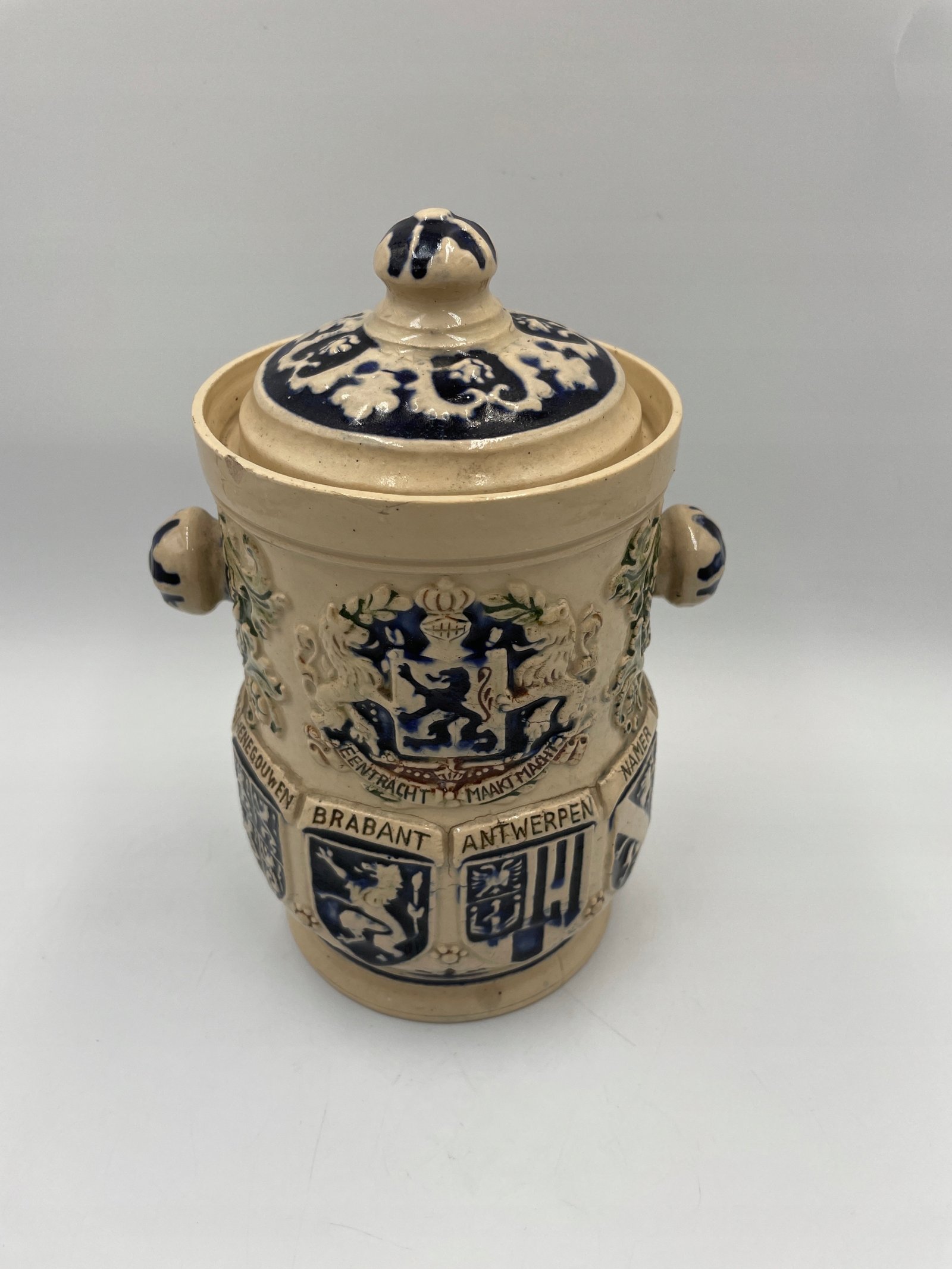 Zabytkowa beczka na tytoń z belgijskimi herbami 1900-1920